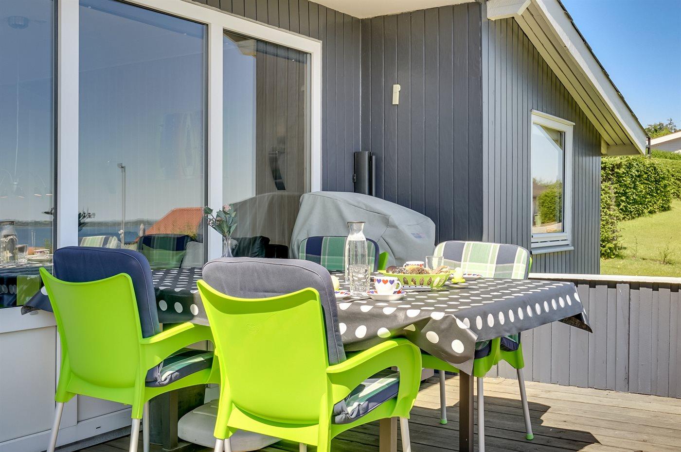 Hyggeligt sommerhus med fantastisk fjordudsigt og lukket terrasse i Aabenraa.