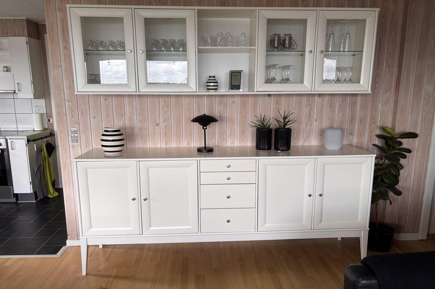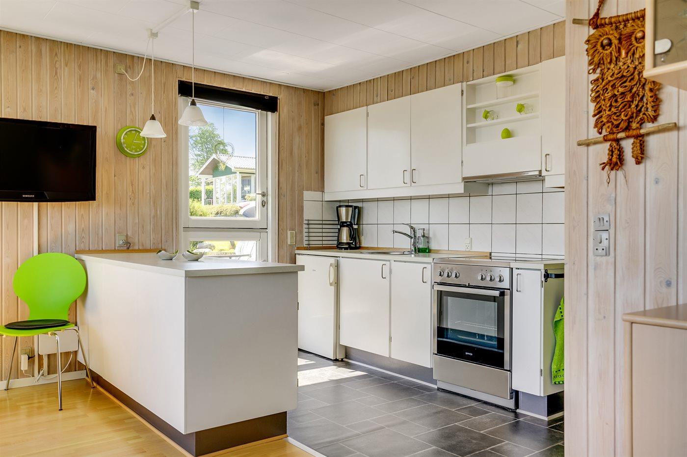 Køkkenet er udstyret med 1 køleskab. Der er 4 keramiske kogeplader, varmluftovn, mikrobølgeovn.