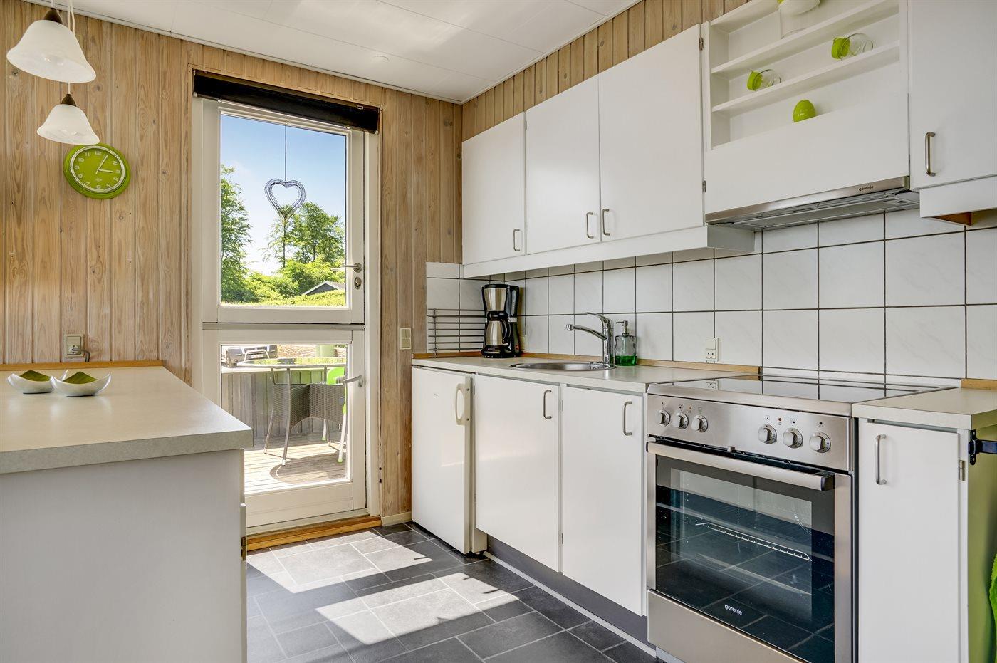 Ferieboligen er beliggende på en 683 m² stor havegrund. Der er 300 m til fjorden. Nærmeste forretning er beliggende i en afstand af 5000 m. Til ferieboligen hører 45 m² lukket terrasseareal. med køleskab med frostboks Grill til rådighed. Parkering ved ferieboligen.