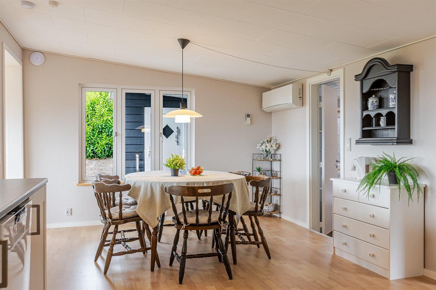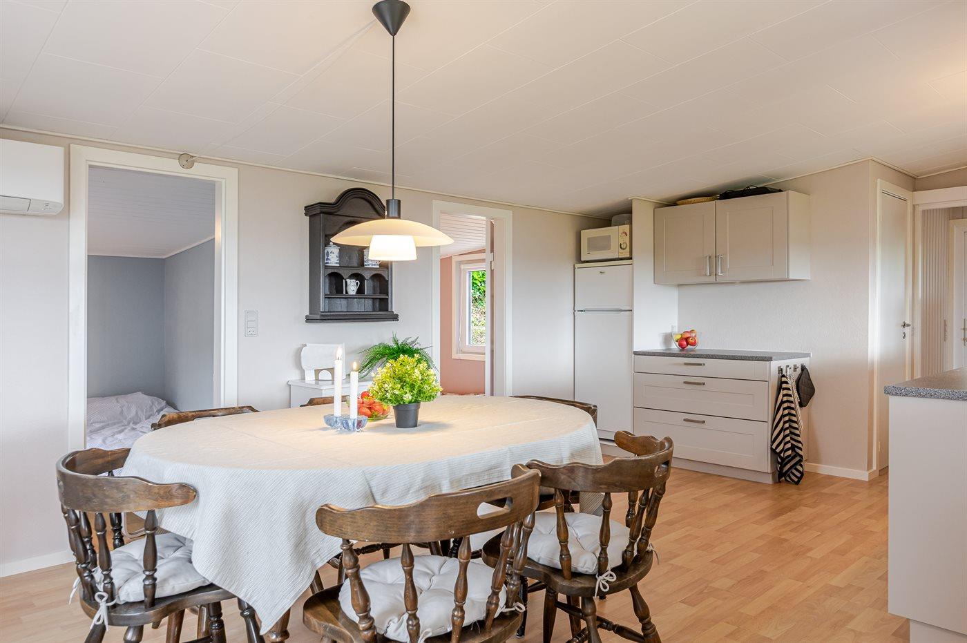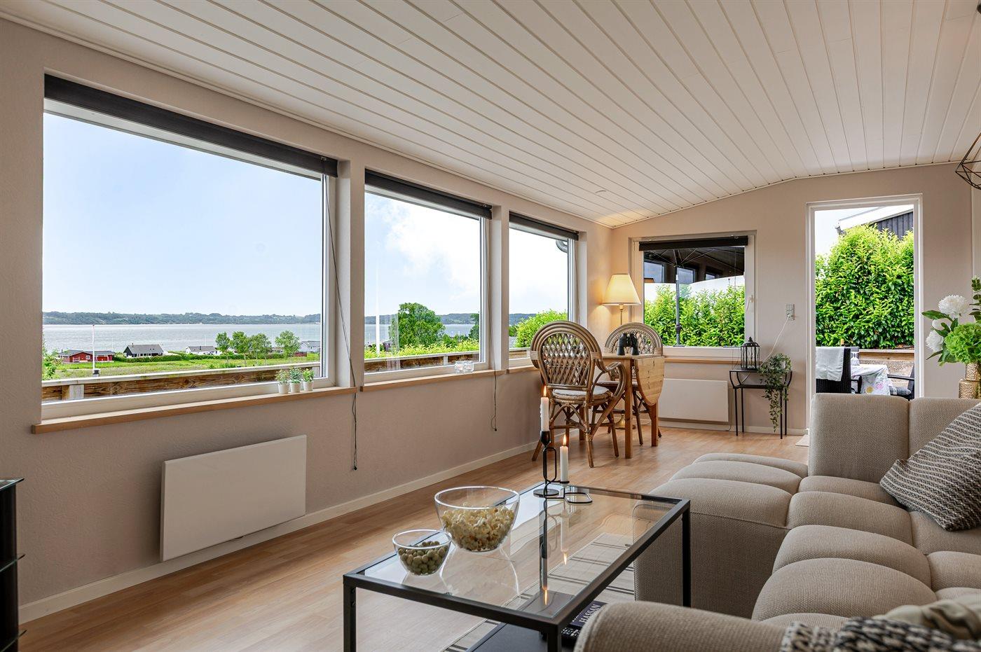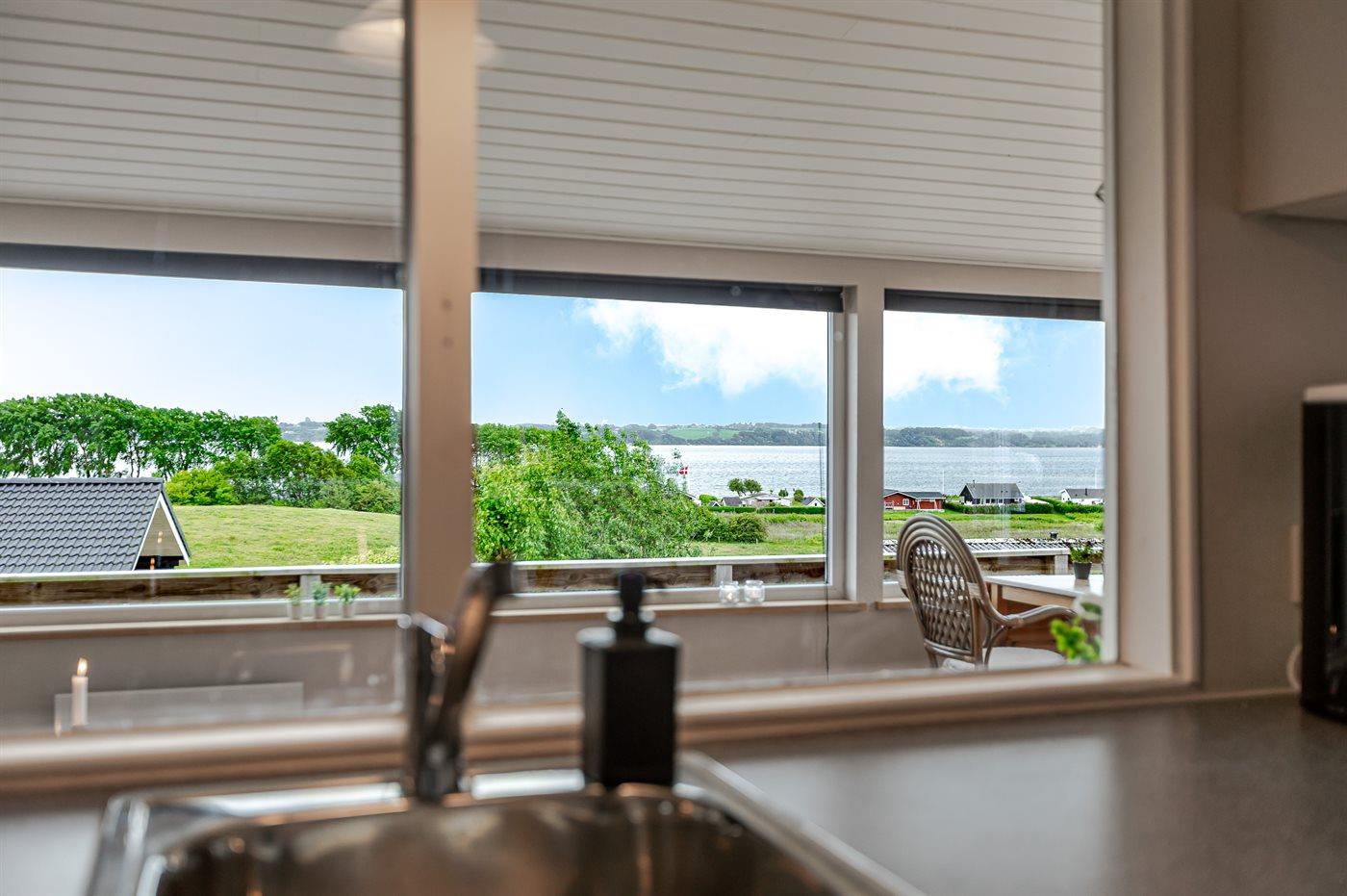 Huset byder på tre soveværelser, et stort og lyst køkken-alrum og en fantastisk udsigt over vandet. Herfra kan I følge med i livet på fjorden – se kitesurfere, sejlbåde og nyde udsigten, som konstant forandrer sig. Den åbne planløsning gør det nemt at være sammen, uanset om I laver mad, hygger jer med spil eller bare slapper af.