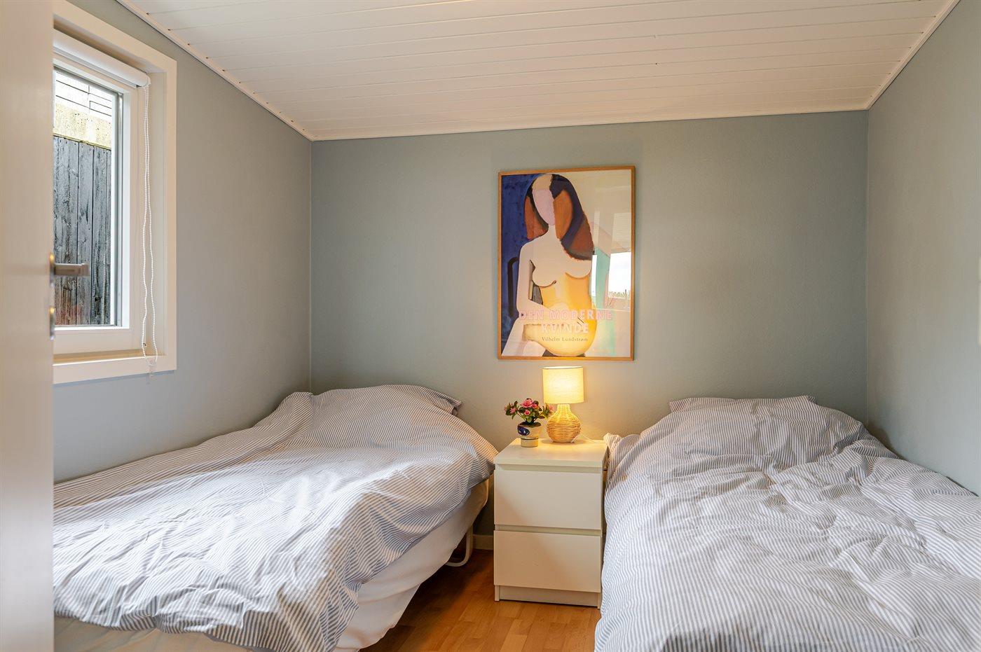 -3 soveværelser: 1 med dobbeltseng, 2 med enkeltsenge (i alt 6 sengepladser + 1 barneseng)