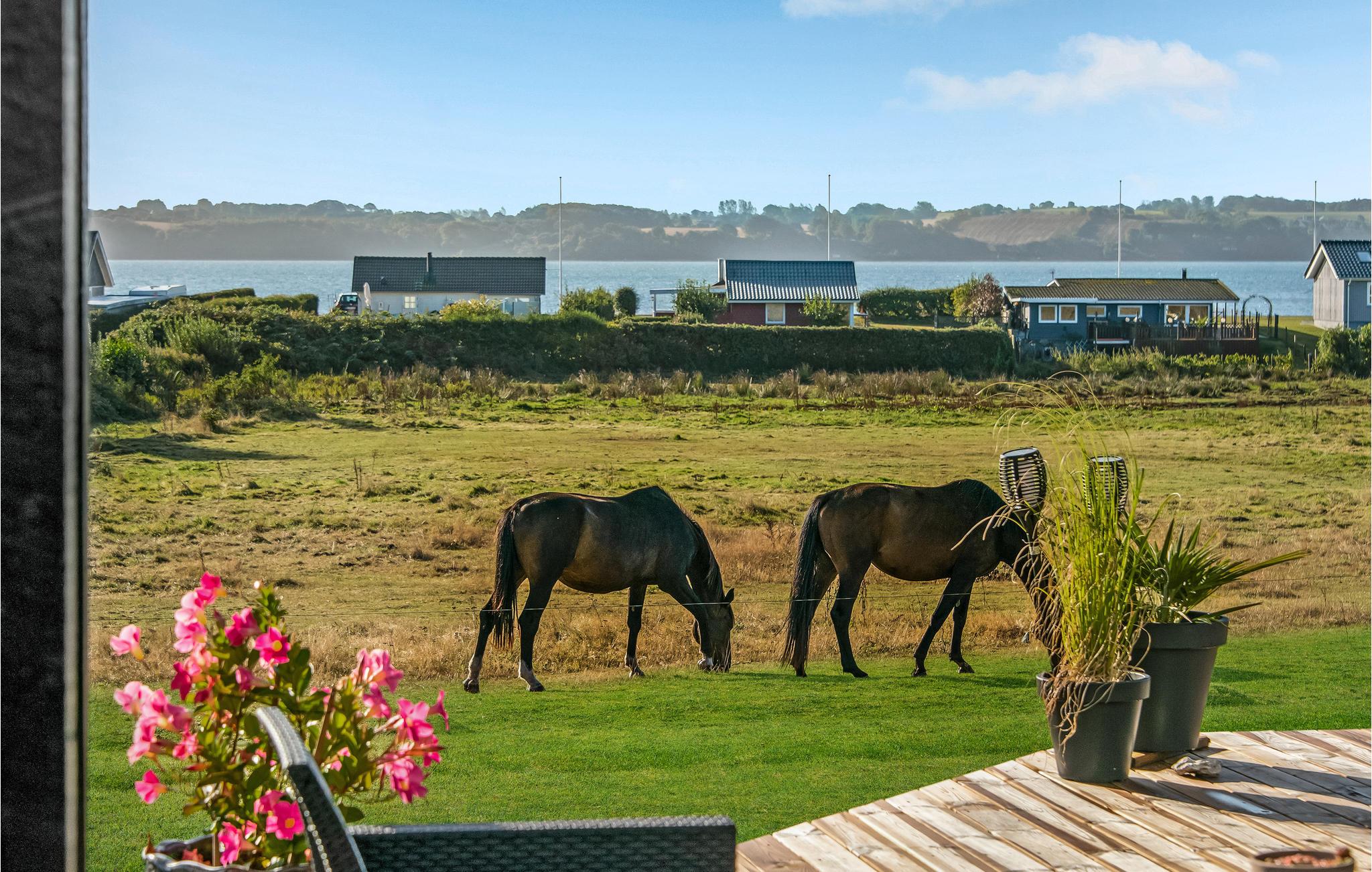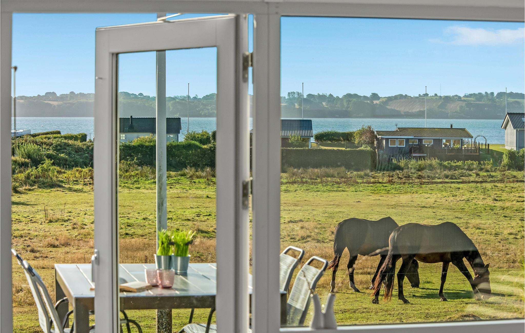 I bor kun tre minutters gang fra den smukke badestrand med blåt flag. Her kan I hoppe i fjorden eller sidde på revet og fiske. På marken foran huset bidrager de græssende heste til den idylliske feriestemning. I kan bestille friske rundstykker i kiosken på stranden.