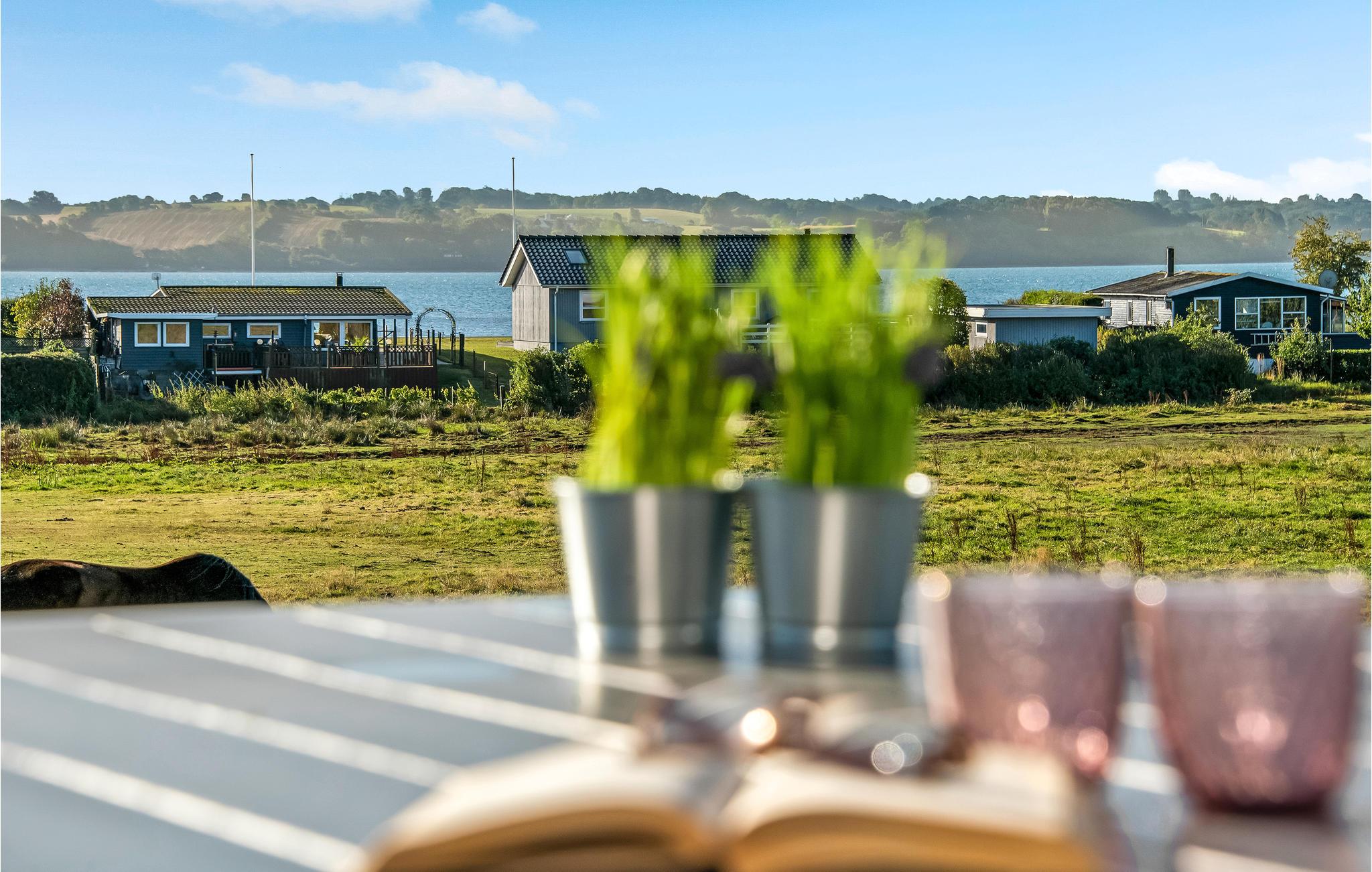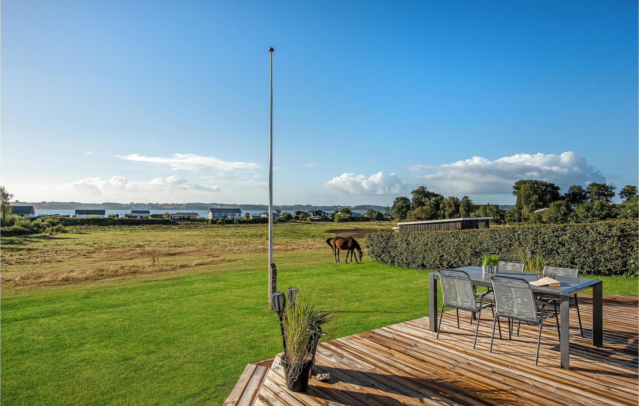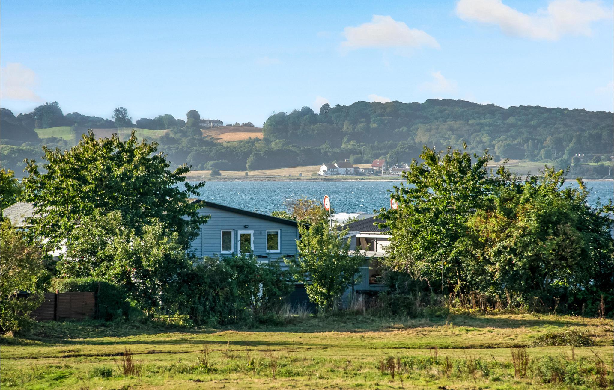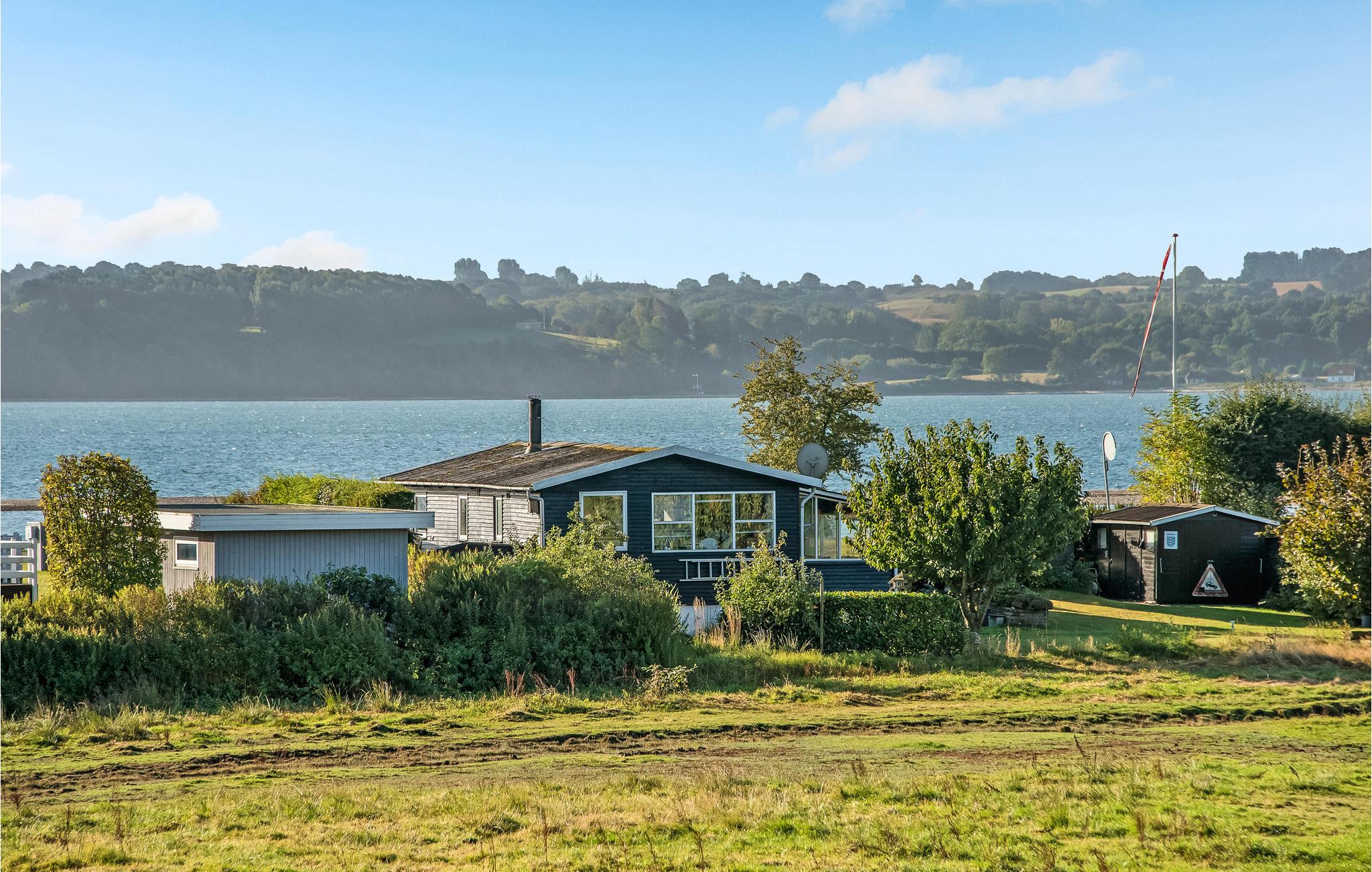 Hyggeligt sommerhus i Skarrev uforstyrret på en eng og med en smuk udsigt over Aabenraa Fjord.