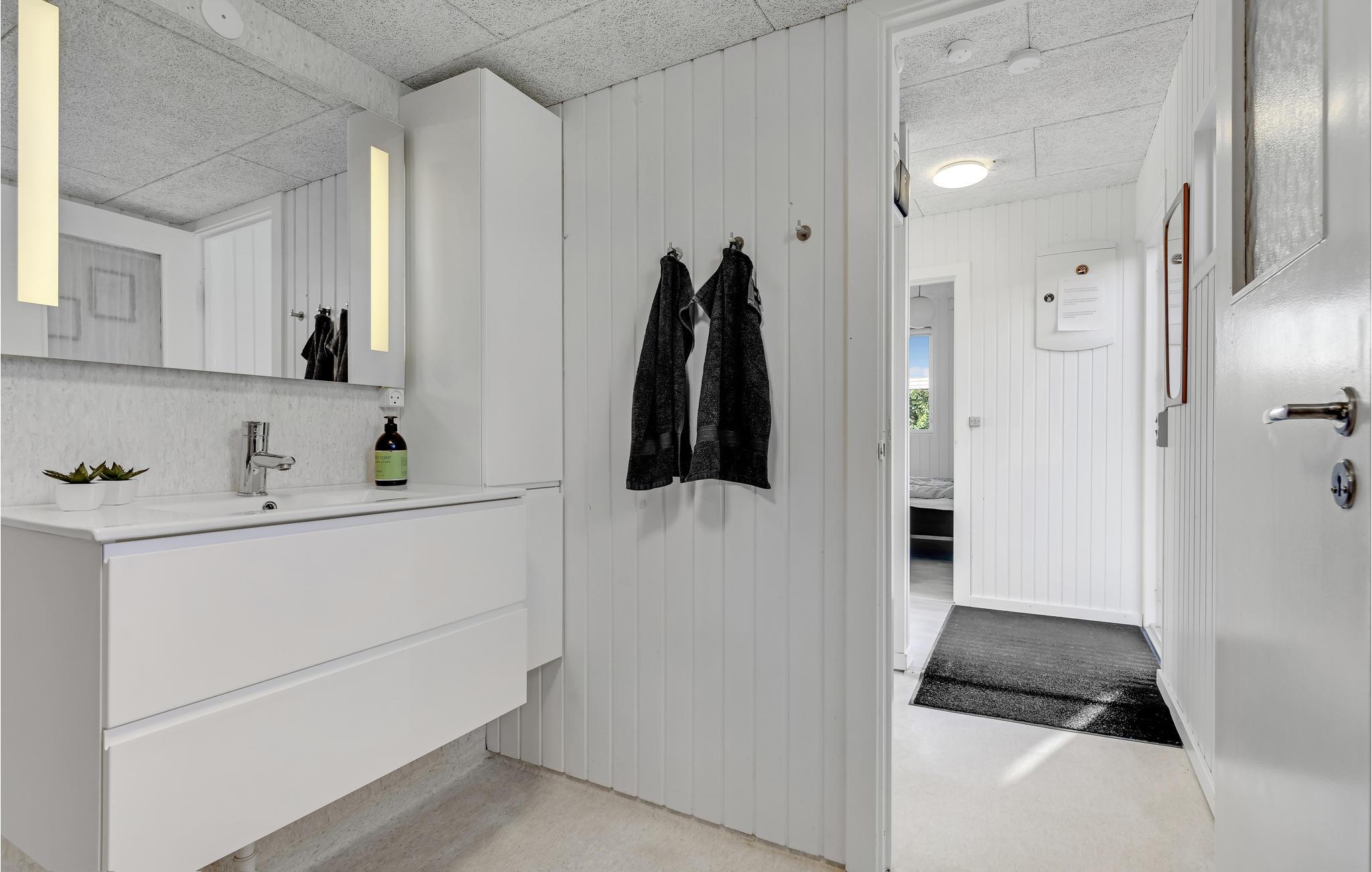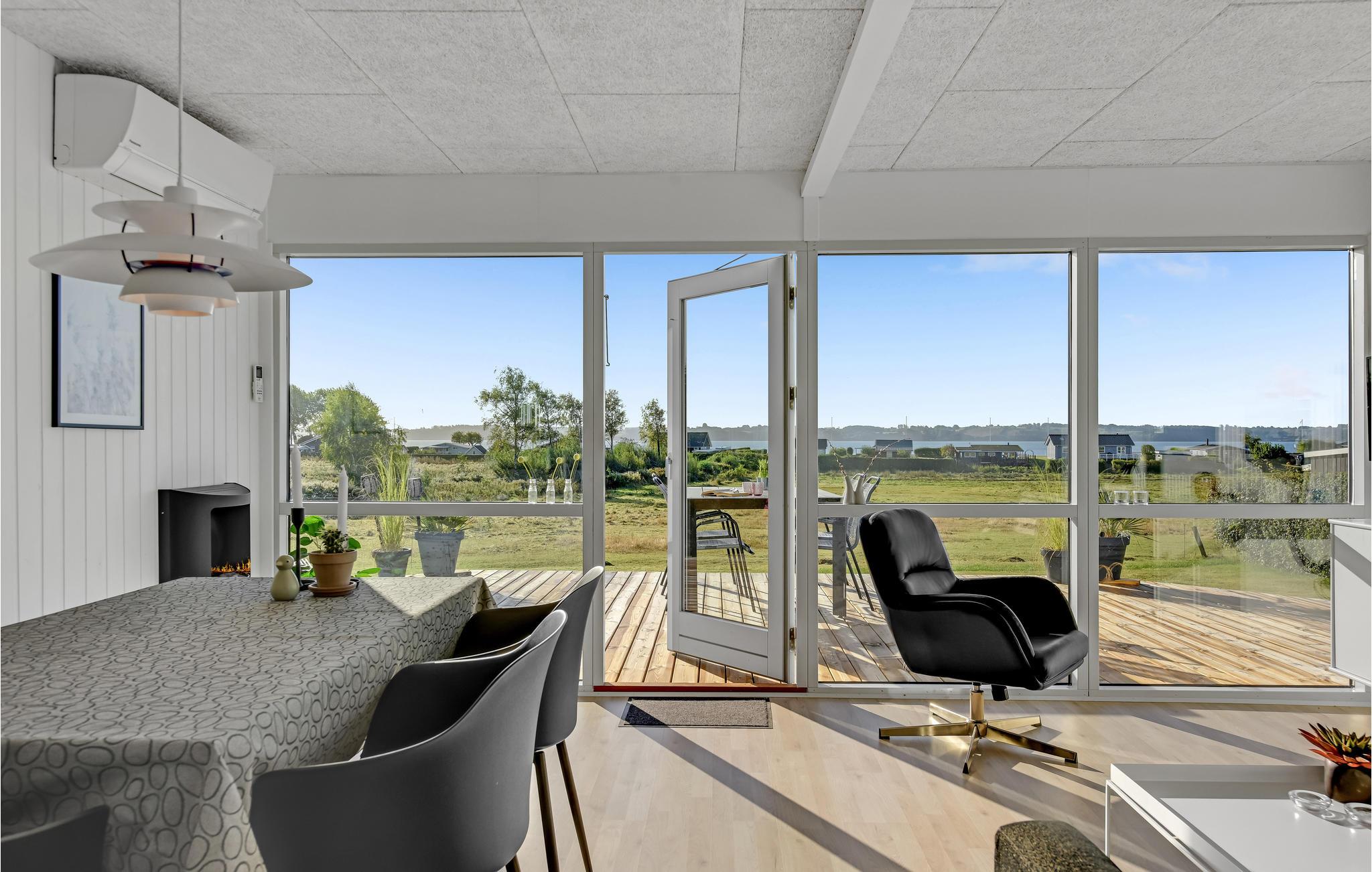 Feriehuset blev renoveret i 2021 og udgør de ideelle rammer for en afslappende ferie. Huset har en rummelig stue, hvor lyset strømmer gennem de sydvendte vinduer i gavlen, og hvorfra man har en vidunderlig udsigt over landskabet og fjorden. Køkkenet er åbent forbundet med stuen, og derfra har I også en smuk udsigt. Der er to smukke soveværelser og et hyggeligt anneks med to senge. Der er gode senge i alle soveværelser. Her er også et rummeligt og moderne badeværelse.