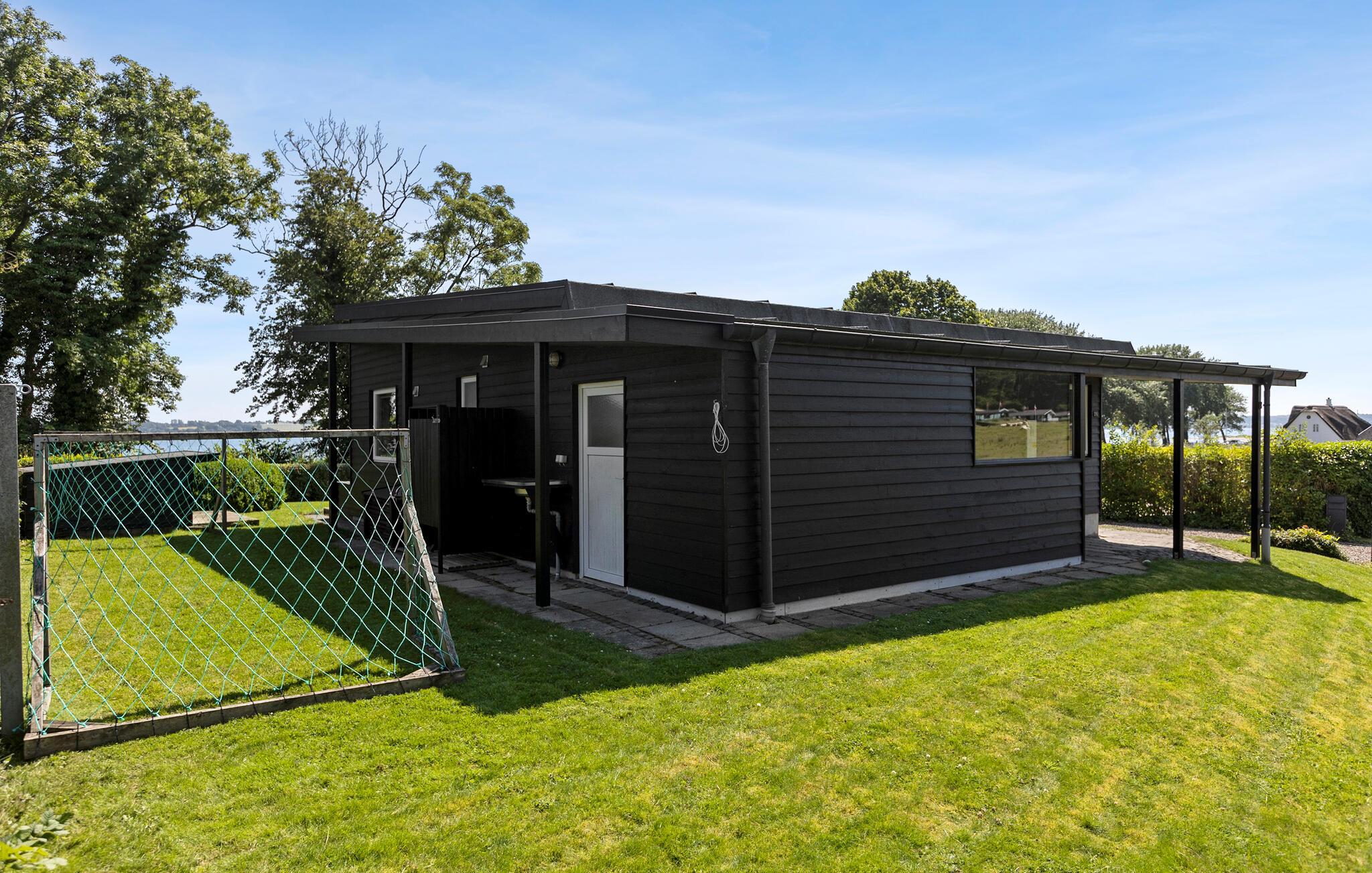 Hyggeligt feriehus tæt på Skarrev Strand med moderne faciliteter og skøn have til afslapning og leg.