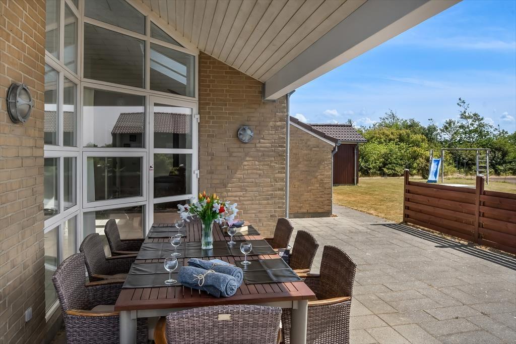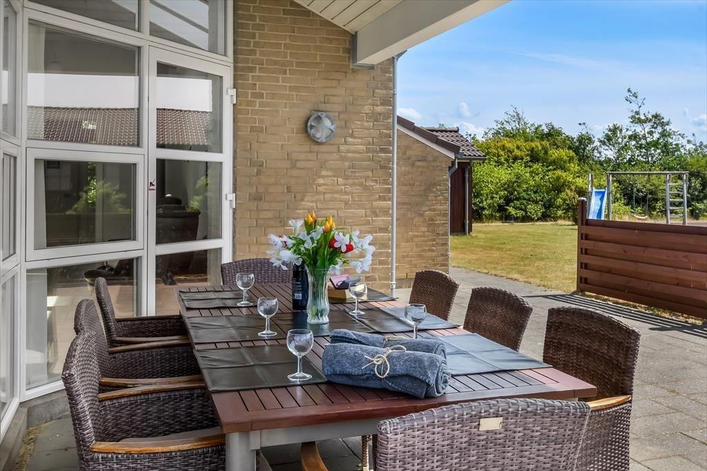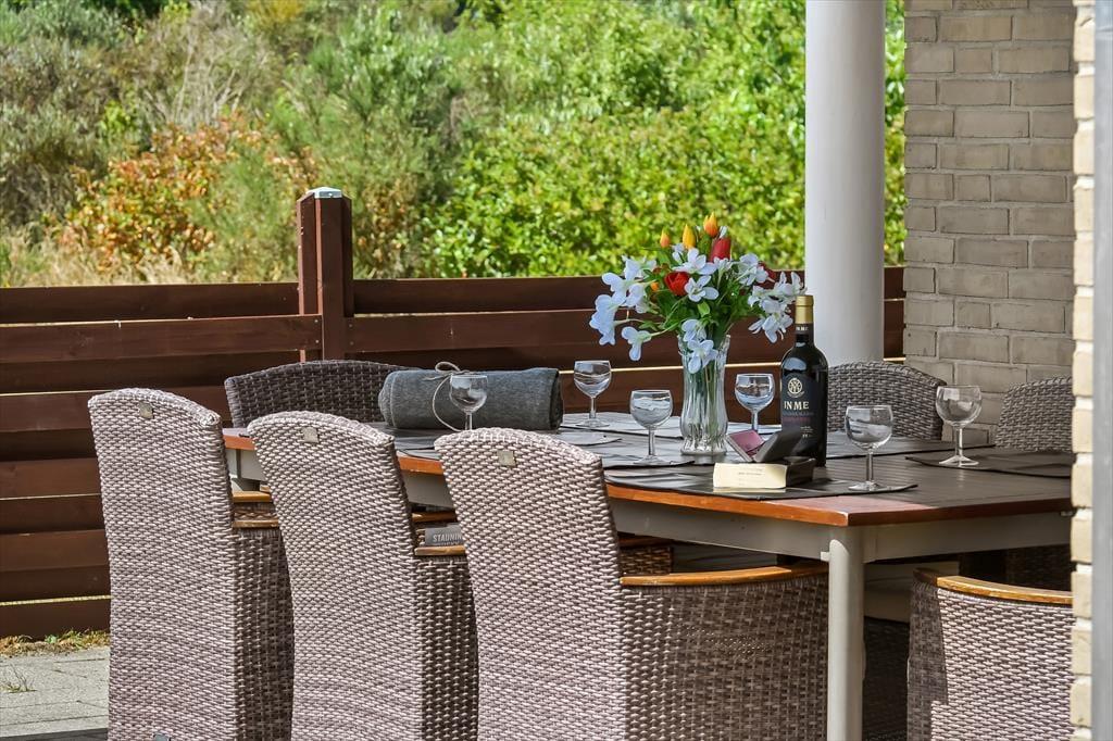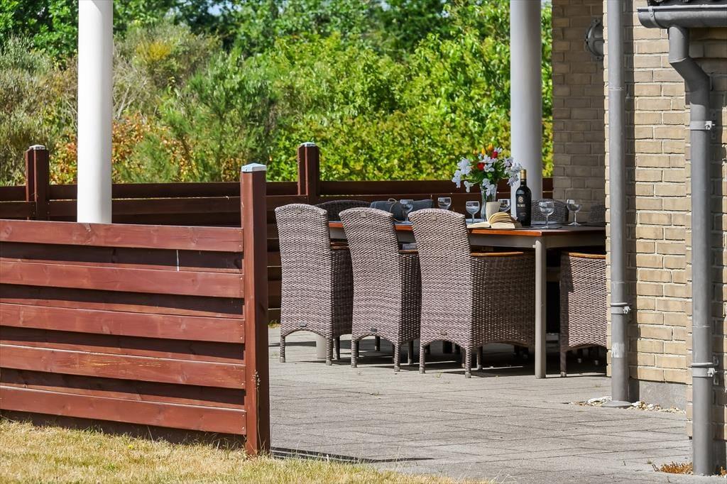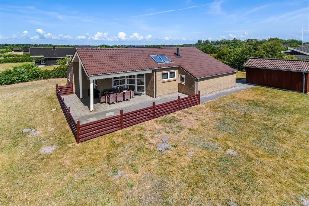 I får de bedste betingelser for at nyde livet under åben himmel på den 1416 m2 store grund. Her er der ro og fred, masser af sol og masser af frisk luft – alt det, man drømmer om på ferieturen. Familiens yngste vil med sikkerhed begejstres over den store plæne, der egner sig perfekt til leg og boldspil – og som ekstra bonus medfølger der i haven også et legestativ med gynge og rutsjebane. Når dagen går på hæld, kan I tænde op i grillen og dække op til en hyggelig middag på terrassen – det er sommerhusliv, når det er bedst. Terrassen er tilmed overdækket, så her kan I nyde aftenstunden, selvom der falder lidt dug fra oven.