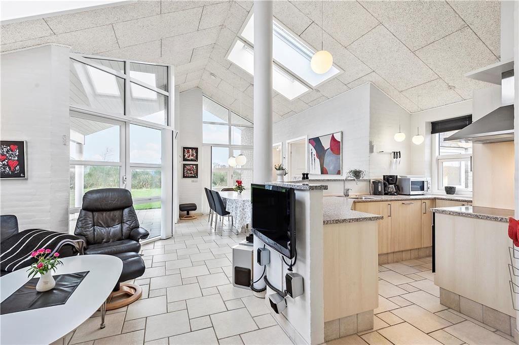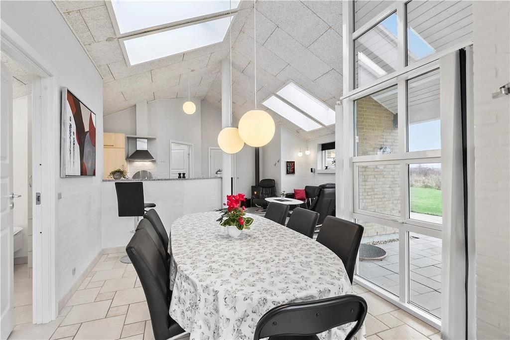 Velkommen til dette store og lyse feriehus, der ligger godt placeret på en stor åben grund en gåtur fra Skaven Strand. Her får I en dejlig komfortabel ramme om ferieturens hyggelige samvær – tæt på natur, vand og børnevenlige aktiviteter. Som lejere af dette sommerhus har I derudover fri adgang til seks lokale badelande/idrætscentre, hvor I kan hygge jer med at svømme, bowle og meget mere (http://www.svoem-leg.dk/Om-Svøm-og-Leg.aspx).