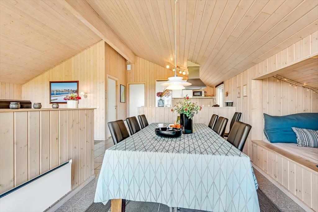 Ferien kommer til at udspille sig i hyggelige og komfortable omgivelser, når den foregår i Skaven Strand og mere præcist i dette skønne kvalitetssommerhus – der blandt andet kan prale af at have spa og sauna på det ene badeværelse og en glimrende planløsning til seks personer.