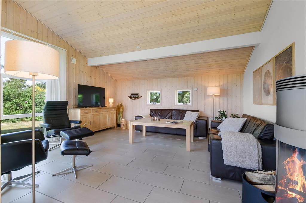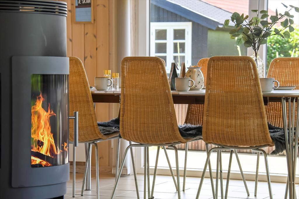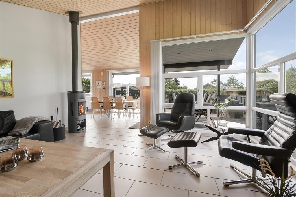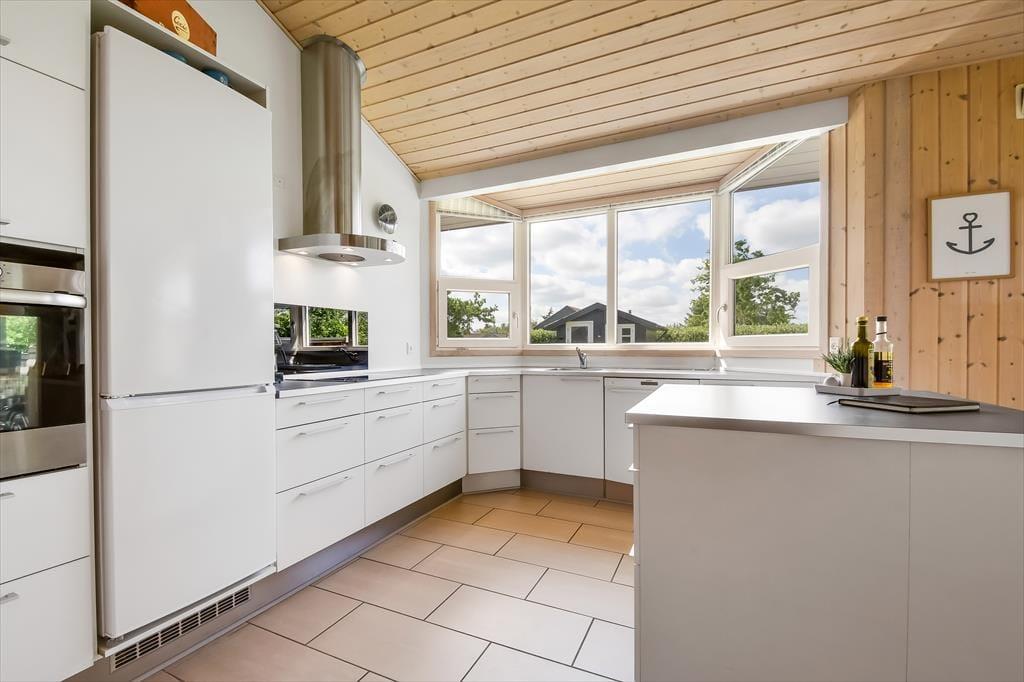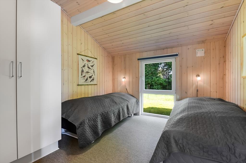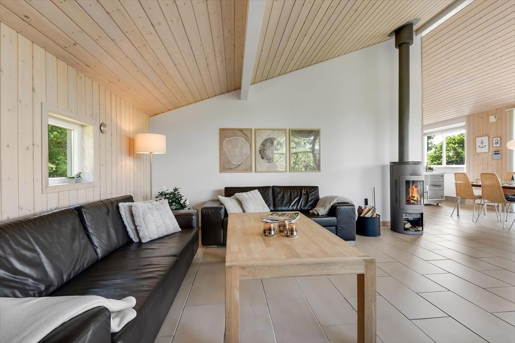 Rammen om ferielivet er særdeles indbydende inden døre, for huset har lys og pæn indretning med moderne møblement i alle rum. Brændeovnen er med til at skrue op for sommerhuscharmen i opholdsafdelingen, hvor stue og køkken ligger i åben forbindelse – og hvis det ikke er vejr til at sidde nær de lunende flammer, kan du i stedet åbne stuens terrassedør og hilse sommeren velkommen, mens du laver iskaffe eller andre forfriskninger til at tage med udenfor. Et rummeligt badeværelse med bruser ligger på praktisk vis lige ved entréen, og endelig byder planløsningen på tre gode soveværelser med i alt seks sengepladser.