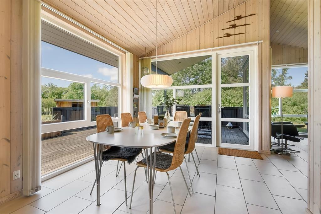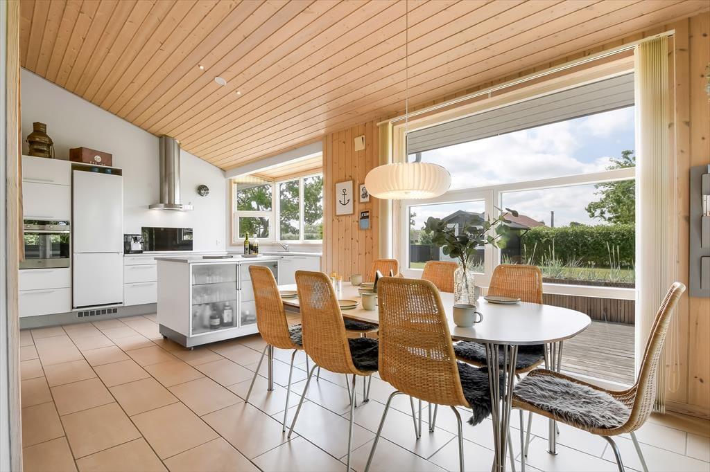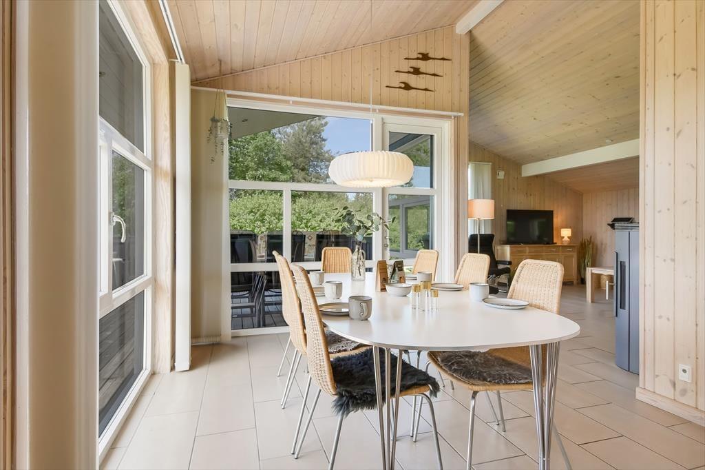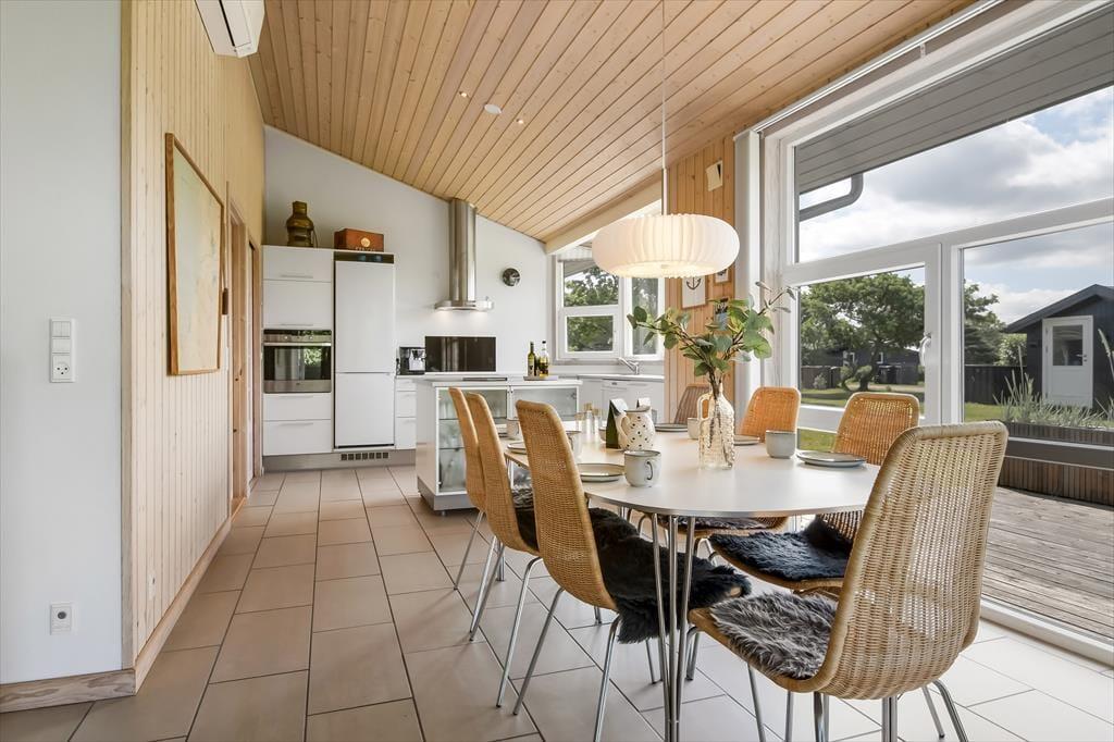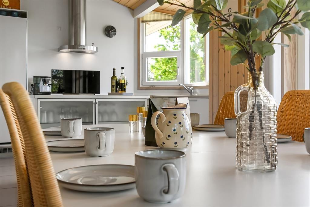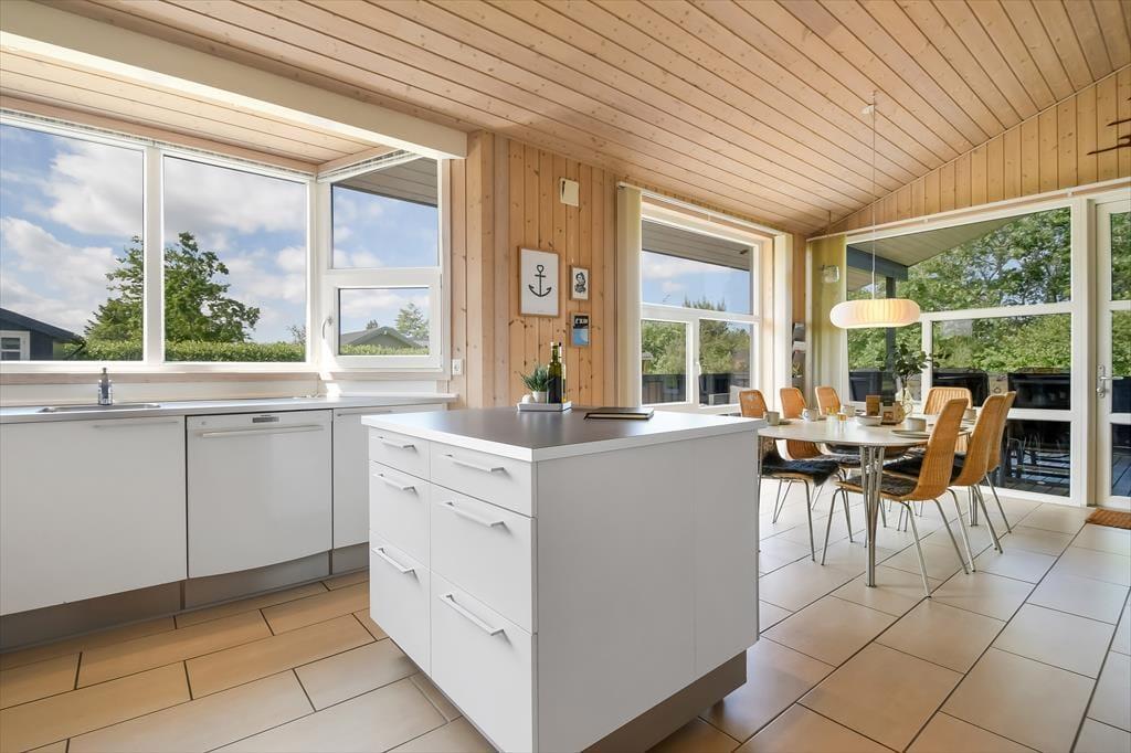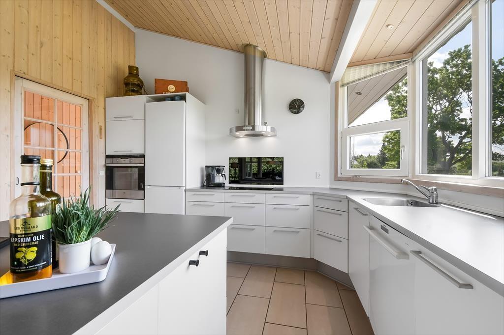 Rammen om ferielivet er særdeles indbydende inden døre, for huset har lys og pæn indretning med moderne møblement i alle rum. Brændeovnen er med til at skrue op for sommerhuscharmen i opholdsafdelingen, hvor stue og køkken ligger i åben forbindelse – og hvis det ikke er vejr til at sidde nær de lunende flammer, kan du i stedet åbne stuens terrassedør og hilse sommeren velkommen, mens du laver iskaffe eller andre forfriskninger til at tage med udenfor. Et rummeligt badeværelse med bruser ligger på praktisk vis lige ved entréen, og endelig byder planløsningen på tre gode soveværelser med i alt seks sengepladser.