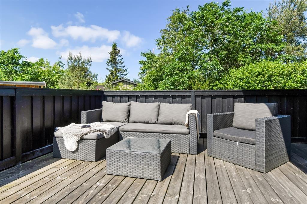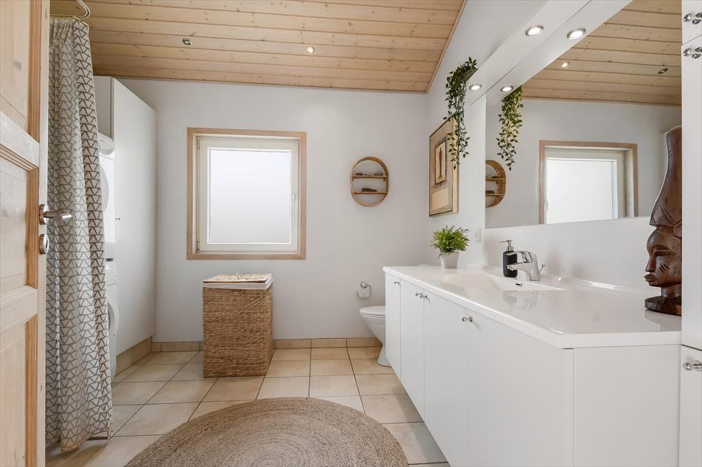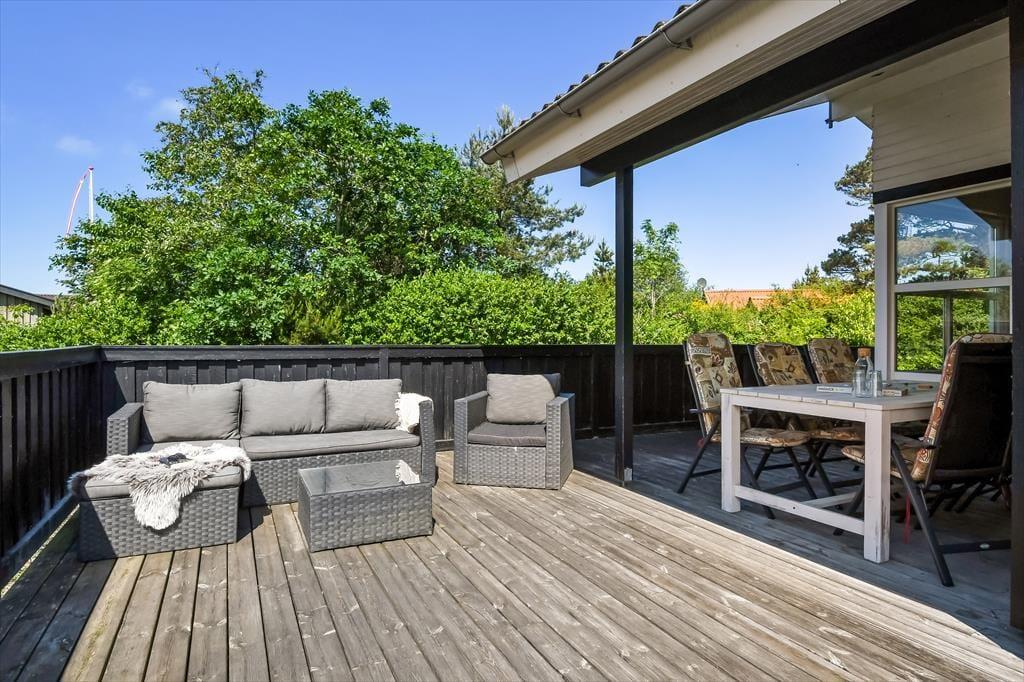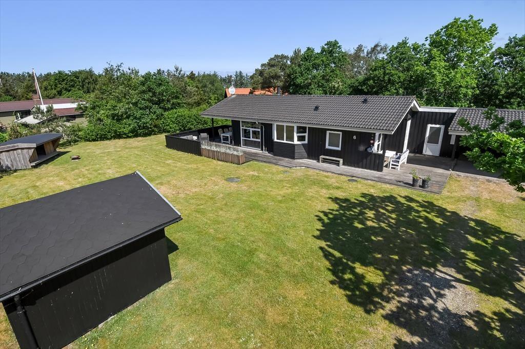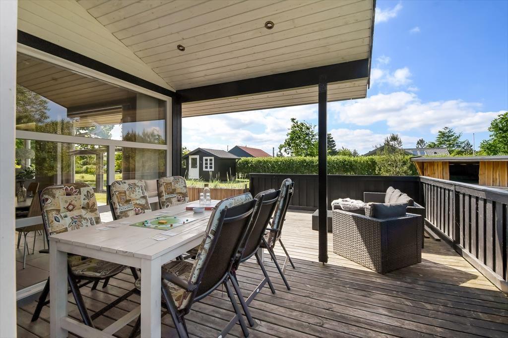 Hvis du foretrækker at opholde dig ude i det fri, er husets store terrasse et skønt sted at nyde solen og det tilbagelænede driverliv. En del af terrassen er afskærmet, og der er også et overdækket areal, så det er muligt at finde læ for vinden såvel som ly for aftenduggen, hvis det skulle blive nødvendigt. Grundens græsplæne indbyder til både leg og boldspil, og hvis du og dine kære slet ikke kan få nok af udelivet, kan I blive ude for at tænde op i bålfadet, når mørket falder på – og så har familiens friluftstyper endda mulighed for at overnatte i shelteret.