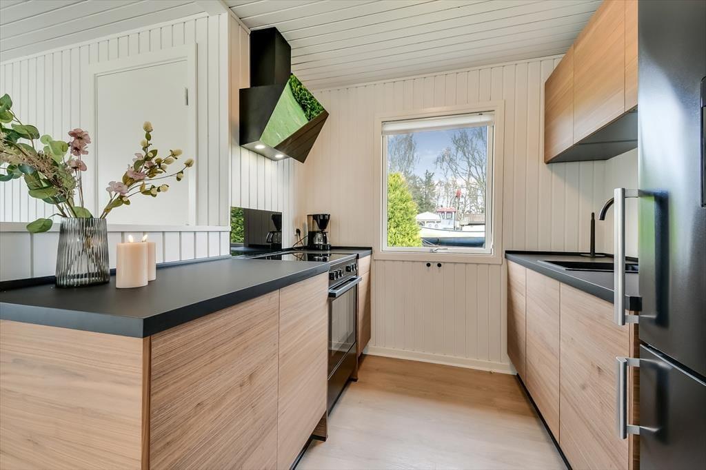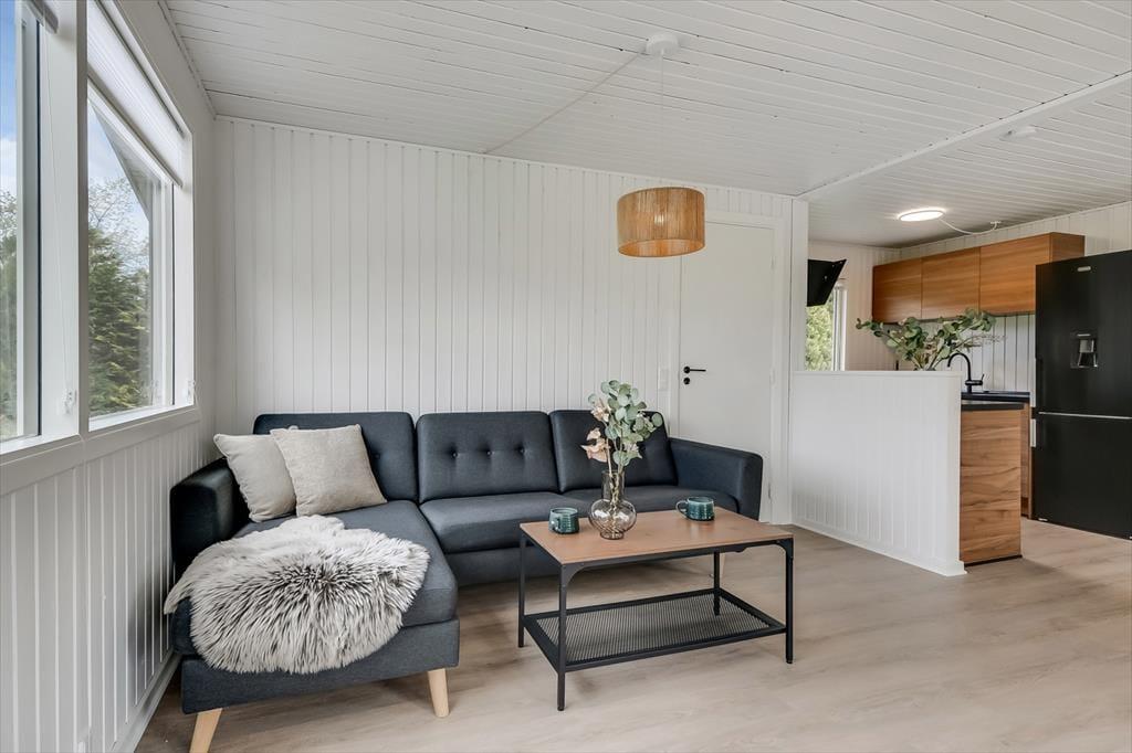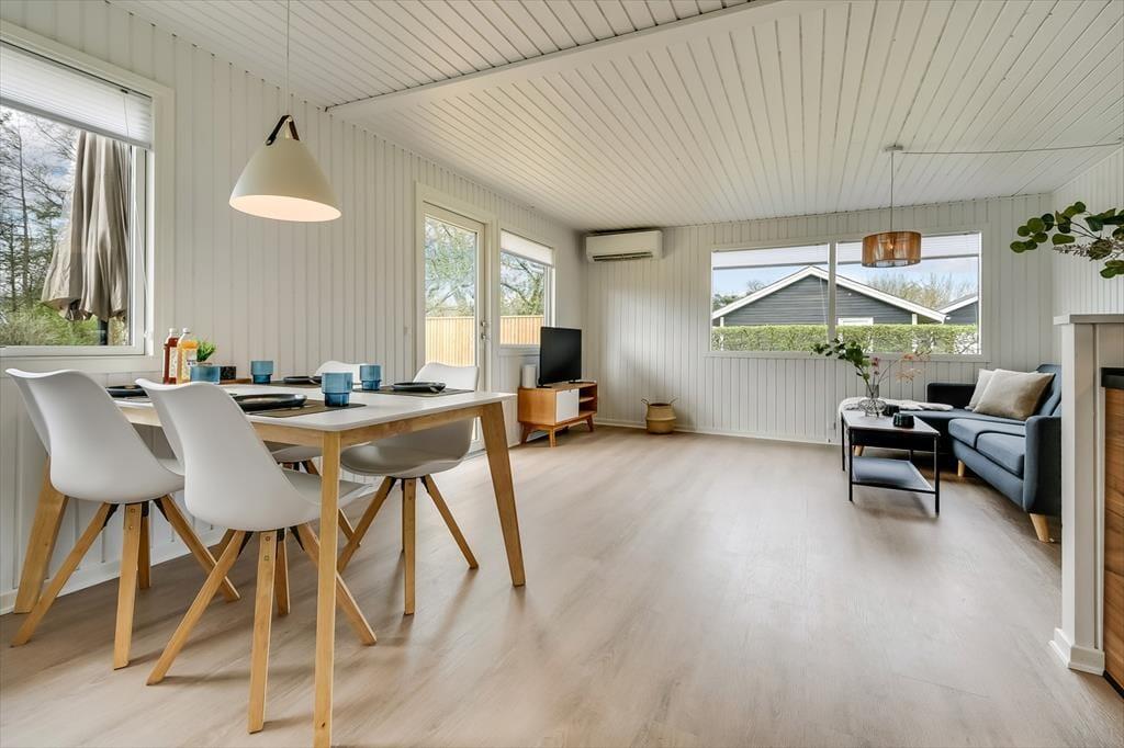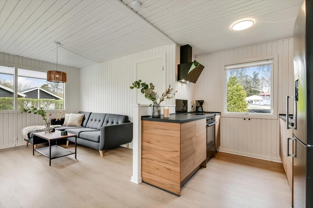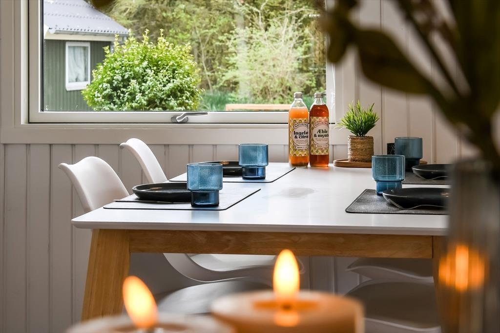 Så snart du træder ind i det nyrenoverede sommerhus, mærker du roen og den varme atmosfære brede sig. De lyse materialer og den hyggelige indretning giver en afslappet og hjemlig følelse – præcis som et sommerhus skal. I det åbne opholdsrum samles alle feriens små øjeblikke: duftene fra køkkenet, latteren fra brætspillene og stilheden, når regnen trommer let mod ruden, og du lader en god bog opsluge dig i sofaen. Her er plads til samvær og afslapning i et tempo, hvor ferieroen får lov at fylde det hele. Og når mørket falder på, er det oplagt at tænde levende lys og nyde de stille aftentimer med dem, du holder af.