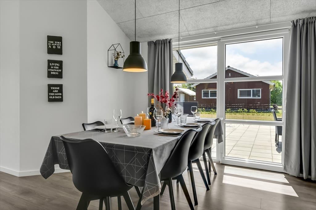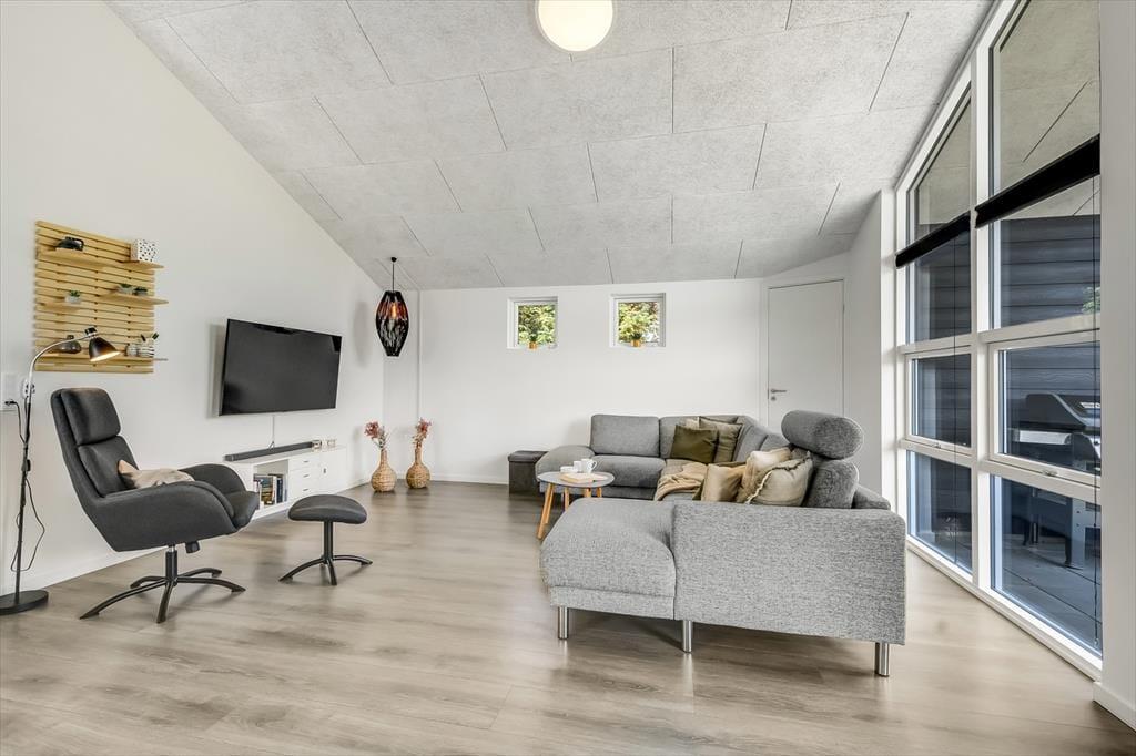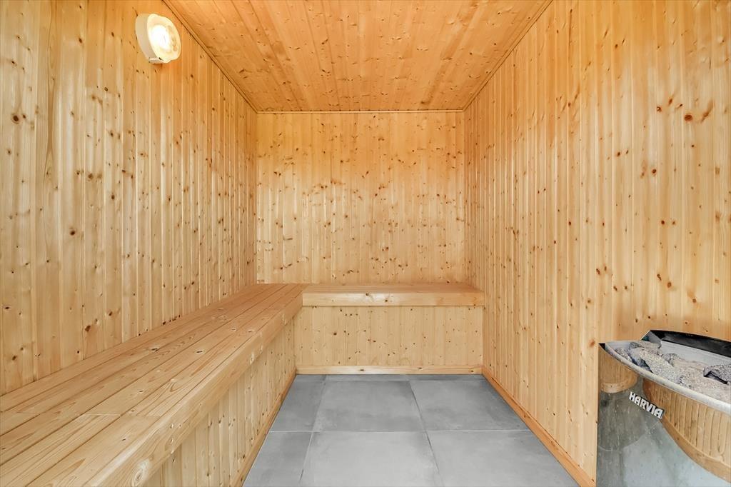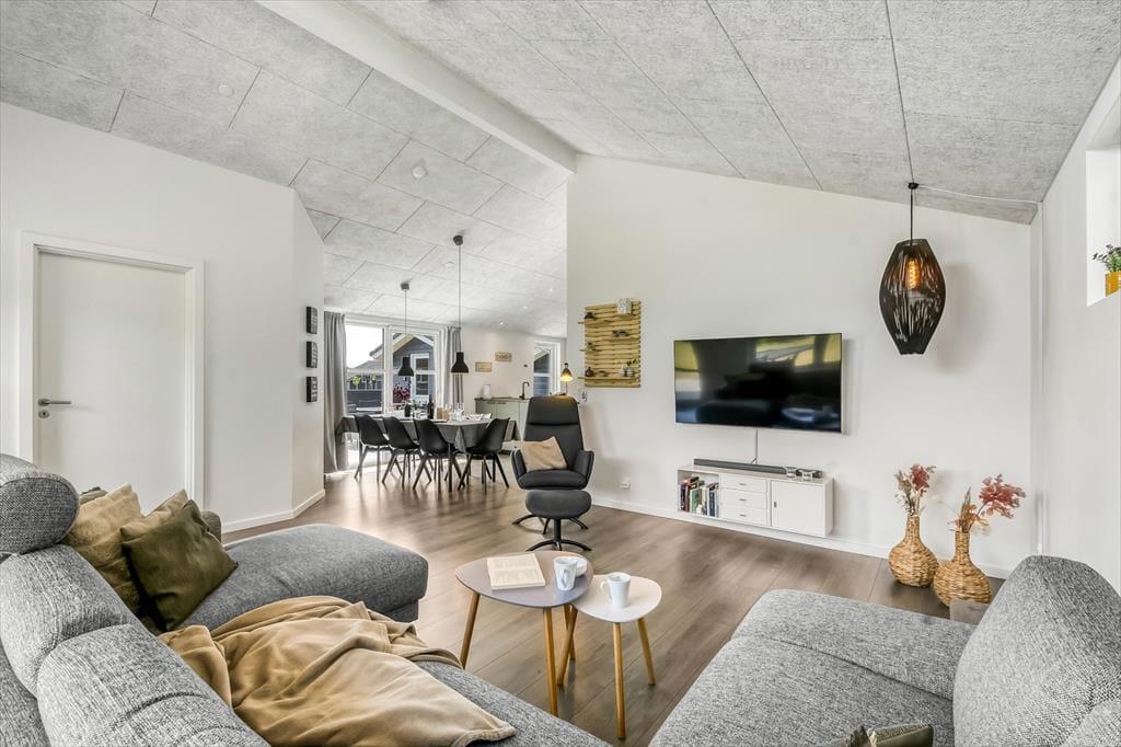 Inde i sommerhuset bliver I mødt af et lyst og åbent miljø, hvor indretningen kombinerer moderne komfort med en afslappet sommerhusstemning. De store vinduespartier inviterer lyset og naturen indenfor, og der er god plads til at samle hele familien omkring spisebordet eller i sofaen til en filmaften, et brætspil eller bare ren afslapning. Stemningen er varm og indbydende, og selv når vinden suser udenfor, er der lunt og rart indendøre. Når dagens eventyr er veloverståede, kan I forkæle jer selv med en tur i et af husets spabade eller lade dagens sidste spændinger smelte væk i saunaen. Her er der tænkt på alt det, der gør ferien ekstra behagelig.