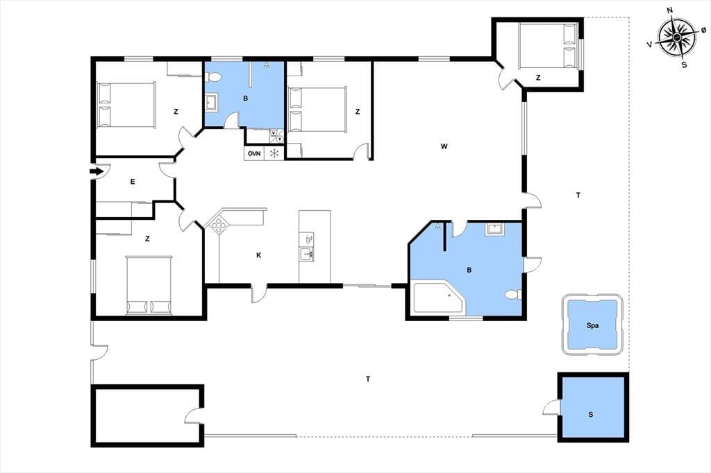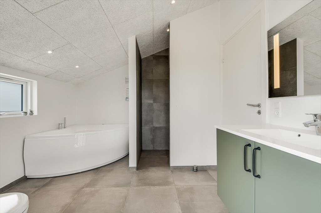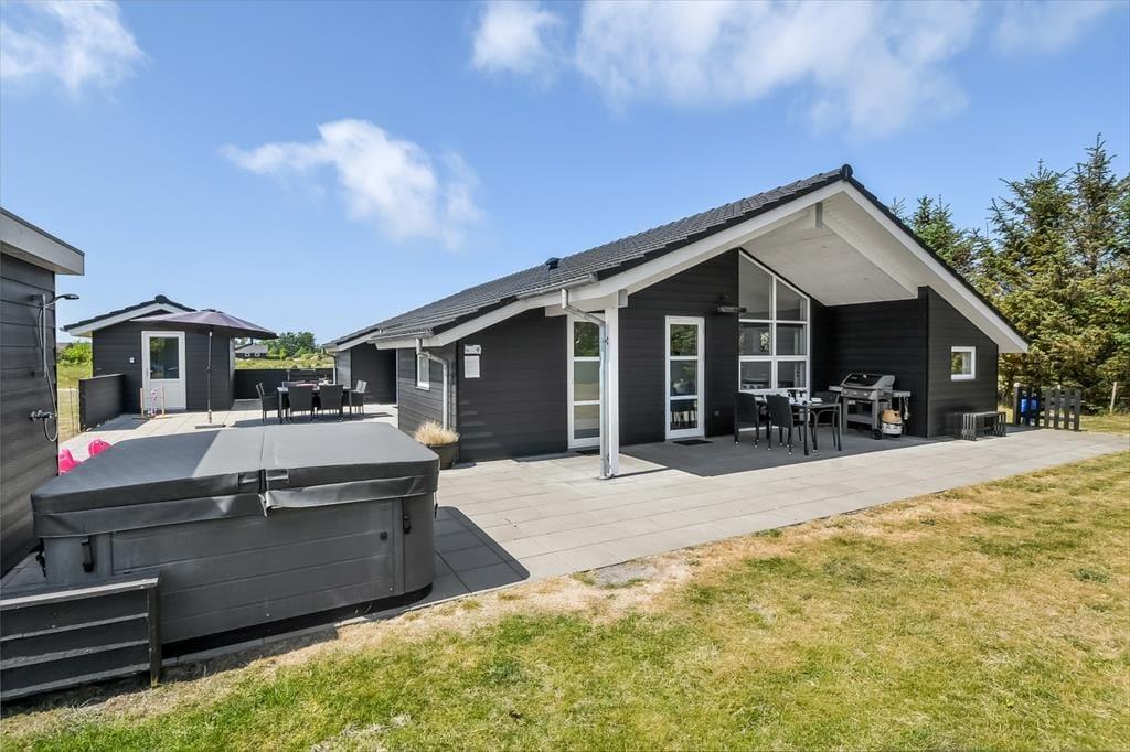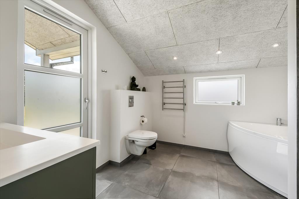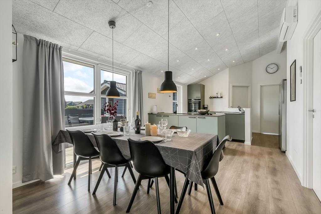 Inde i sommerhuset bliver I mødt af et lyst og åbent miljø, hvor indretningen kombinerer moderne komfort med en afslappet sommerhusstemning. De store vinduespartier inviterer lyset og naturen indenfor, og der er god plads til at samle hele familien omkring spisebordet eller i sofaen til en filmaften, et brætspil eller bare ren afslapning. Stemningen er varm og indbydende, og selv når vinden suser udenfor, er der lunt og rart indendøre. Når dagens eventyr er veloverståede, kan I forkæle jer selv med en tur i et af husets spabade eller lade dagens sidste spændinger smelte væk i saunaen. Her er der tænkt på alt det, der gør ferien ekstra behagelig.
