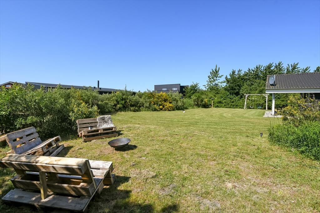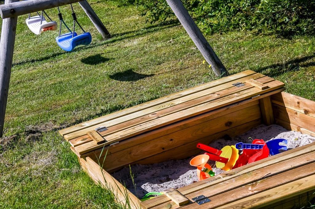 Udenfor venter en dejlig have, hvor sommerlivet virkelig kan udfolde sig. Mens børnene leger i sandkassen eller gynger under den blå himmel, kan de voksne finde ro med en kop kaffe i havemøblerne. Haven indbyder også til hyggelige aftener omkring bålstedet, hvor I kan riste skumfiduser, fortælle historier og nyde den særlige stemning, som kun ildens knitren kan skabe. Når solen står højt, er terrassen et oplagt sted at slappe af, og du vil hurtigt opdage, hvor skønt det er at tilbringe dagen i det fri – hvad enten det er med leg, afslapning eller en omgang havespil i familiens selskab.