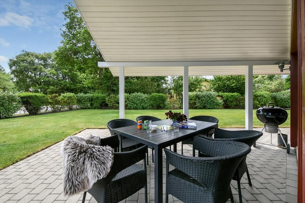 På husets træterrasse er der rig mulighed for at tage ferien i jeres helt eget tempo. Terrassen er delvist overdækket, så I både kan søge skygge på de varmeste sommerdage og forlænge de lune aftener med tæpper og levende lys, når duggen falder. Havemøblerne står klar til morgenkaffen og frokosten i solen, og både børn og hunde vil elske at tumle rundt på græsplænen, mens du nyder udsigten over den rolige have. Her er fred og ro, fuglekvidder og højt til himlen – og så tæt på fjorden, at du næsten kan fornemme den salte brise, når du lukker øjnene og trækker vejret dybt. Alt sammen danner rammen om det gode udendørsliv, som kendetegner feriedagene i Skaven Strand.