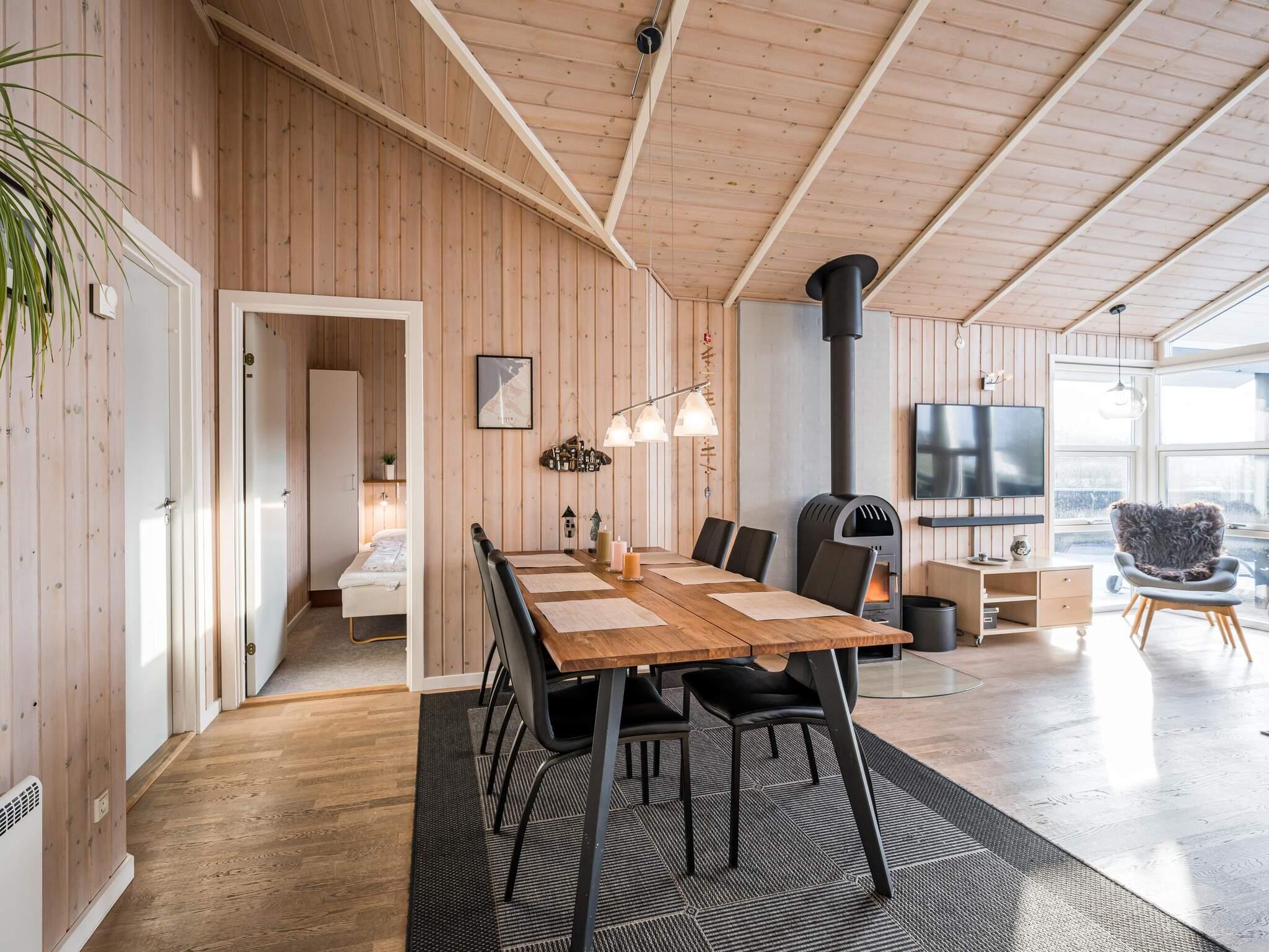 Sommerhuset byder på en lys og venlig atmosfære med god plads til hele familien. Det åbne køkken er funktionelt og centralt placeret i forbindelse med den hyggelige stue, hvor brændeovnen skaber varme og stemning på køligere dage. Herfra er der direkte udgang til husets absolutte perle – en stor, fuldstændig lukket og ugeneret terrasse, hvor både børn og hunde kan færdes frit og trygt. Nyd morgenkaffen i ro og mag, slap af i solen, eller tænd op i grillen og nyd lange sommeraftener under åben himmel.