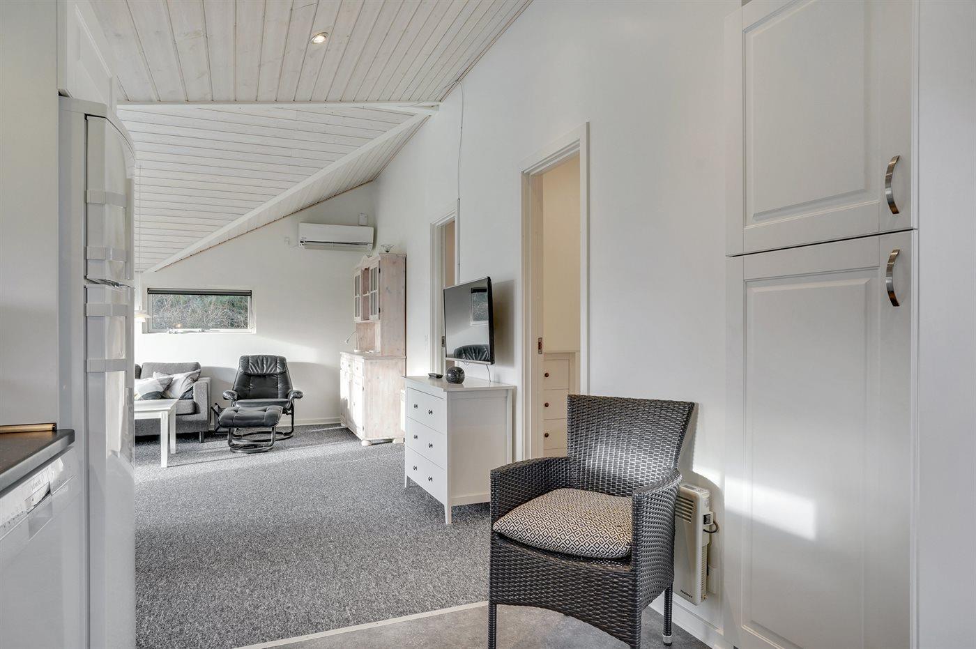 Køkkenet er udstyret med 1 køleskab. Der er 4 keramiske kogeplader, varmluftovn, mikrobølgeovn samt opvaskemaskine.
