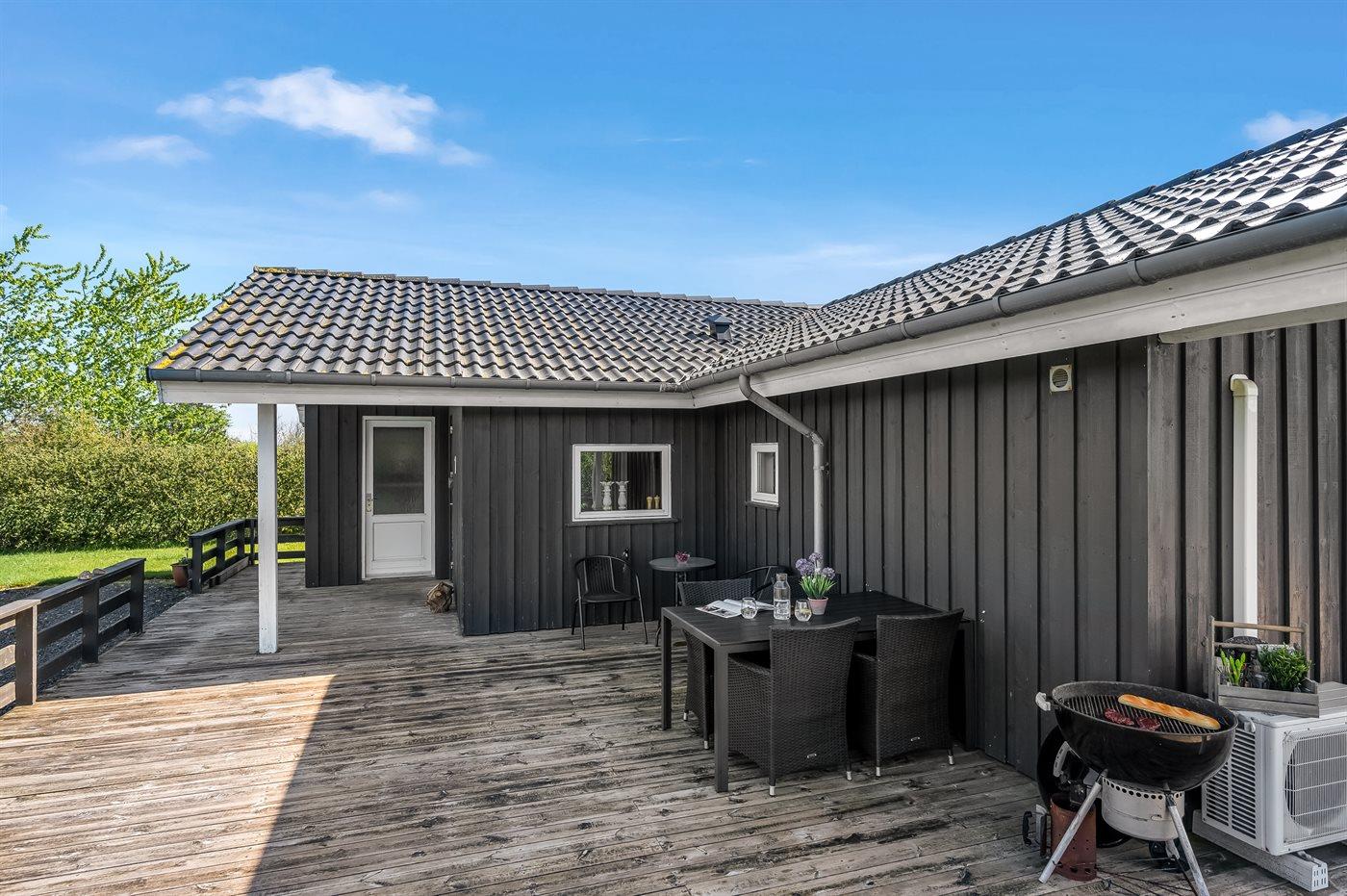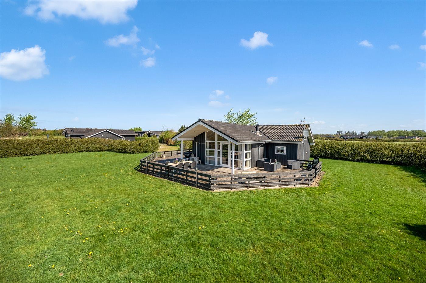 Ferieboligen er beliggende på en 1282 m² stor naturgrund. Der er 800 m til fjorden. Nærmeste forretning er beliggende i en afstand af 700 m. Til ferieboligen hører åbent terrasseareal. Desuden er der overdækket terrasse. Parkering ved ferieboligen.