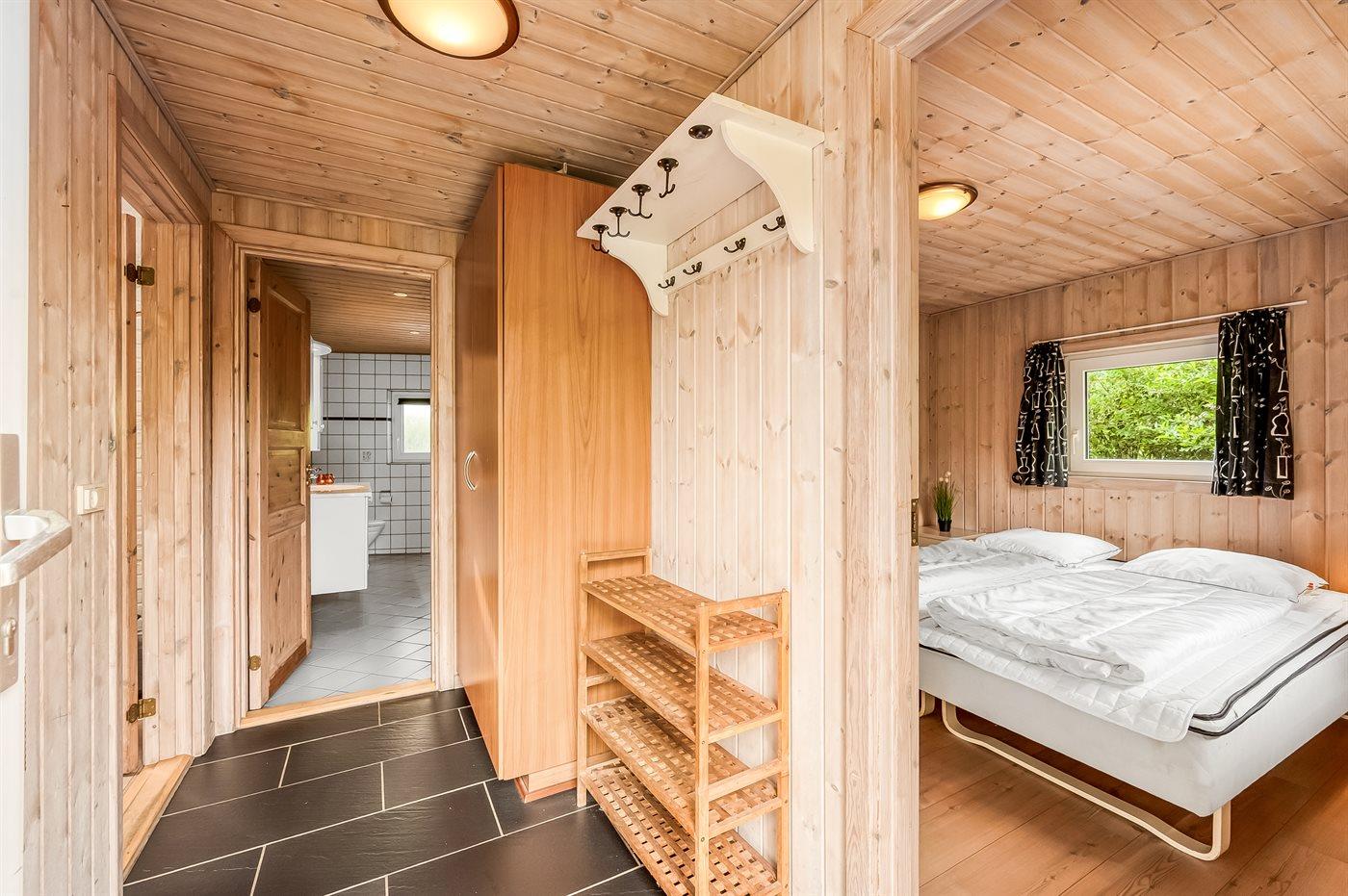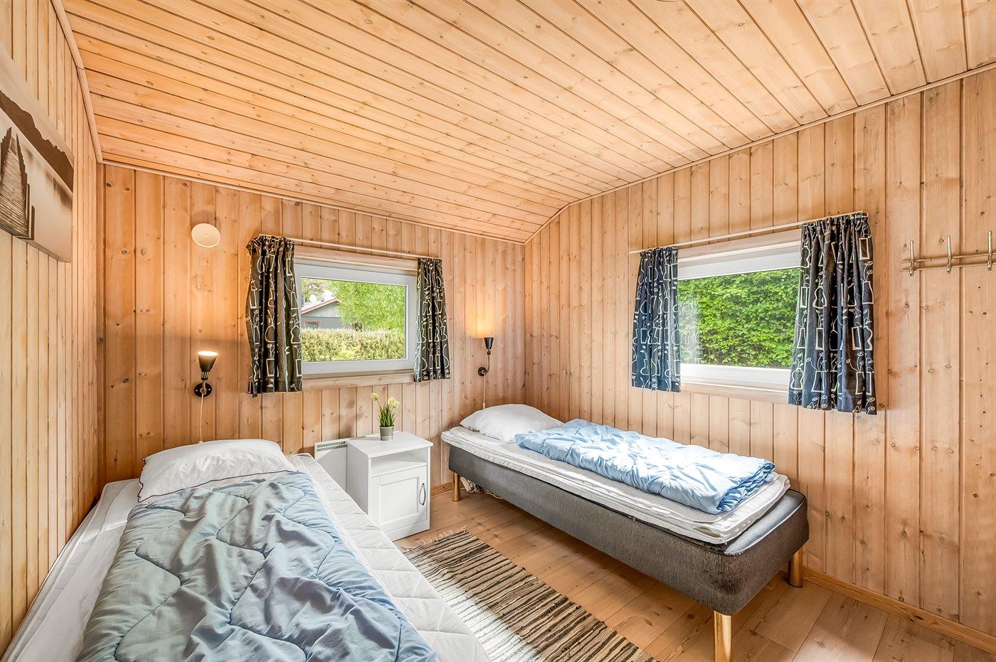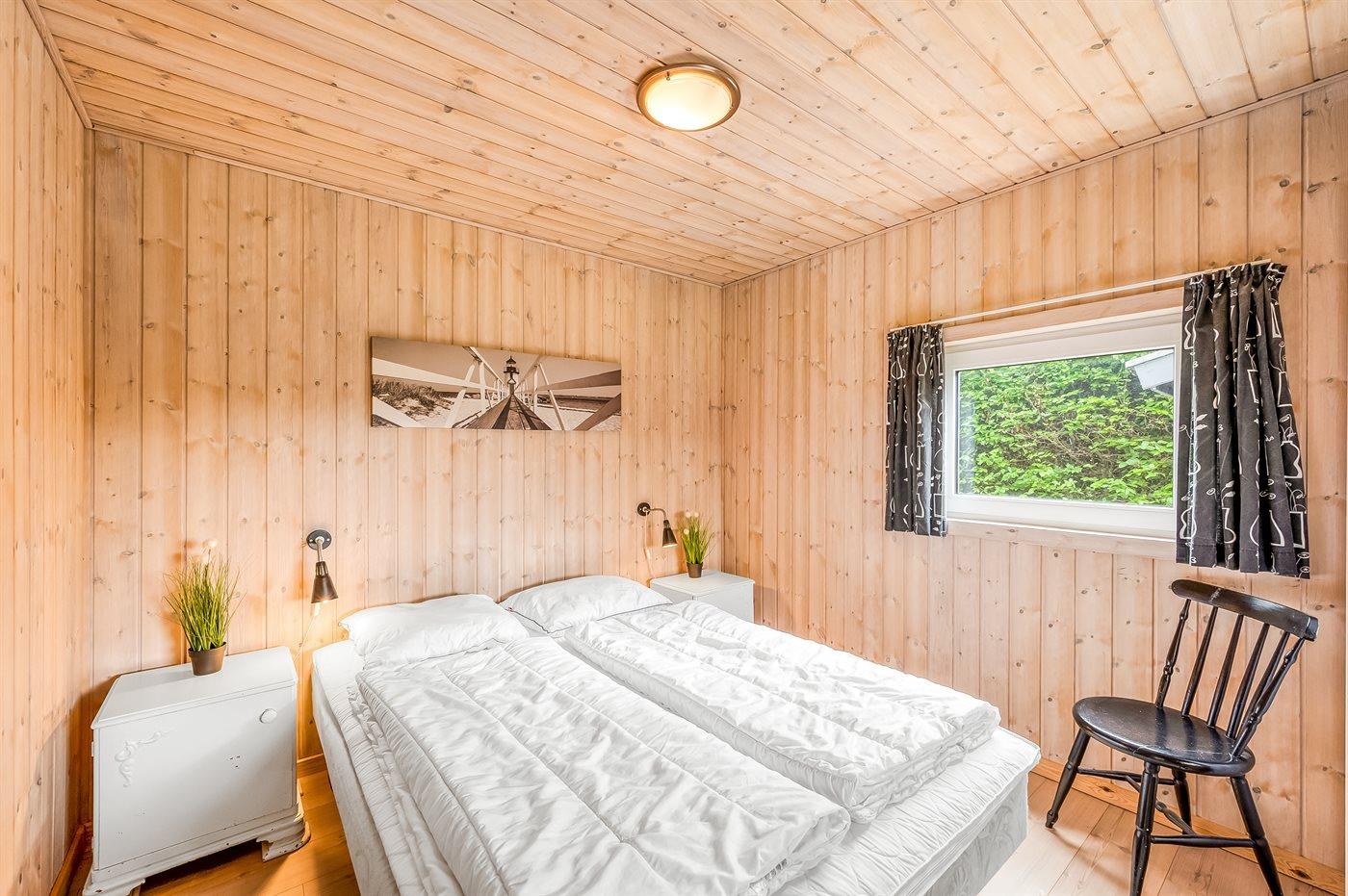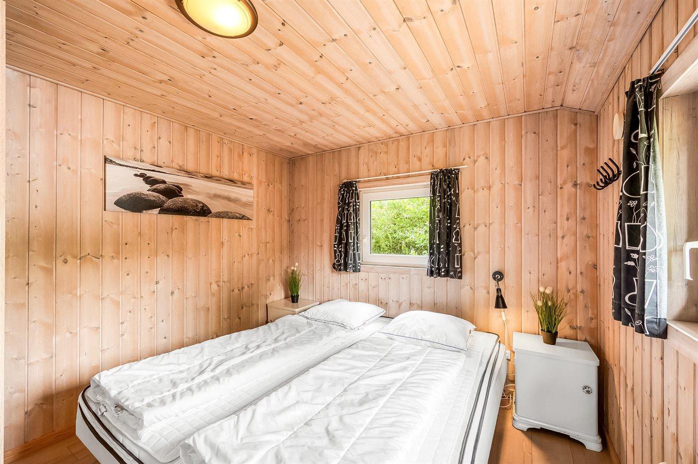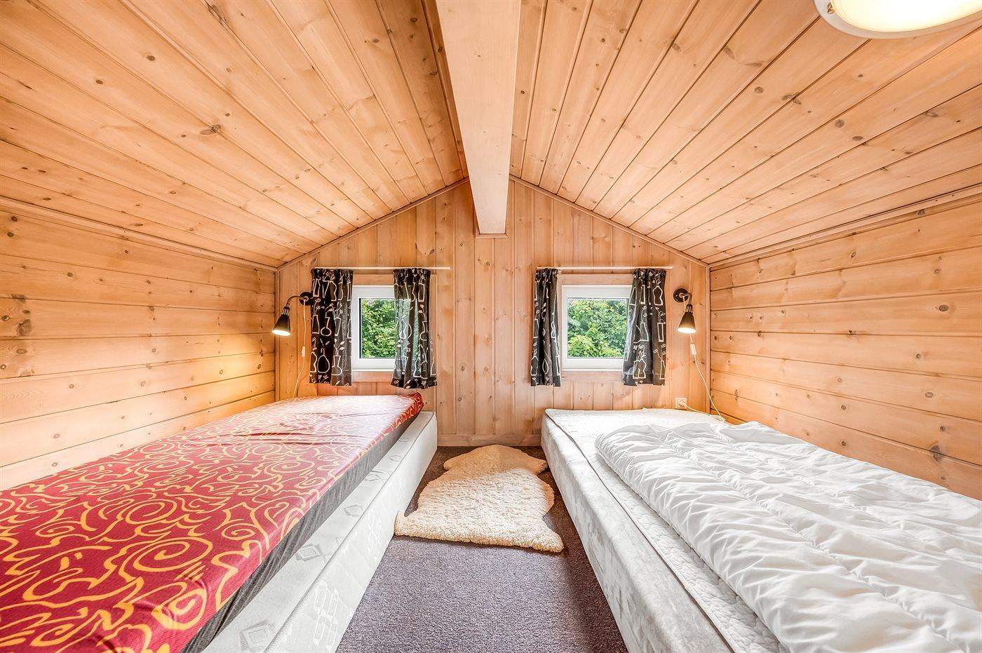 Der er i alt 3 soveværelser. Sovepladserne fordeler sig på: 4 sovepladser i dobbeltsenge. 2 sovepladser i enkeltsenge. 2 sovepladser på madrasser. 2 af disse sovepladser befinder sig på husets hems. Derudover er der 1 stk. barneseng.