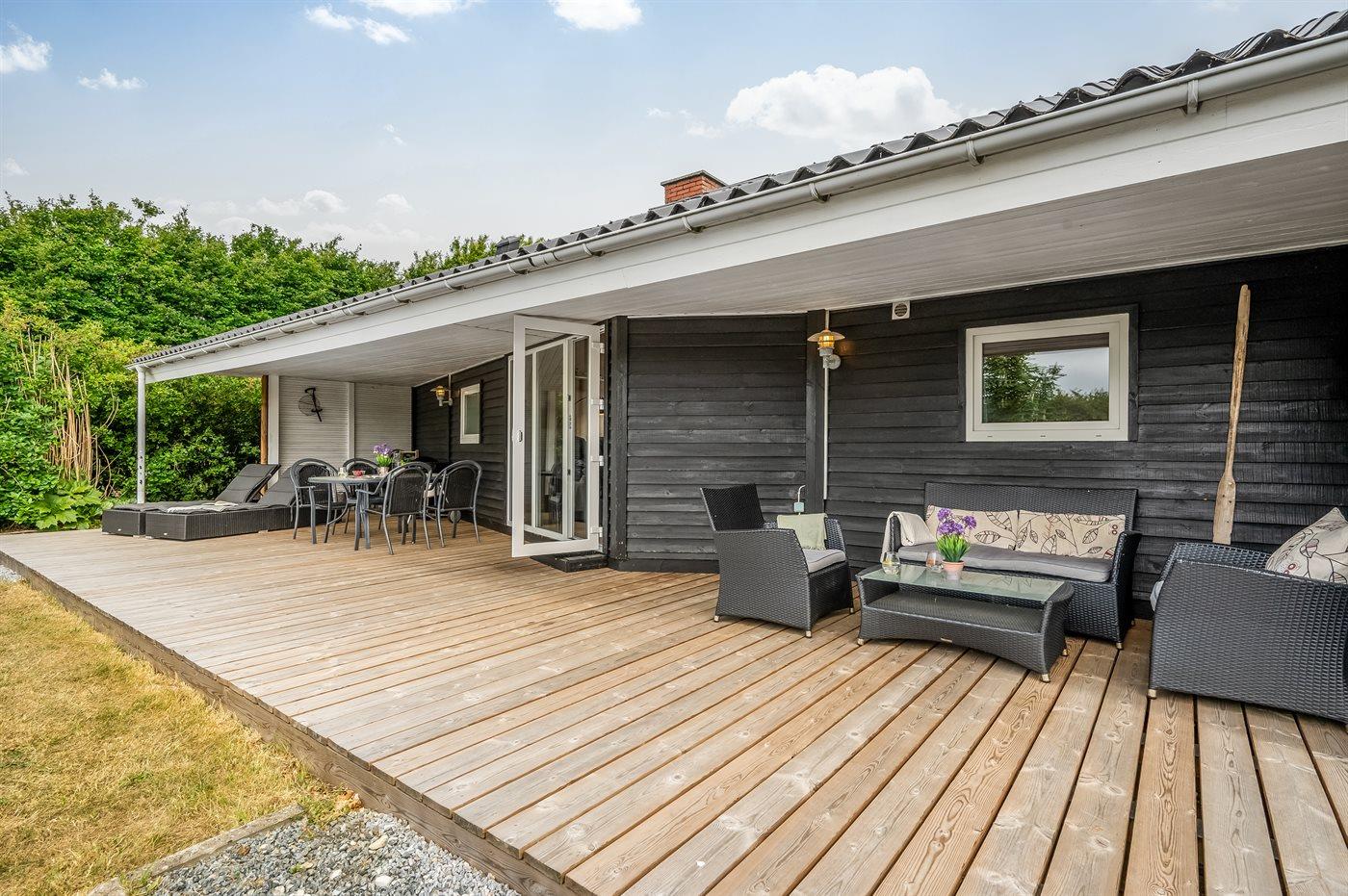 Hyggeligt sommerhus ved Skaven Strand med spa, sauna og stor terrasse i naturskønne omgivelser.
