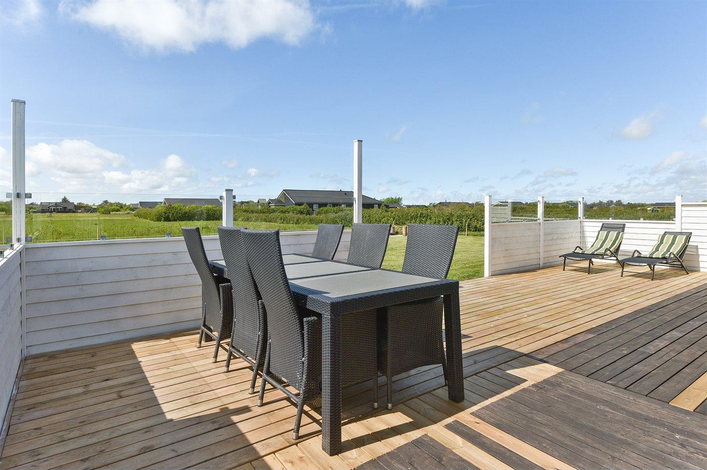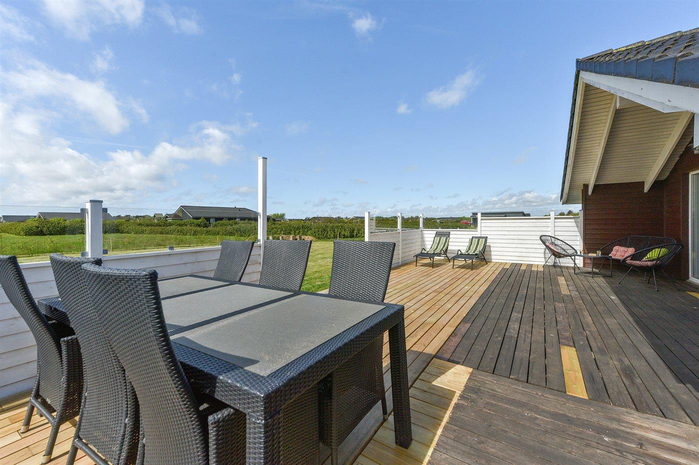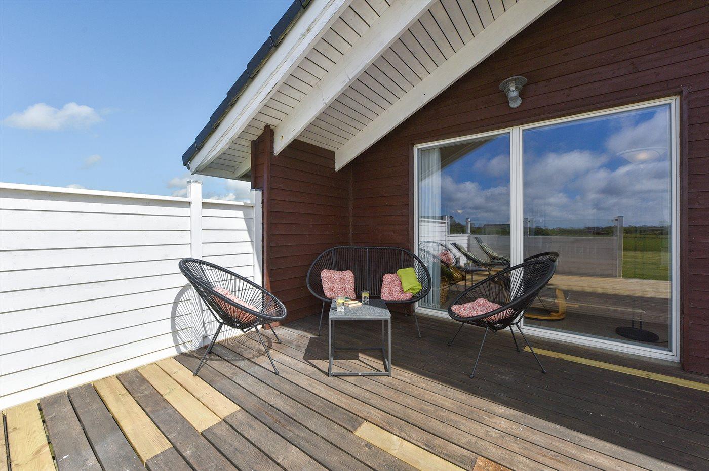 Ferieboligen er beliggende på en 1200 m² stor naturgrund. Der er 14000 m til havet. Der er 1250 m til fjorden. Nærmeste forretning er beliggende i en afstand af 500 m. Til ferieboligen hører 65 m² terrasseareal. Desuden er der 15 m² overdækket terrasse. Der er redskabsrum. Gynge. Trampolin. Der er installeret stik til opladning af elbil. Type 2 stik. Parkering ved ferieboligen.