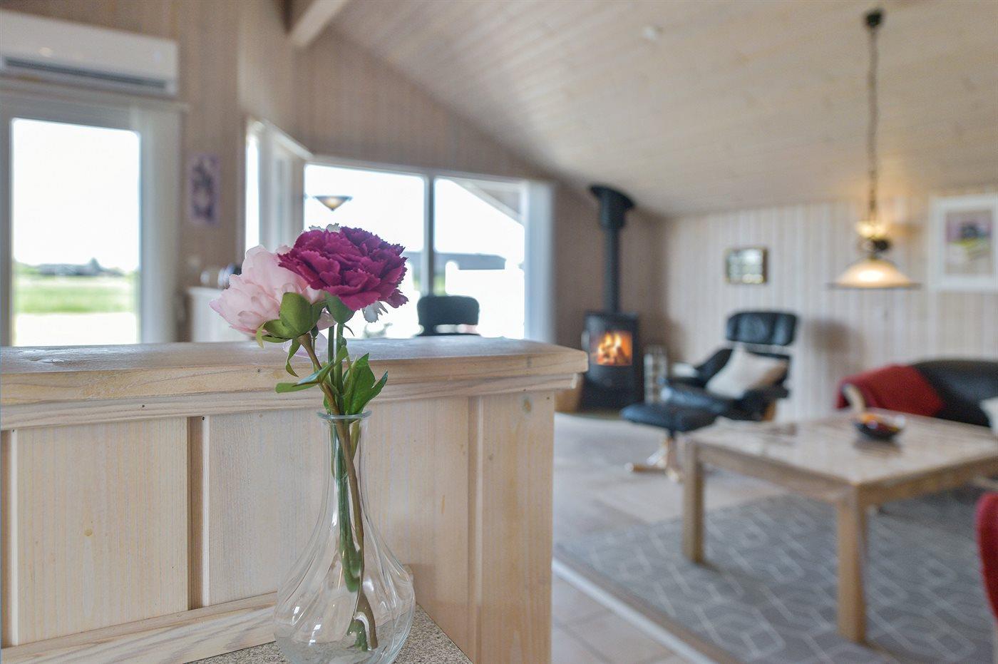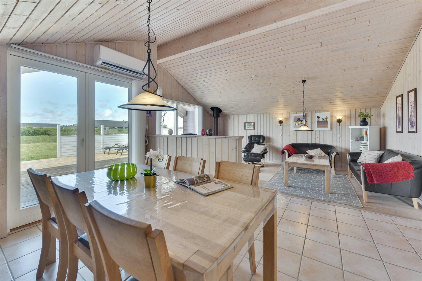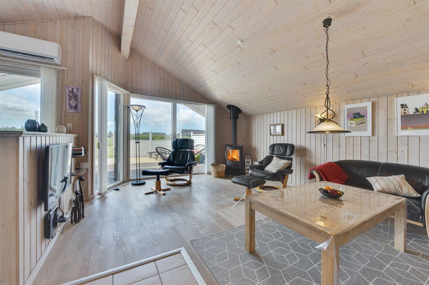 Dejligt rummeligt feriehus, beliggende på en stor naturgrund. 2 dejlige badeværelser. Bemærk at de 2 sovepladser i alkove befinder sig i opholdsstuen. Huset er velegnet til såvel 1 som 2 familier. Fælles legeplads i området. Der er gode muligheder for lystfiskeri i bl. a. Skjern Å. Kør er tur til fuglereservatet Tipperne eller Skjern Å-dalen. Man kan også gå langs fjordens strand, tage en svømmetur eller gå en tur ned til den hyggelige havn i Skaven og opleve stemningen.