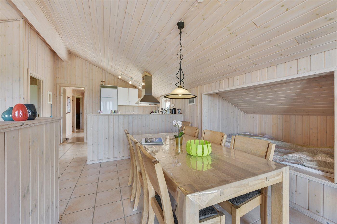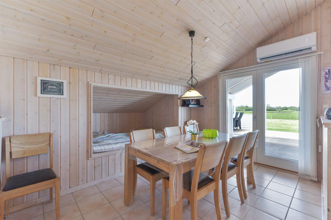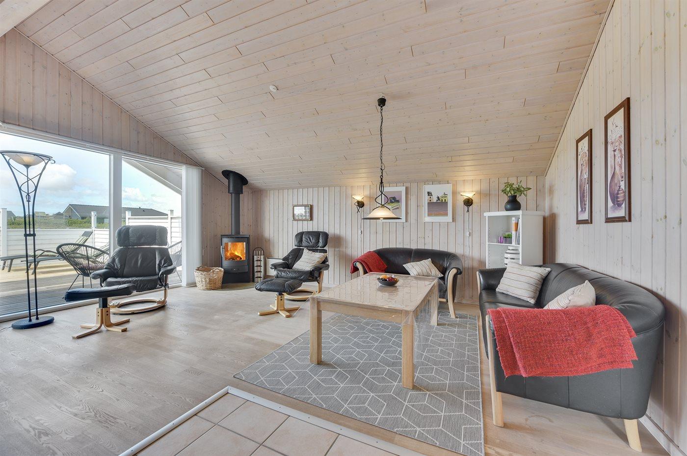 Dejligt rummeligt feriehus, beliggende på en stor naturgrund. 2 dejlige badeværelser. Bemærk at de 2 sovepladser i alkove befinder sig i opholdsstuen. Huset er velegnet til såvel 1 som 2 familier. Fælles legeplads i området. Der er gode muligheder for lystfiskeri i bl. a. Skjern Å. Kør er tur til fuglereservatet Tipperne eller Skjern Å-dalen. Man kan også gå langs fjordens strand, tage en svømmetur eller gå en tur ned til den hyggelige havn i Skaven og opleve stemningen.