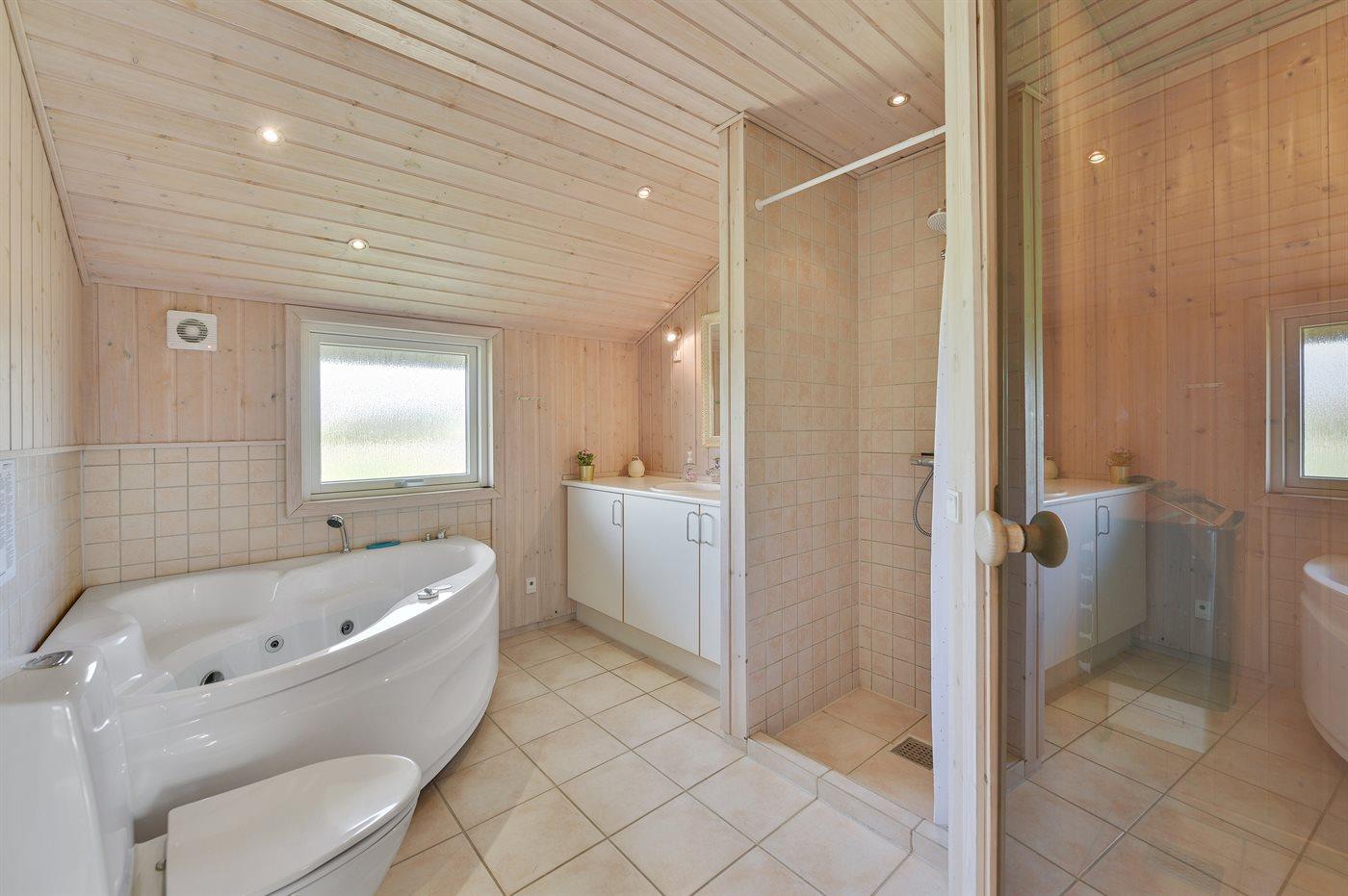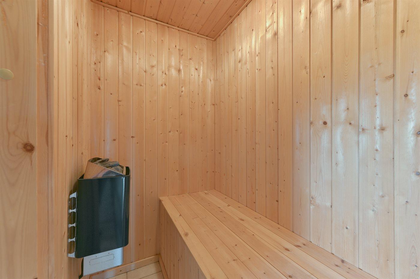 Der er 2 badeværelser med bruseniche og 2 toiletter. Der er gulvvarme på 1 badeværelse. I saunaen er der mulighed for afslapning.