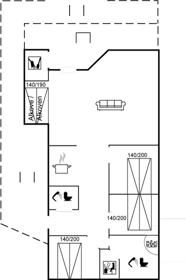 Der er i alt 3 soveværelser. Sovepladserne fordeler sig på: 6 sovepladser i dobbeltsenge. 2 sovepladser i alkove. Derudover er der 1 stk. barneseng.