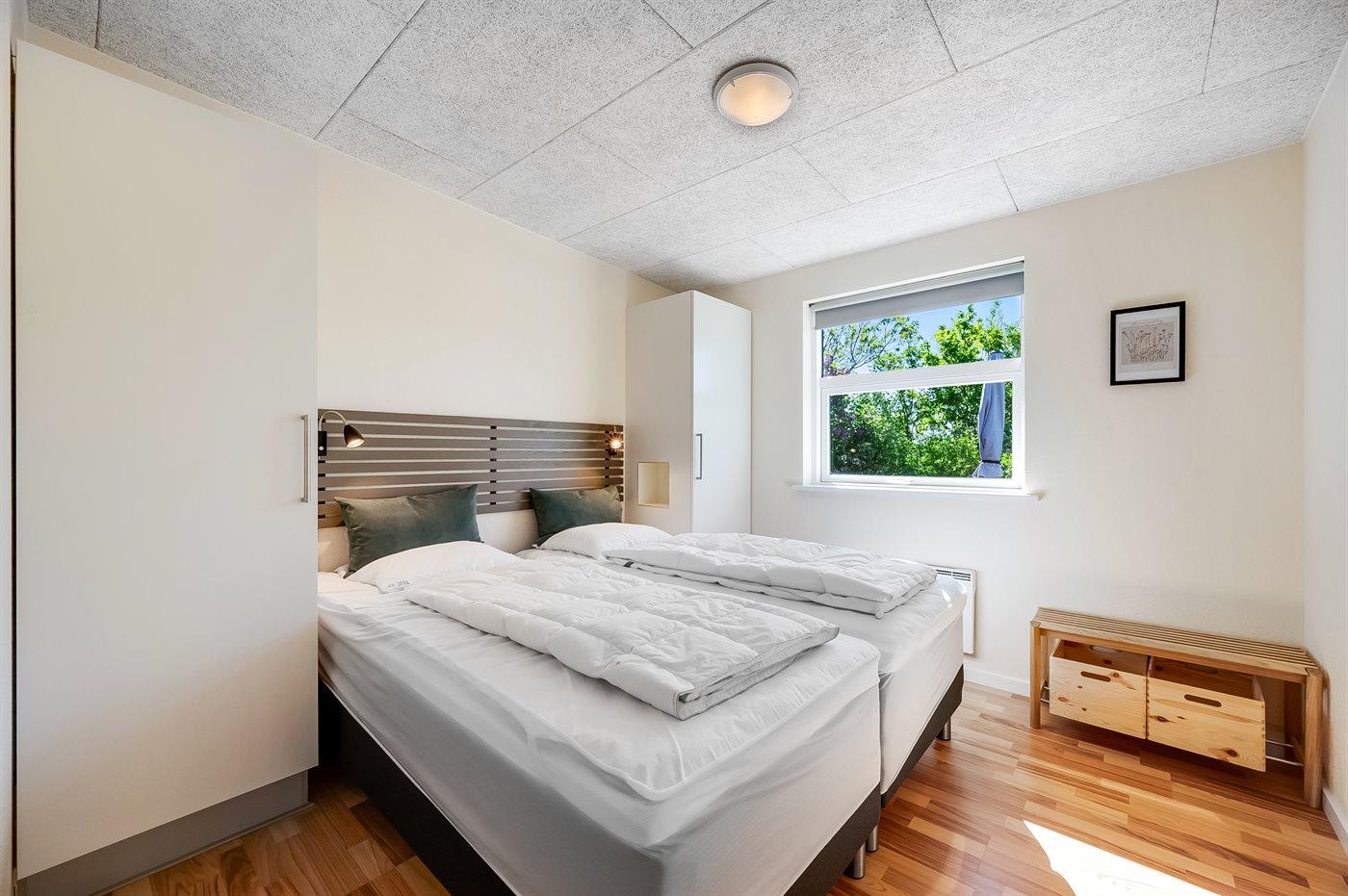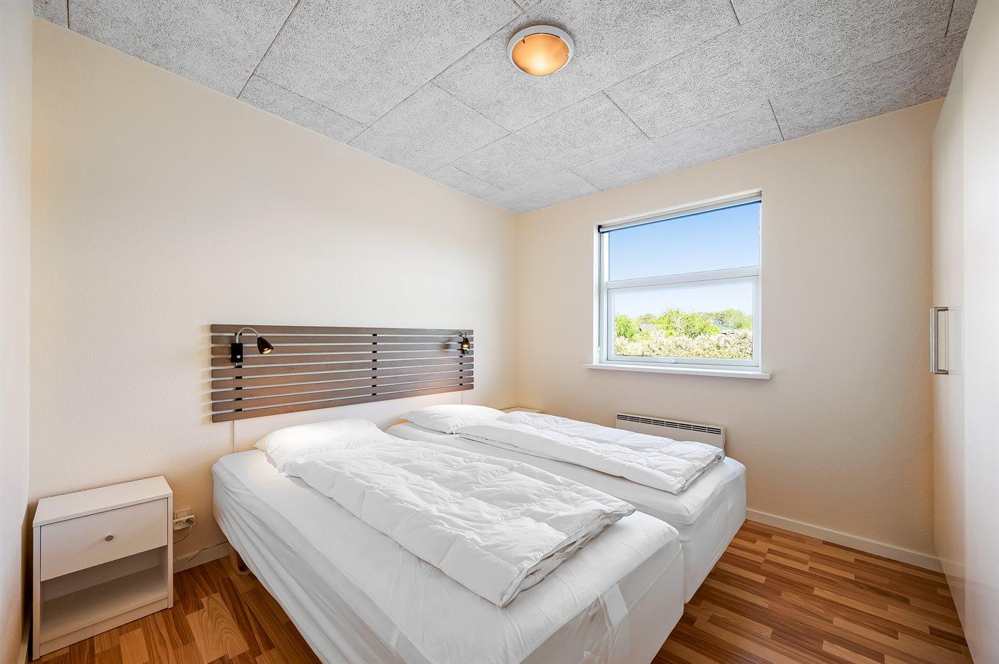 Der er i alt 3 soveværelser. Sovepladserne fordeler sig på: 8 sovepladser i dobbeltsenge. 2 af disse sovepladser befinder sig på husets hems. Derudover er der 1 stk. barneseng.