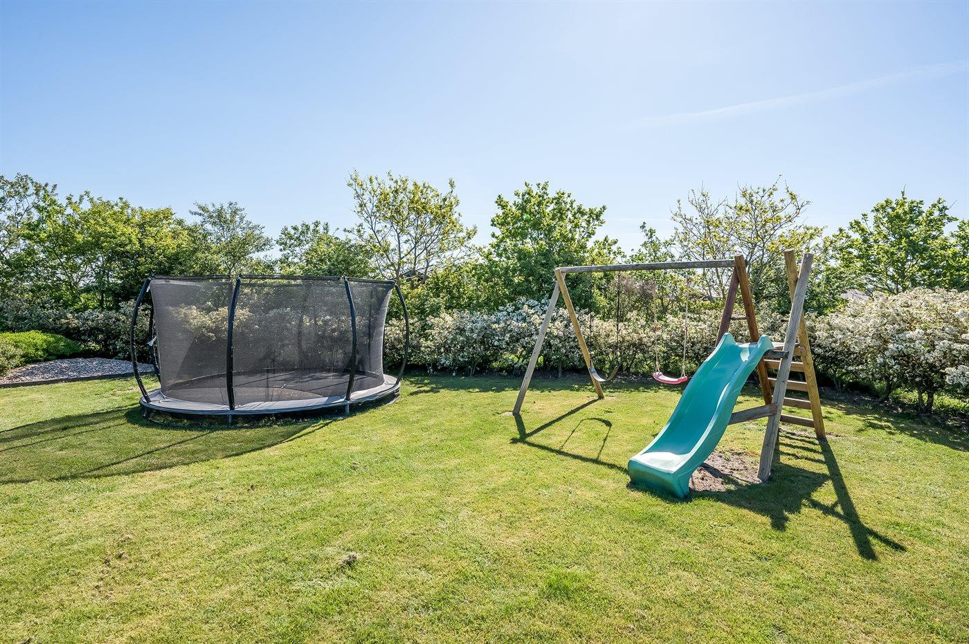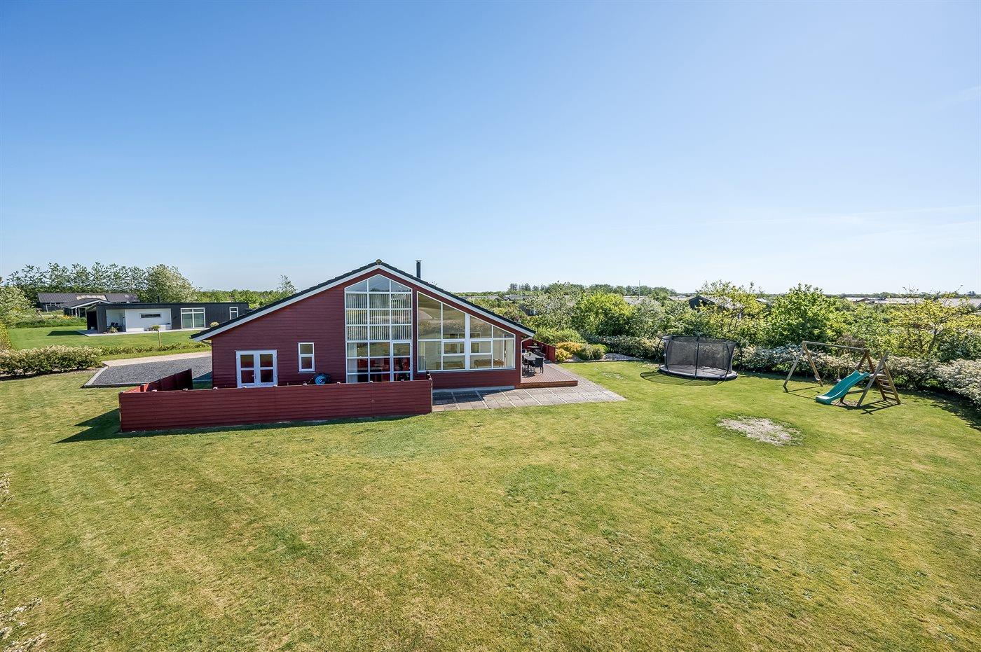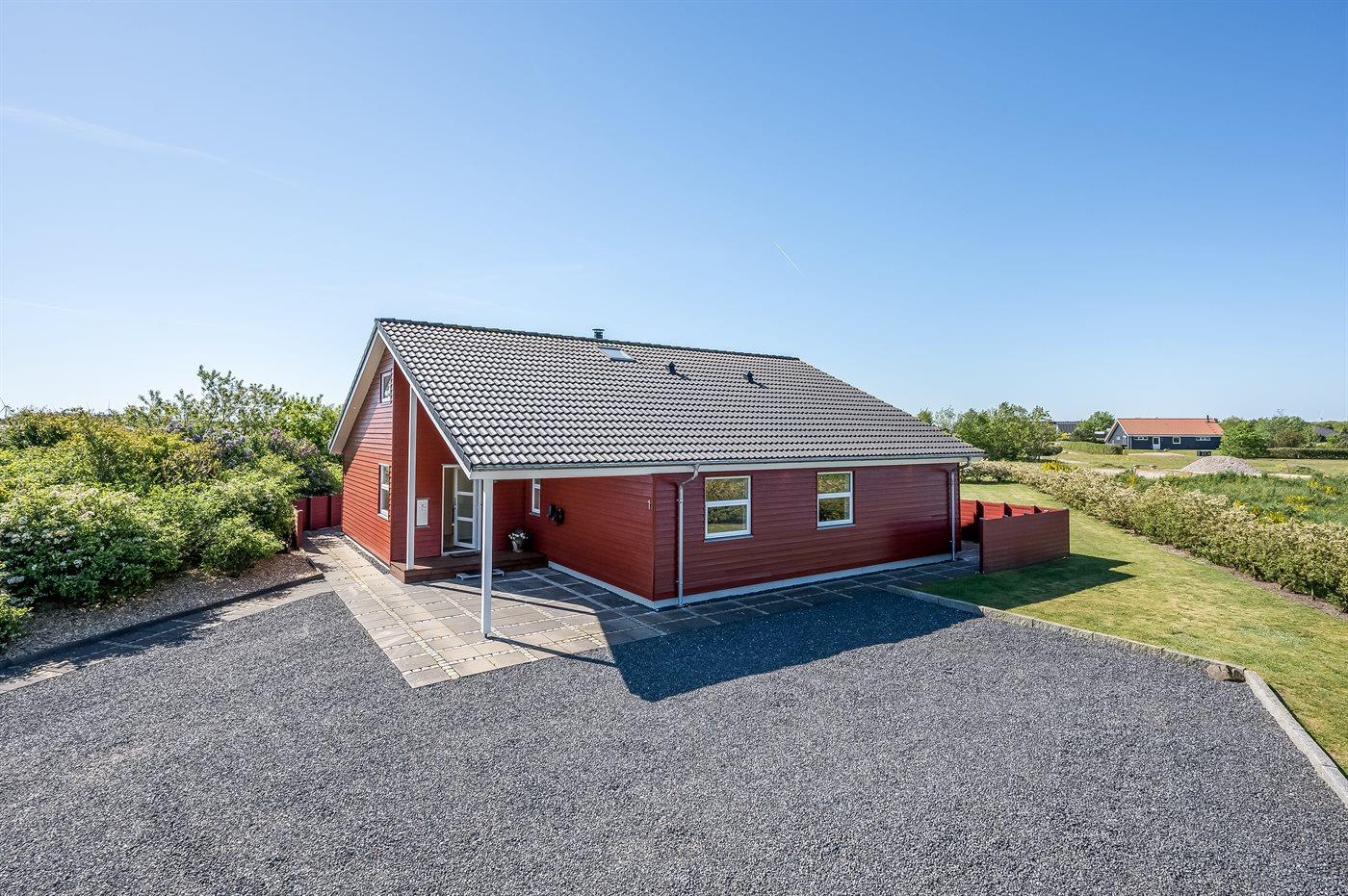 Ferieboligen er beliggende på en 1280 m² stor naturgrund. Der er 12000 m til havet. Der er 800 m til fjorden. Nærmeste forretning er beliggende i en afstand af 700 m. Til ferieboligen hører 90 m² terrasseareal. Gynge. Trampolin. Rutchebane. Der er carport til rådighed. Der er installeret stik til opladning af elbil. Med 11 kW ladeeffekt. Parkering ved ferieboligen.