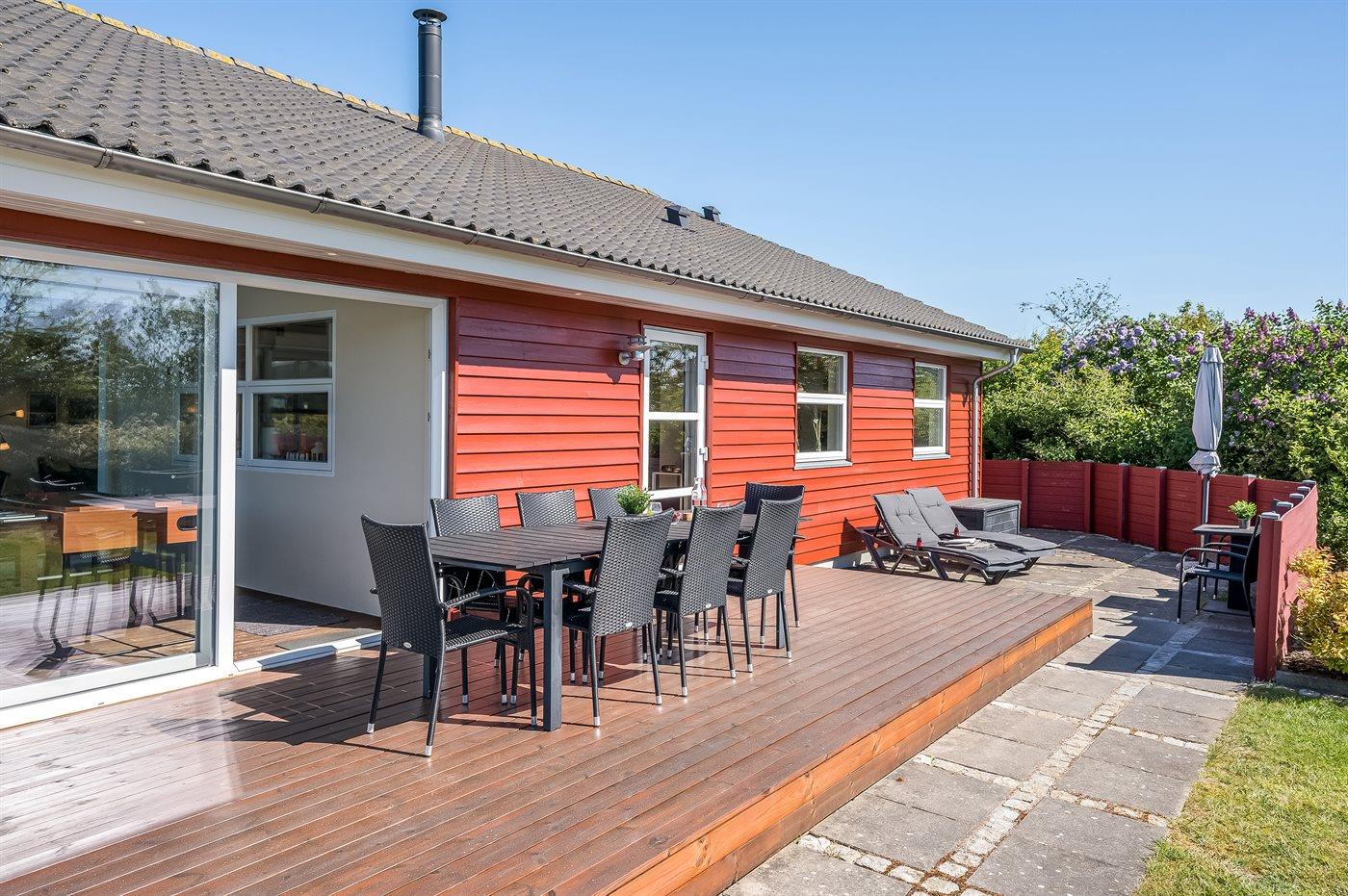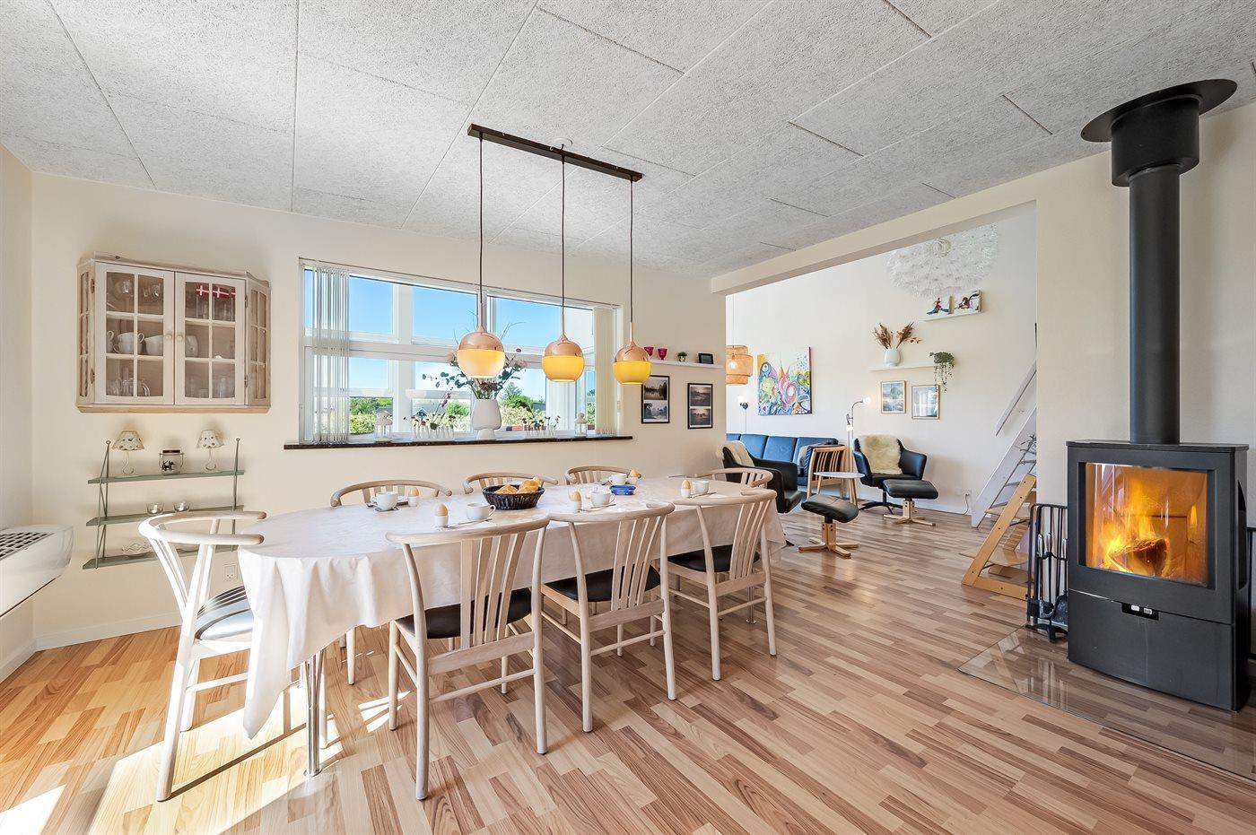 Sommerhuset egner sig til 8 personer samt 1 barn op til 3 år. Ferieboligen er på 128 m² og er bygget i 2010. Det er tilladt at medbringe 2 husdyr. Ferieboligen er udstyret med energibesparende varmepumpe. Der er gulvvarme i alle klinkegulve. Ferieboligen har vaskemaskine. Tørretumbler. Frysekapacitet på 60 liter. Der er desuden brændeovn. Til de små er der 2 stk. barnestole. Puslebord.