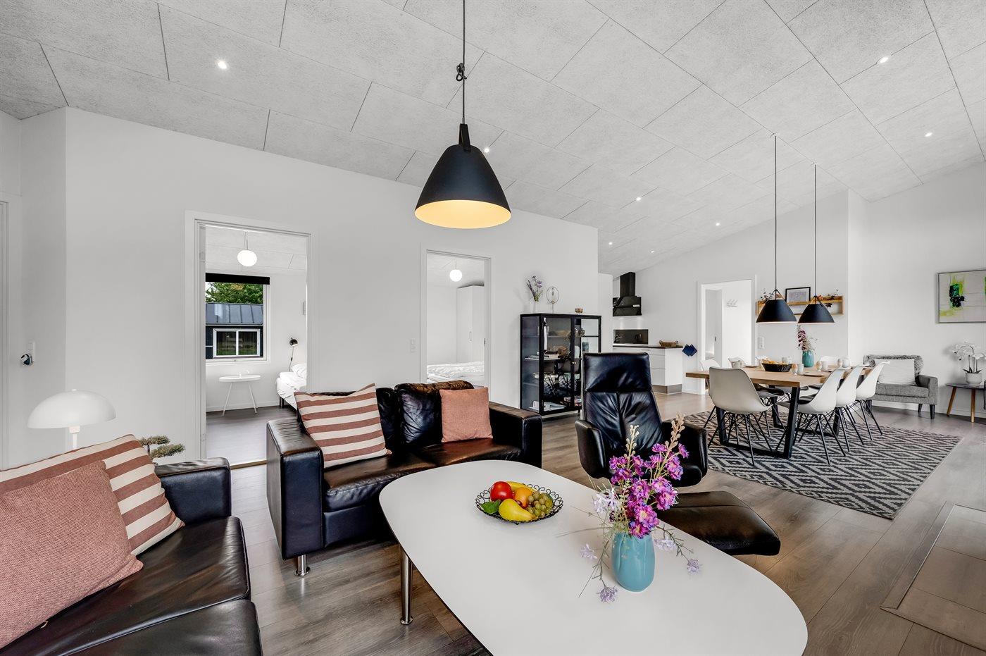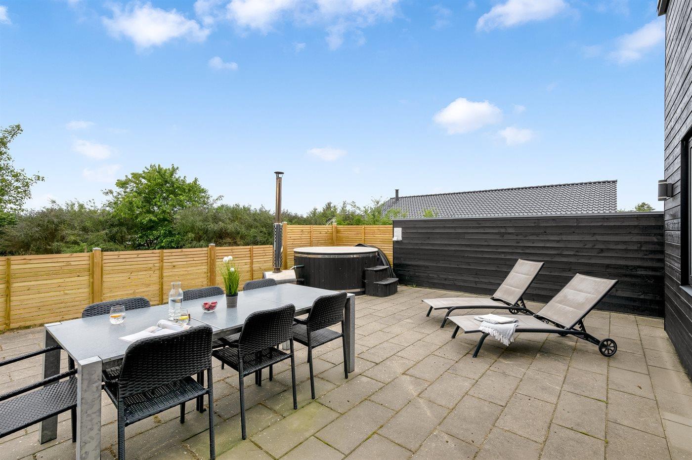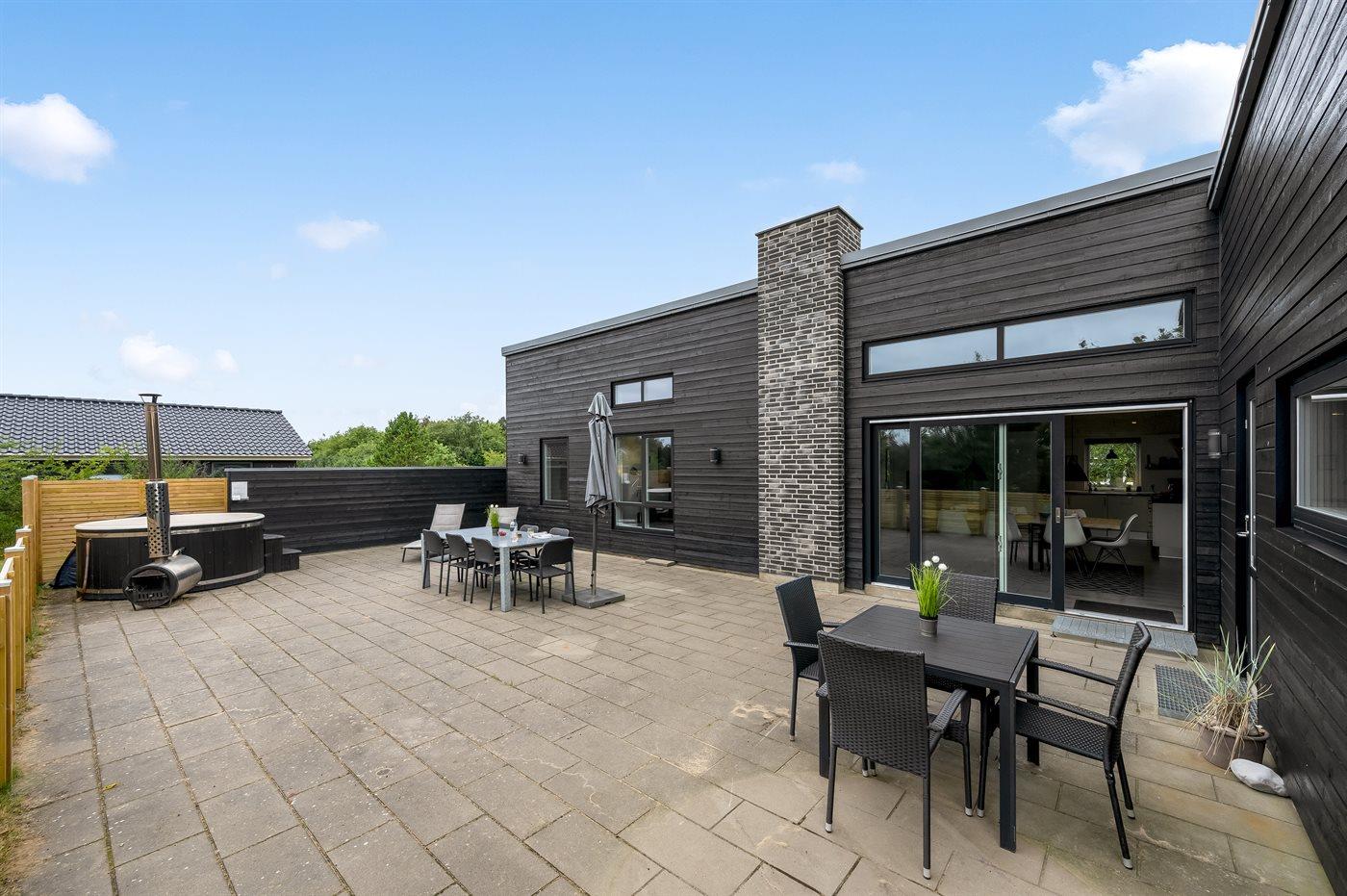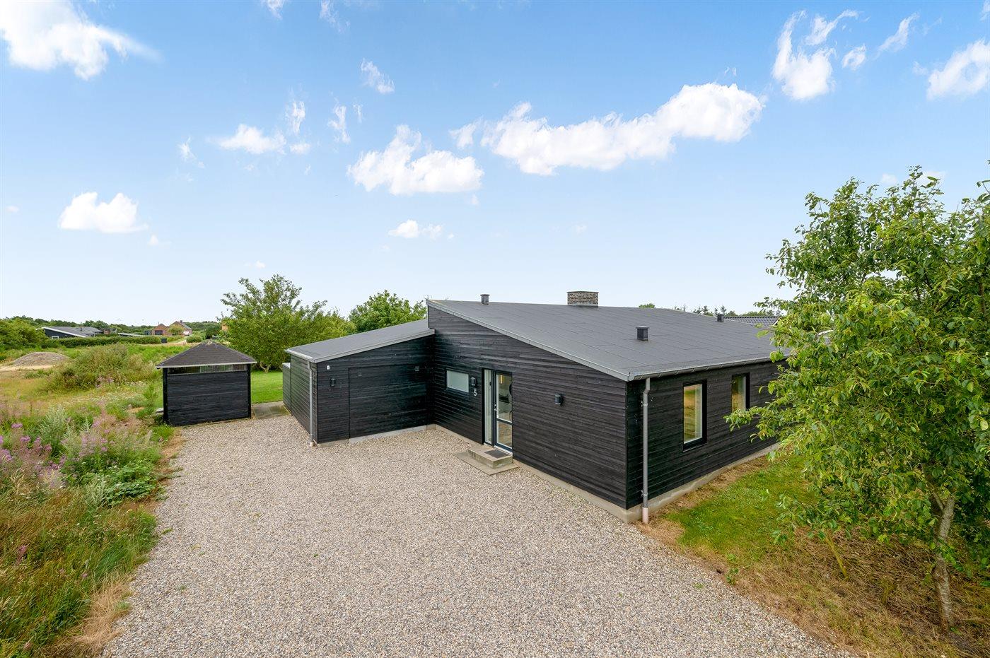 Lækkert sommerhus med aktivitetsrum bygget i kvalitetsmaterialer i 2018. Feriehuset er beliggende i rolige omgivelser ved Skaven Strand.