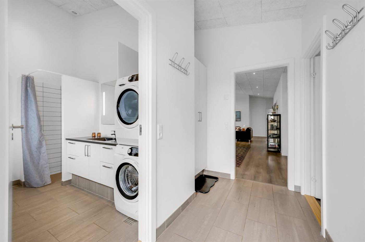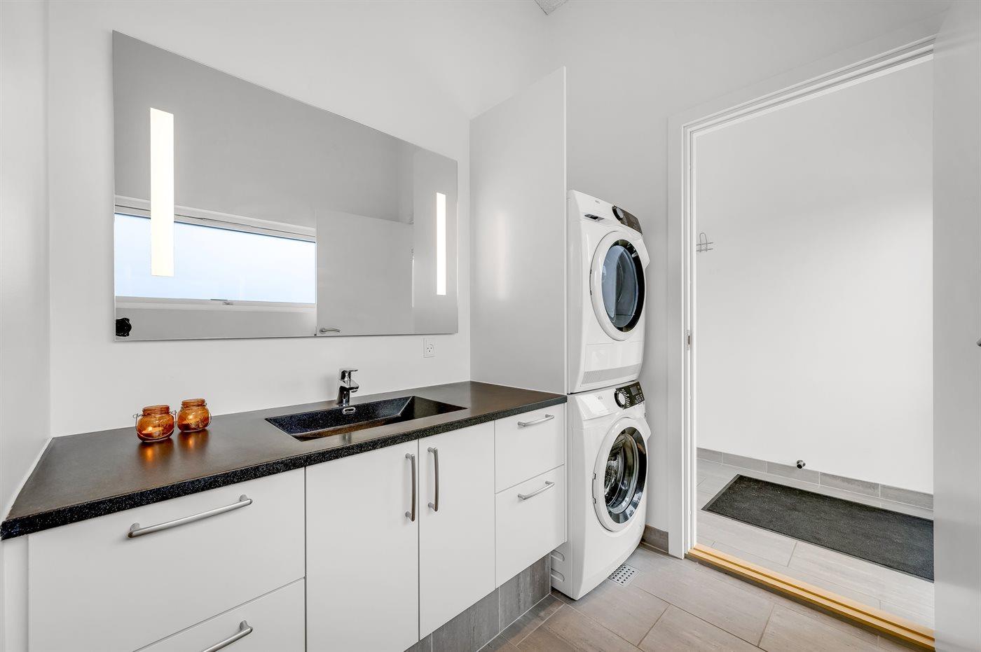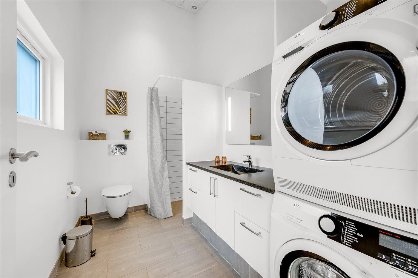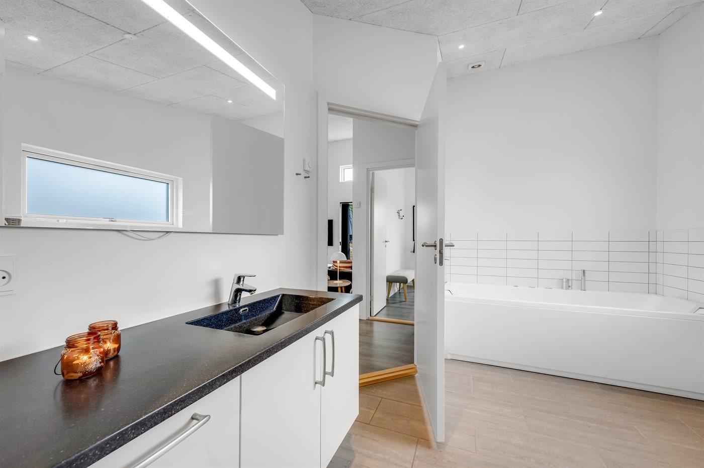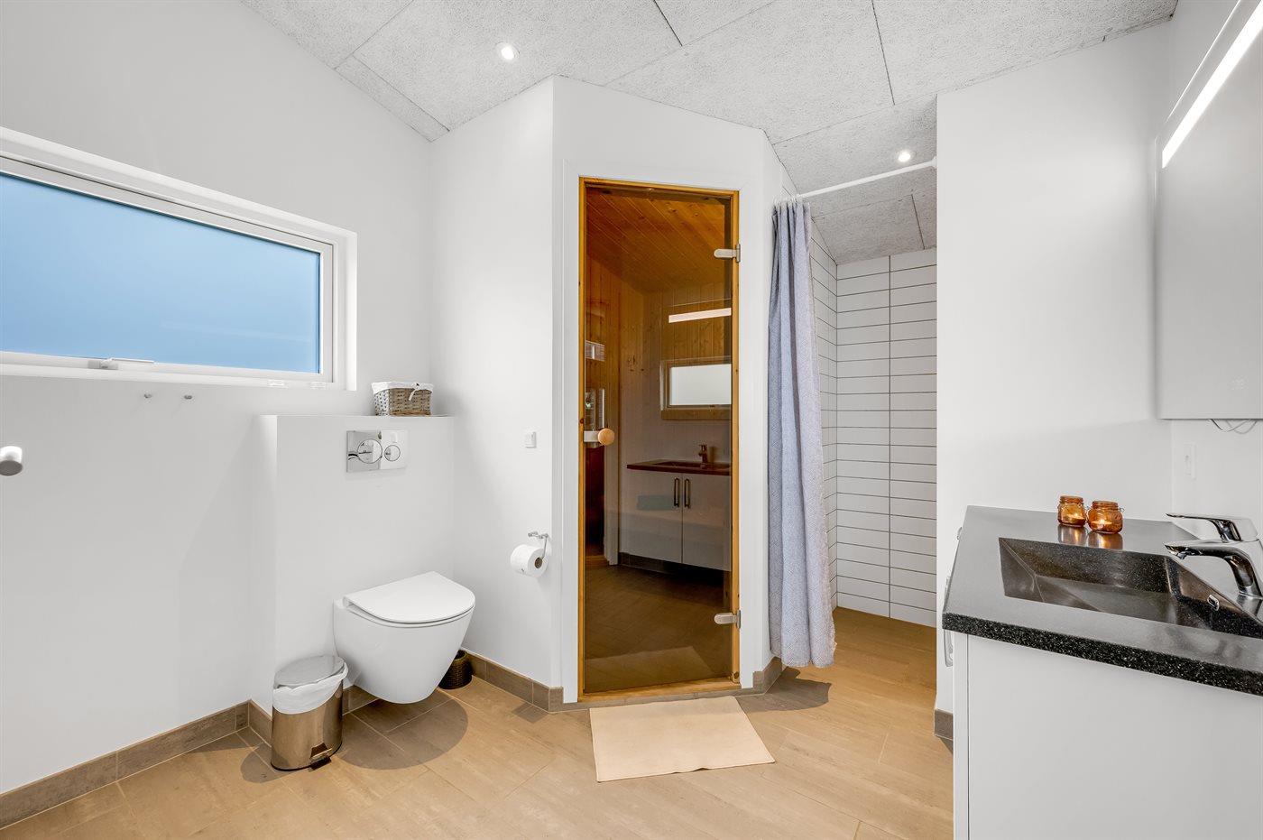 Der er 2 badeværelser med bruseniche og 2 toiletter. Der er gulvvarme på 2 badeværelser. I saunaen er der mulighed for afslapning.