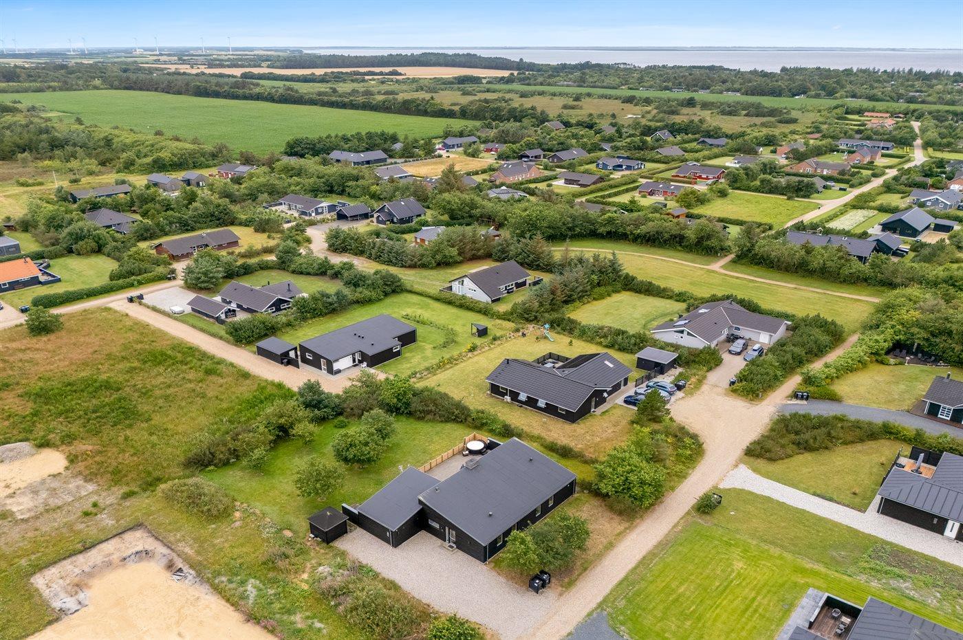 Ferieboligen er beliggende på en 1201 m² stor naturgrund. Der er 950 m til fjorden. Nærmeste forretning er beliggende i en afstand af 800 m. Til ferieboligen hører 100 m² terrasseareal. Udendørs bruser. Parkering ved ferieboligen.