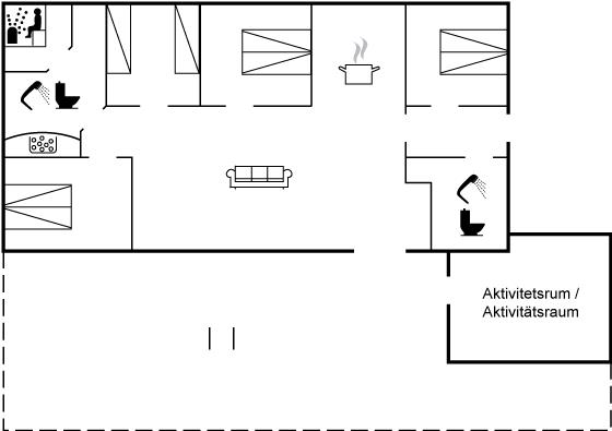 Der er i alt 4 soveværelser. Sovepladserne fordeler sig på: 6 sovepladser i dobbeltsenge. 2 sovepladser i enkeltsenge.