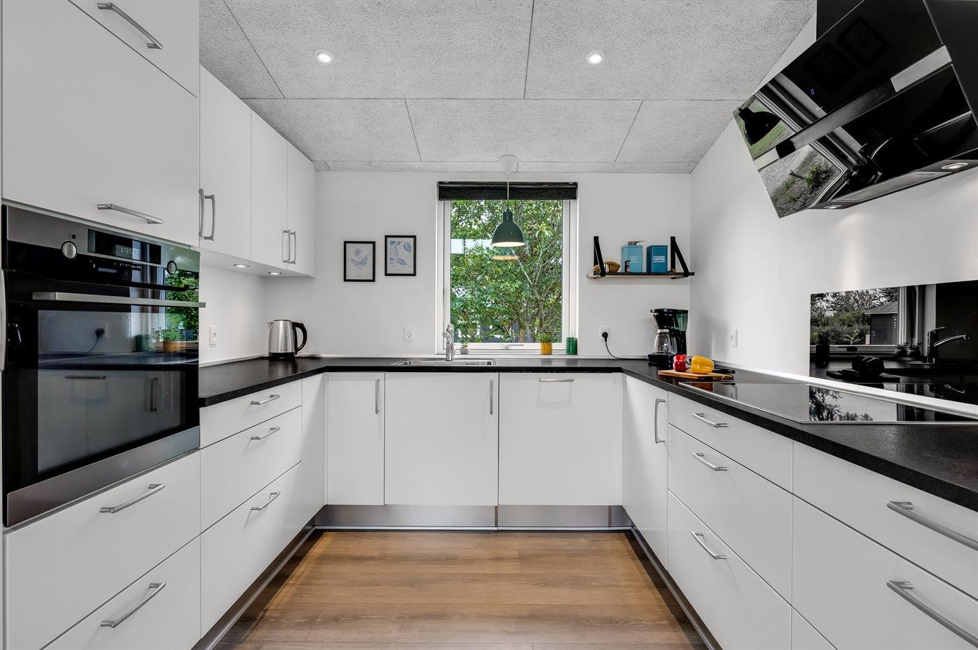 Køkkenet er udstyret med 1 køleskab. Der er 4 induktionskogeplader, varmluftovn, mikrobølgeovn samt opvaskemaskine.