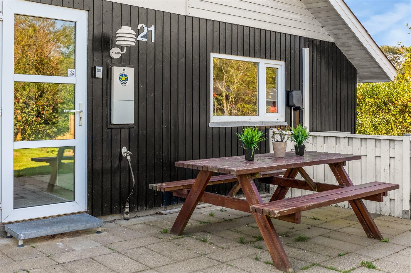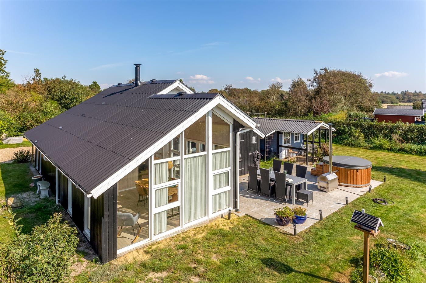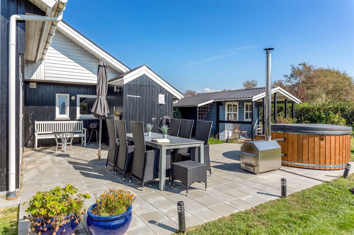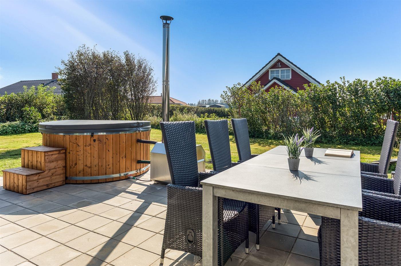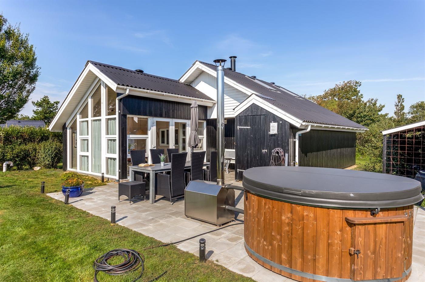 Til huset hører et terrasseområde og et dejligt vildmarkskar, som kan benyttes både sommer og vinter.
