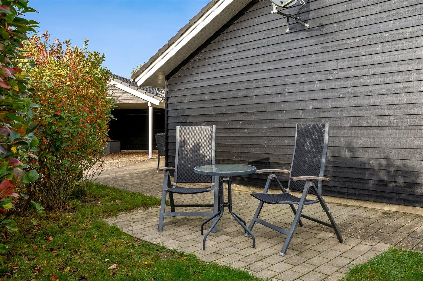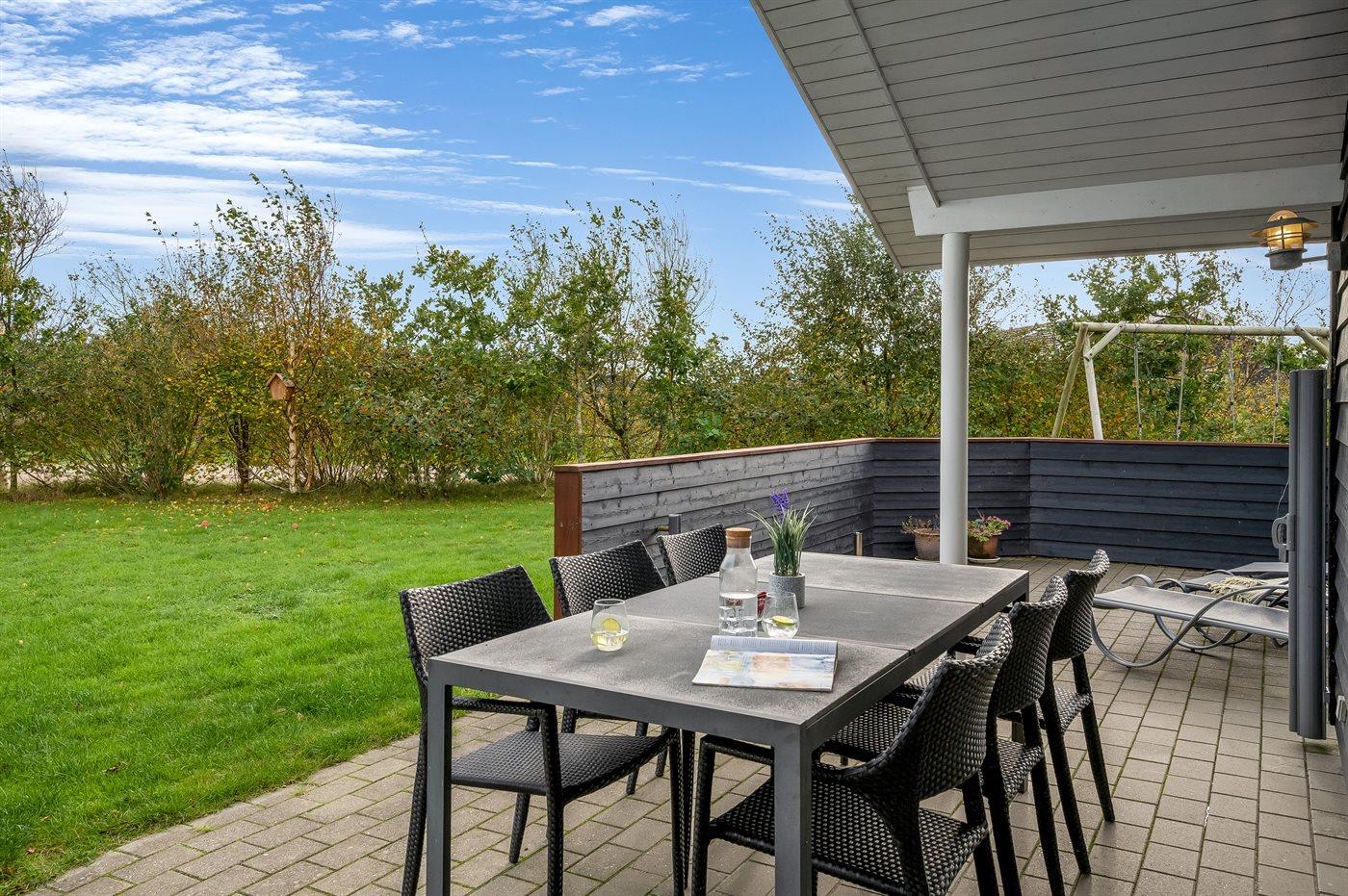 På den delvist overdækkede terrasse kan I nyde solen og slappe af i de bekvemme havemøbler.