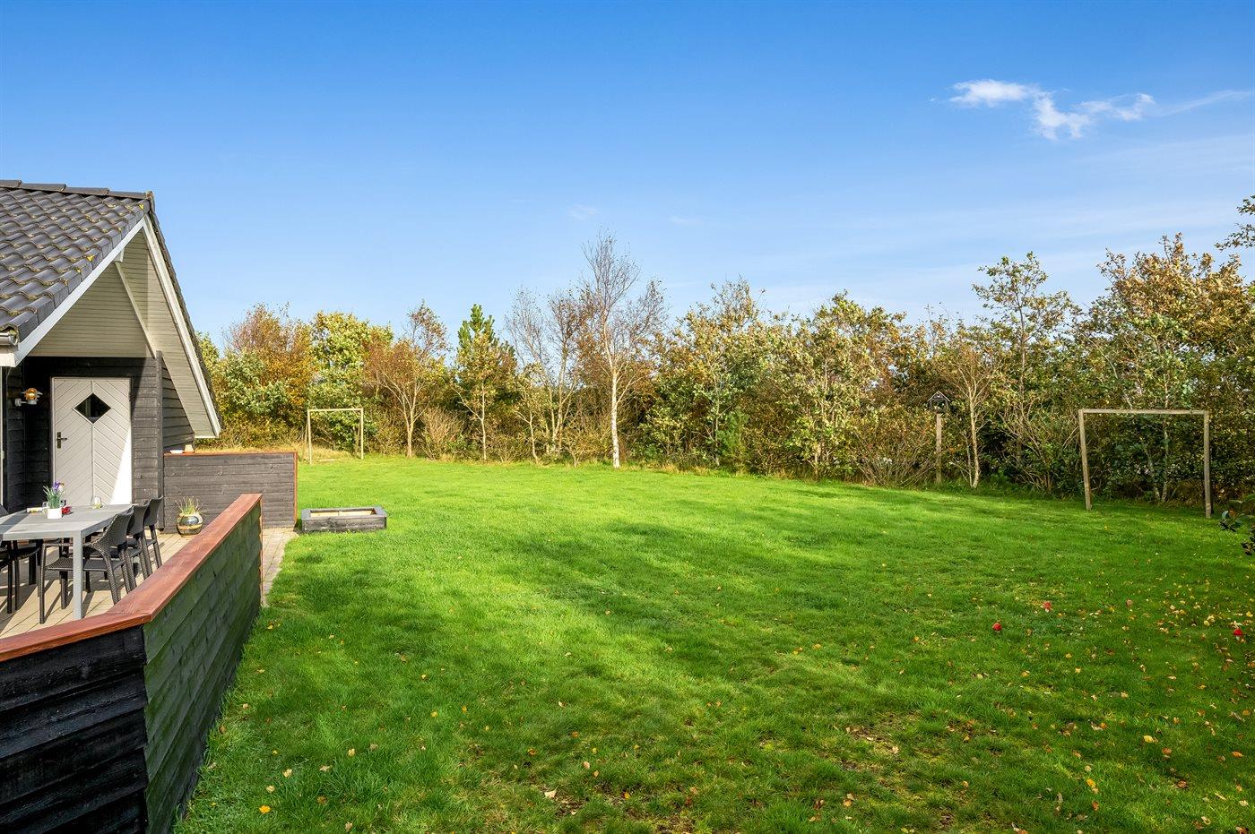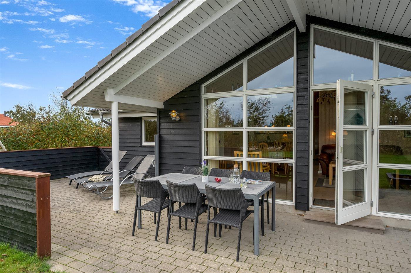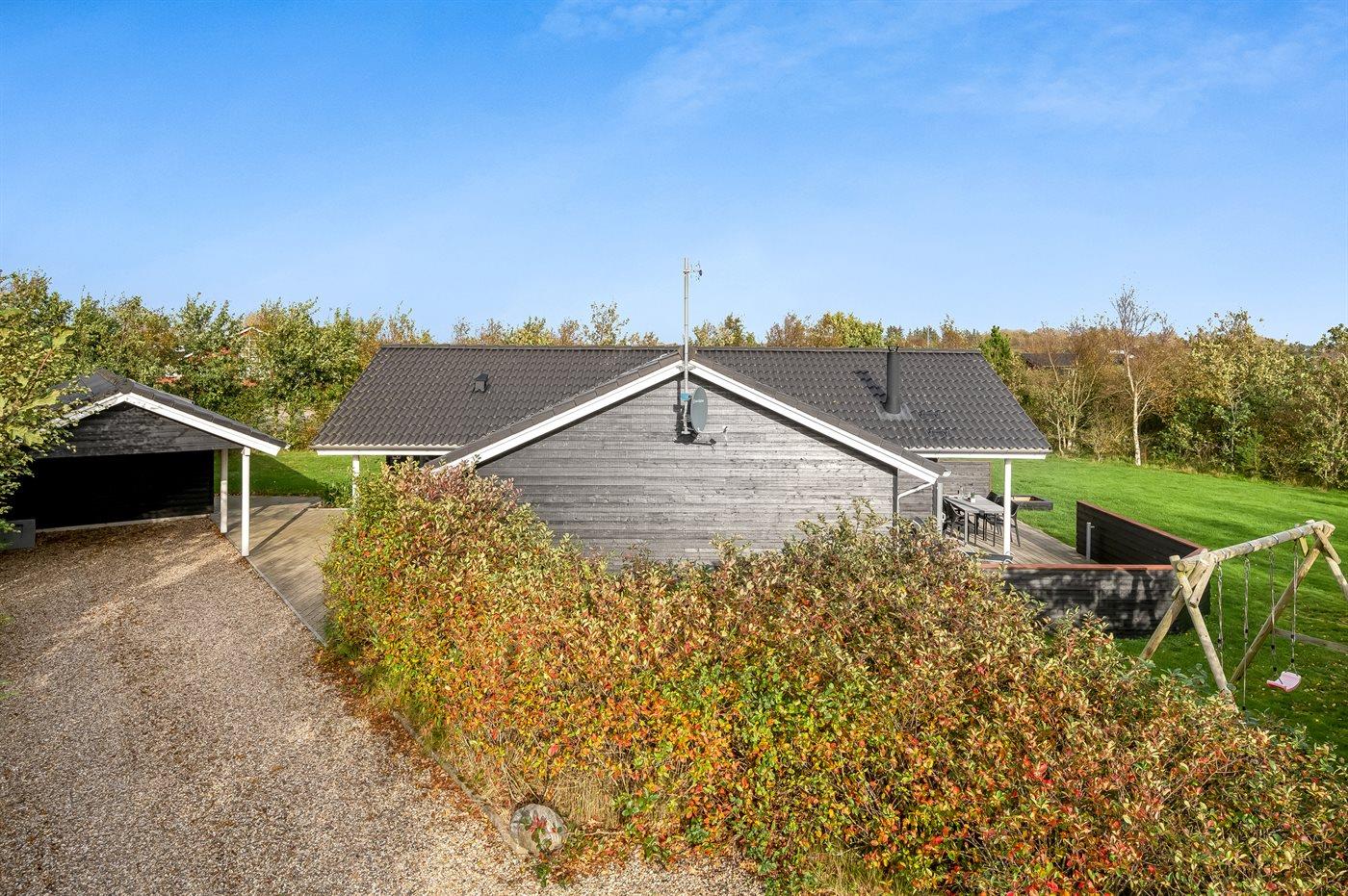 Ferieboligen er beliggende på en 1320 m² stor naturgrund. Der er 800 m til fjorden. Nærmeste forretning er beliggende i en afstand af 700 m. Til ferieboligen hører åbent terrasseareal. Desuden er der overdækket terrasse. Gynge. Sandkasse. Der er carport til rådighed. Parkering ved ferieboligen.