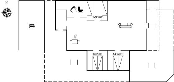 Der er i alt 3 soveværelser. Sovepladserne fordeler sig på: 4 sovepladser i dobbeltsenge. 2 sovepladser i enkeltsenge. Derudover er der 1 stk. barneseng.