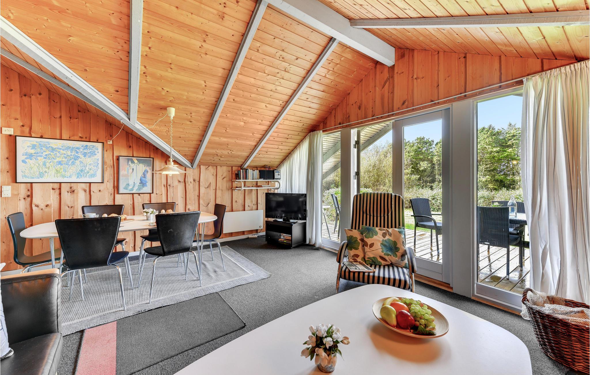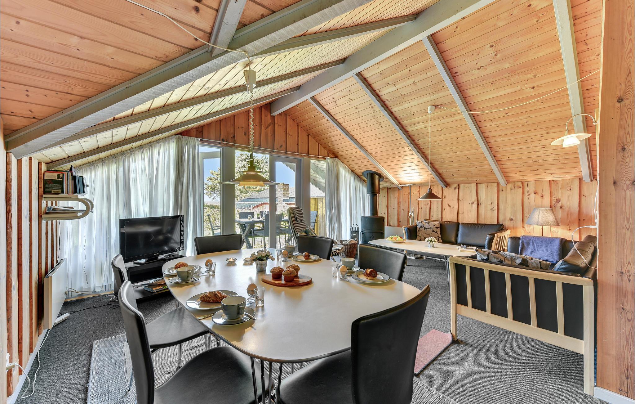 Hvis I planlægger en ferie ikke langt fra stranden, hvor der også er mulighed for spændende aktiviteter, er dette hus det rette valg. Det byder på hyggelige rum og smukke trælofter – en skøn ramme om jeres pause fra hverdagen. Se frem til hyggelige aftener med hele familien, hvad enten det er til fælles aftensmad med udsigt til haven eller en spilleaften i sofagruppen, mens ilden knitrer i brændeovnen.