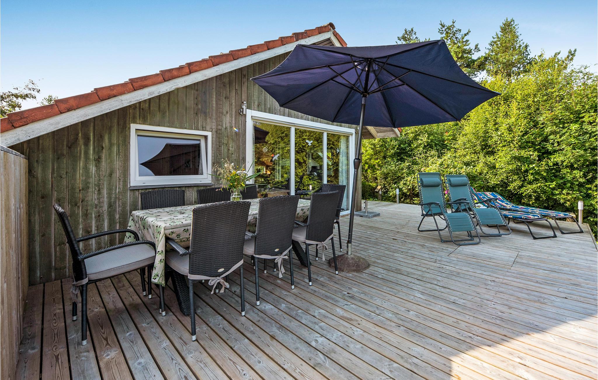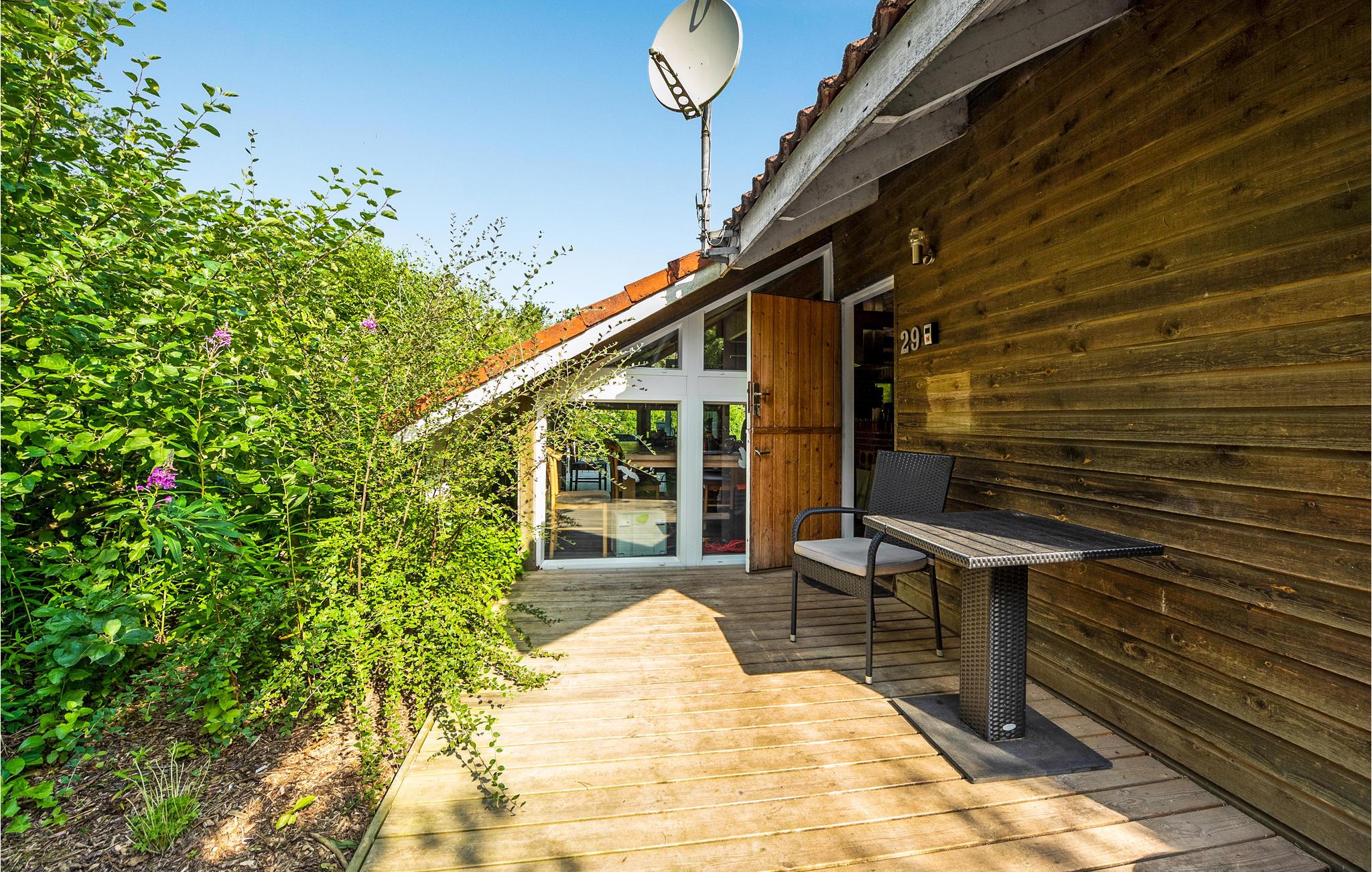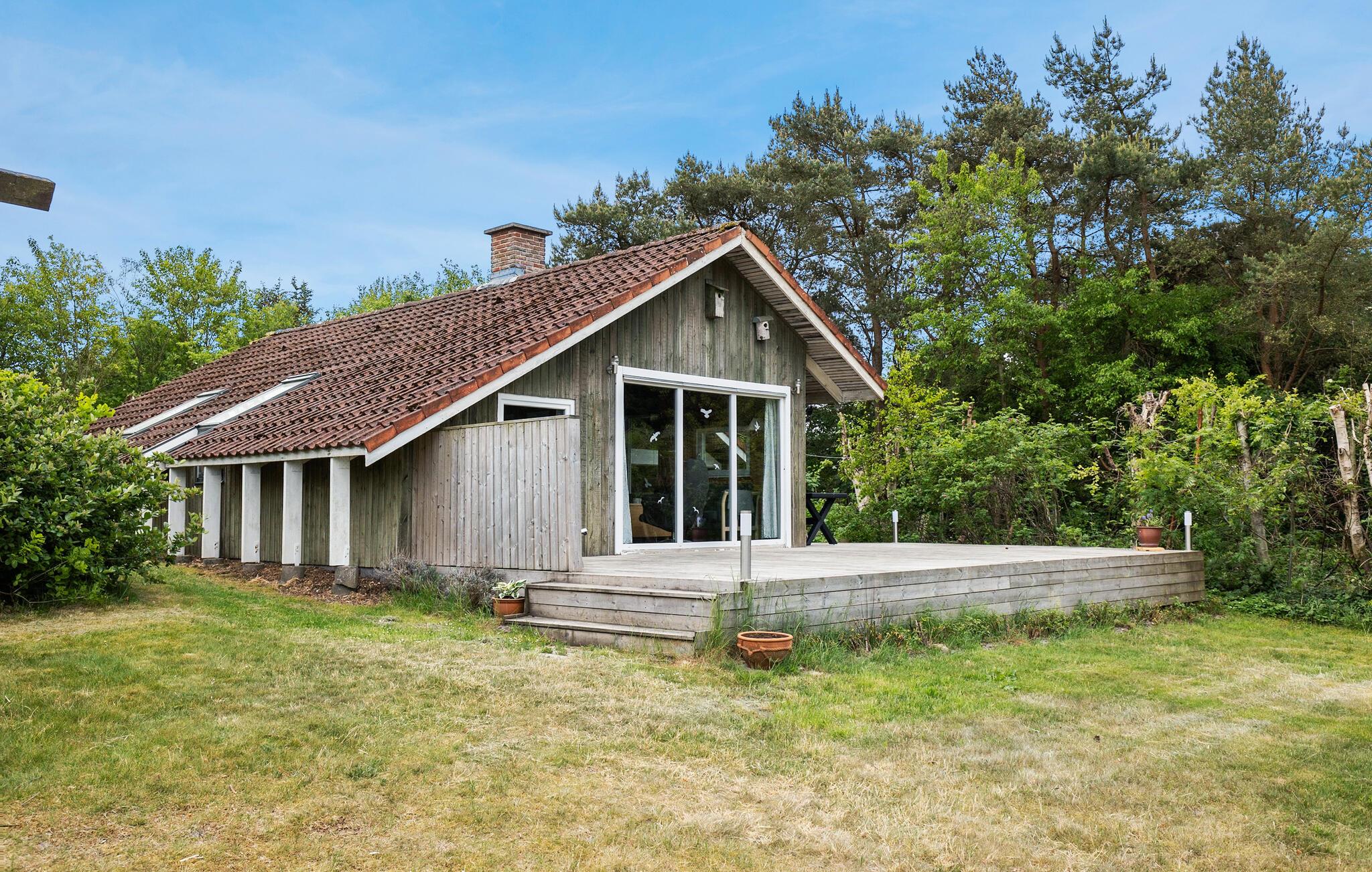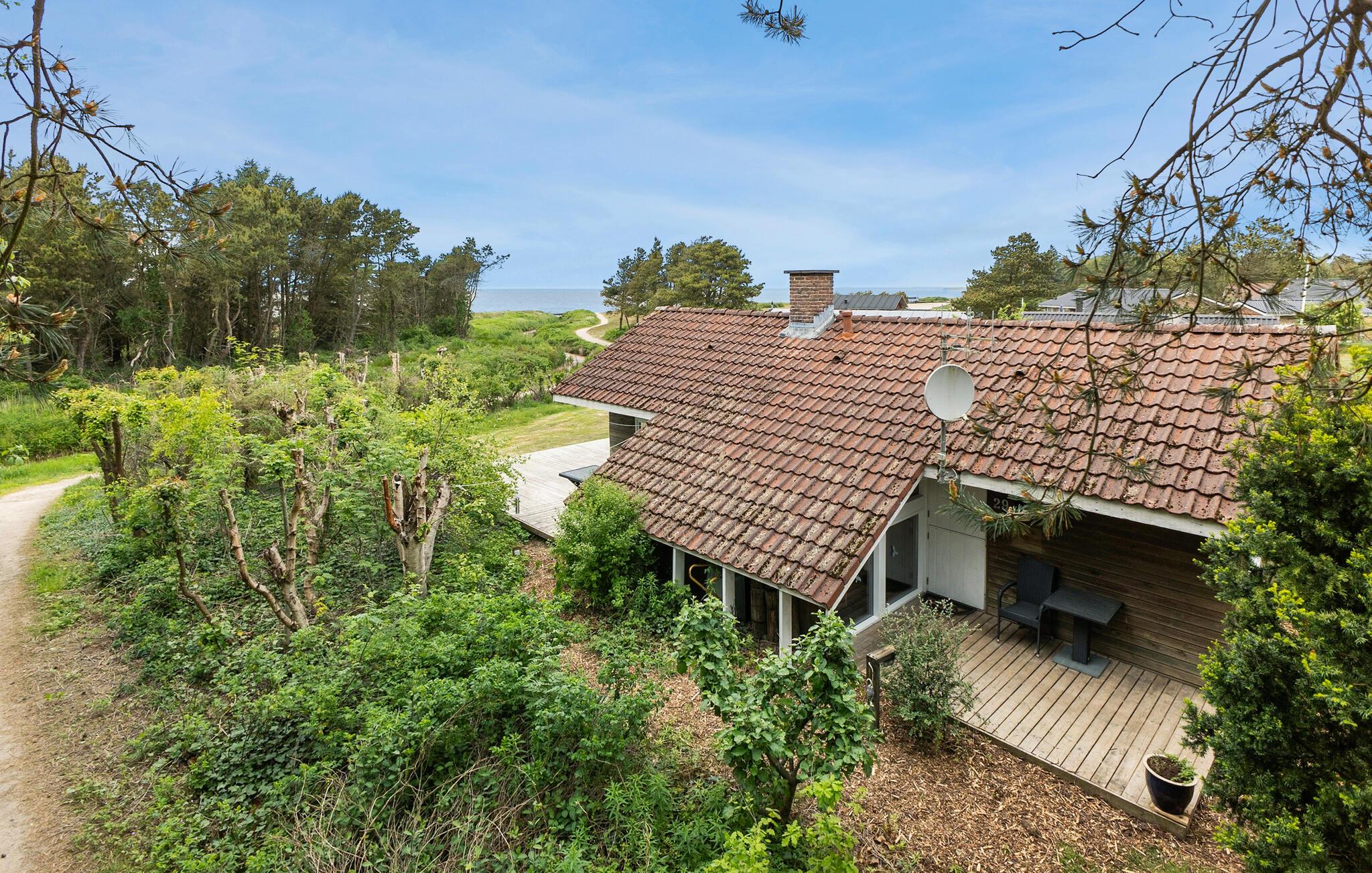 Feriehus ved Skaven Strand med fjordudsigt, træmursten, terrasse og tæt på stranden.