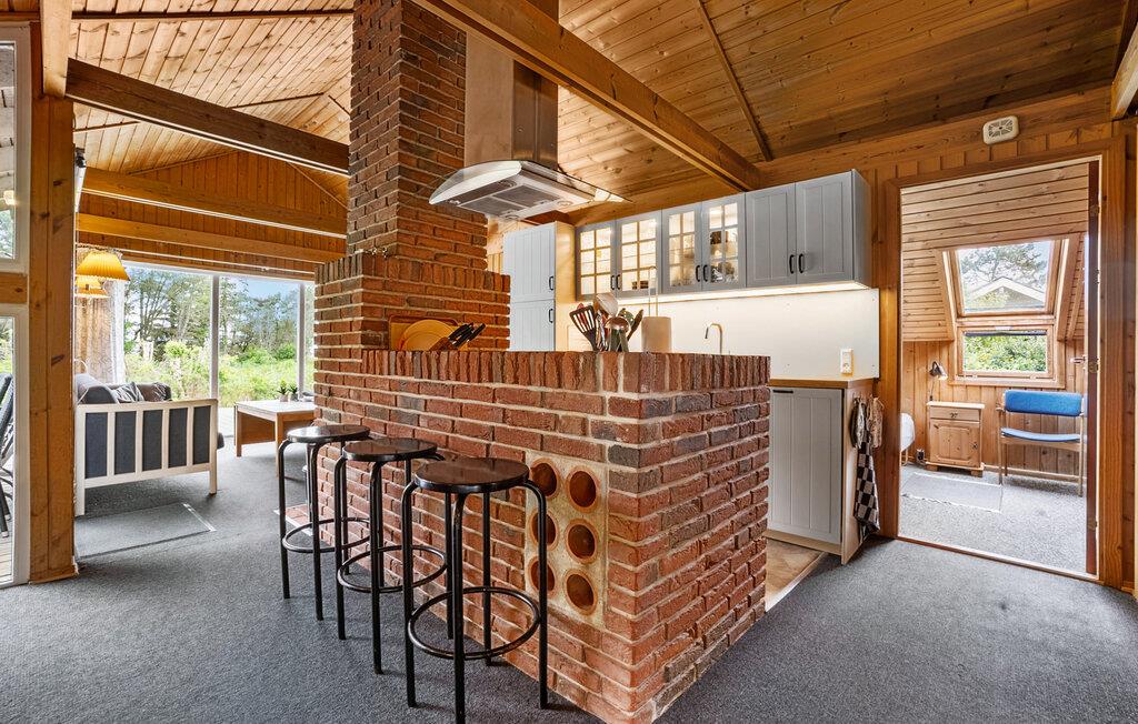 Hvis I planlægger en ferie ikke langt fra stranden, hvor der også er plads til spændende aktiviteter, er dette hus det rette valg. Det byder på neo-rustik charme og en vellykket kombination af træ og mursten – en skøn ramme om jeres pause fra hverdagen. Allerede fra morgenstunden kan I nyde udsigten til det fri og se frem til hyggelige aftener i sofagruppen, mens ilden knitrer i brændeovnen og blikket falder på det idylliske landskab.