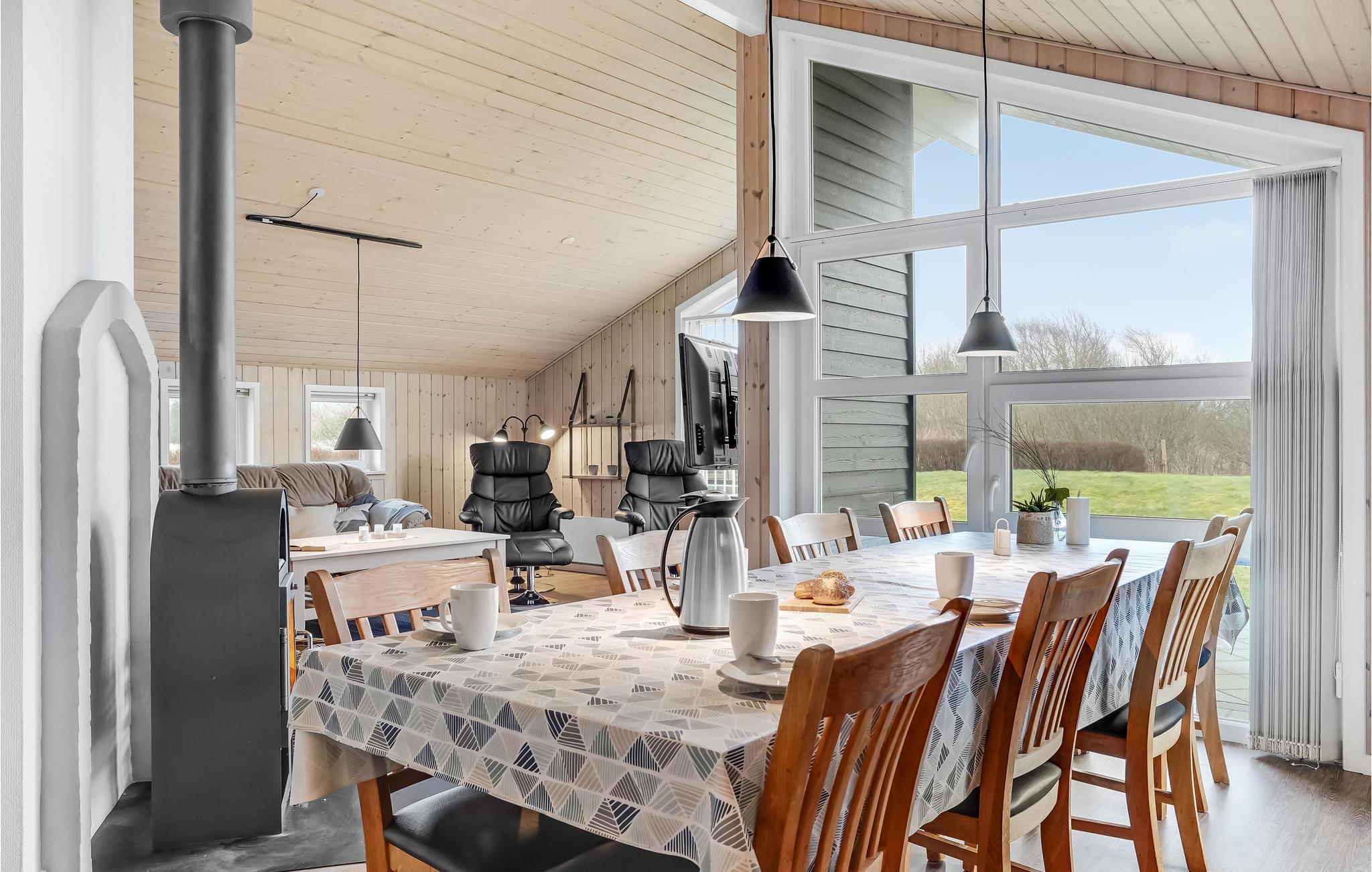 Der er lagt op til nogle fredfyldte dage i dette attraktive feriehus, der ligger nogle få skridt fra stranden. De komfortable værelser skaber en behagelig ramme for at tilbringe tid sammen. Sæt jer til rette i saunaen og spabadet, og efter en aktiv dag kan I nyde en middag med en smuk udsigt over naturen, hvilket skaber en hyggelig atmosfære med ild i brændeovnen.