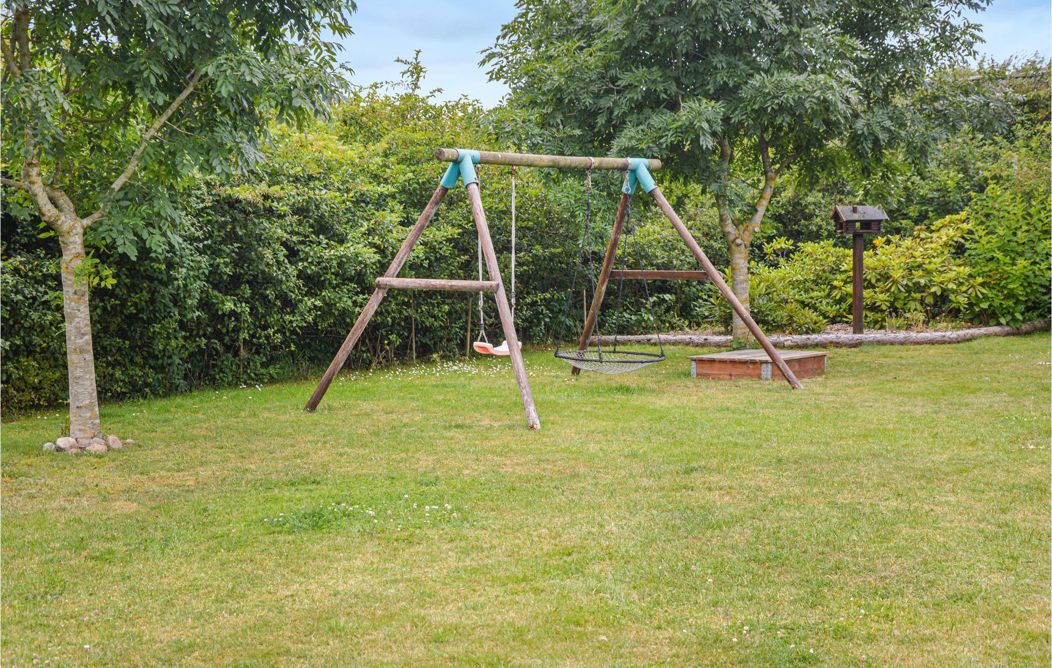 Udenfor finder I en dejlig træterrasse med havemøbler, parasol og grill til hyggelige aftener med hele familien. Familiens yngste medlemmer vil elske haven, hvor de kan boltre sig uforstyrret. Der er en gynge, sandkasse og masser af plads til at lege.