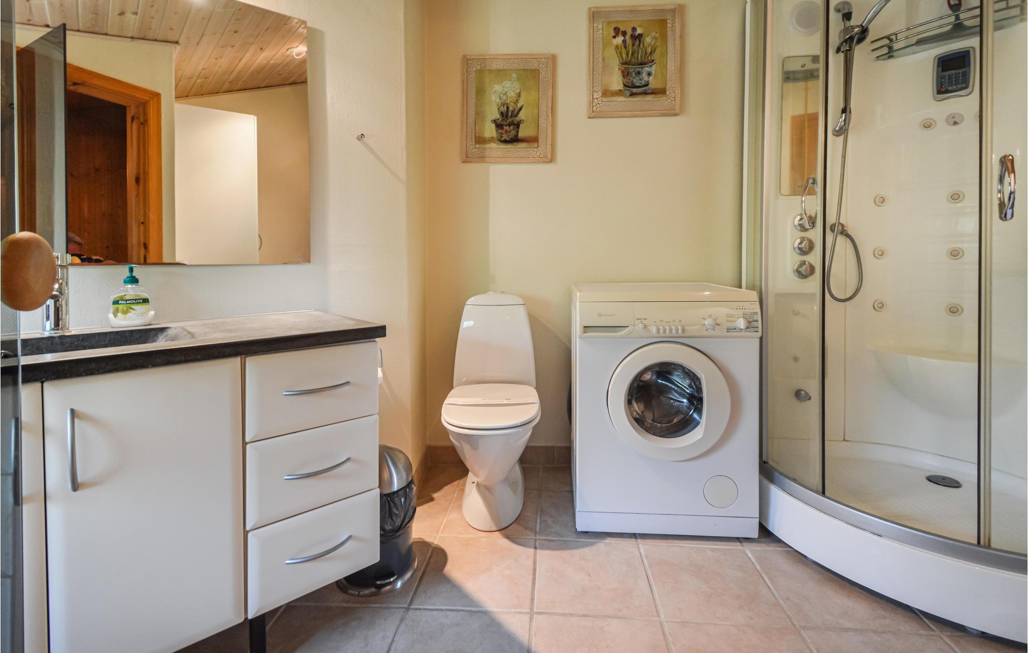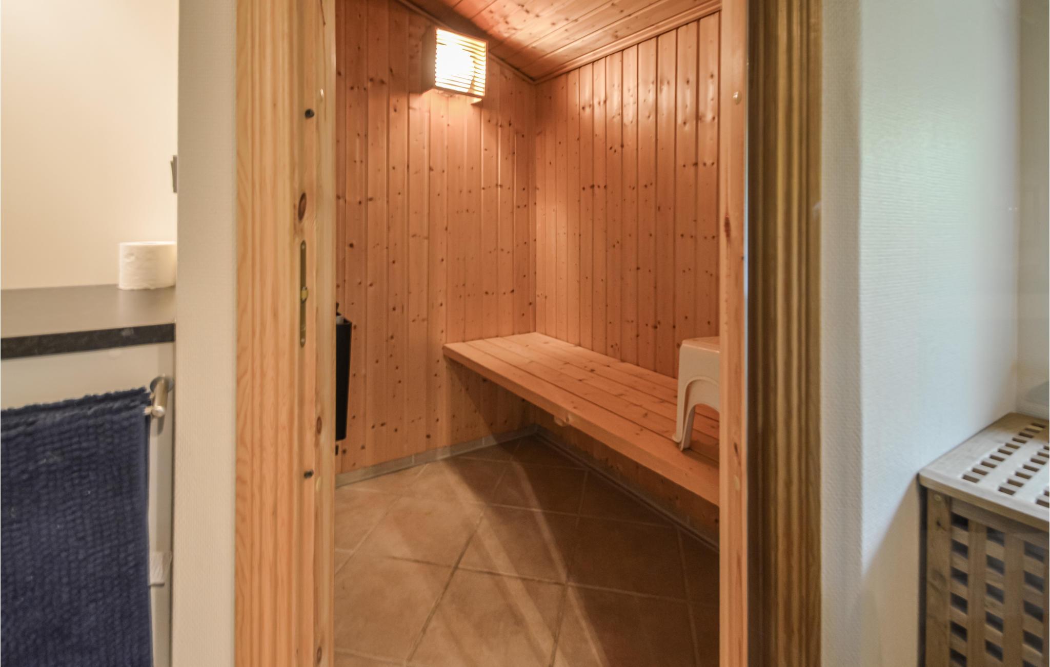 Sæt jer til rette i de bløde sofaer i den store, lyse stue, og spil brætspil eller se tv. Fra spisebordet har I udsigt over de smukke, grønne omgivelser, og de store vinduer giver et behageligt lys. Det åbne køkken giver gode muligheder for at lave mad sammen. Slap af efter en lang dag med udflugter i den varme og afslappende sauna.