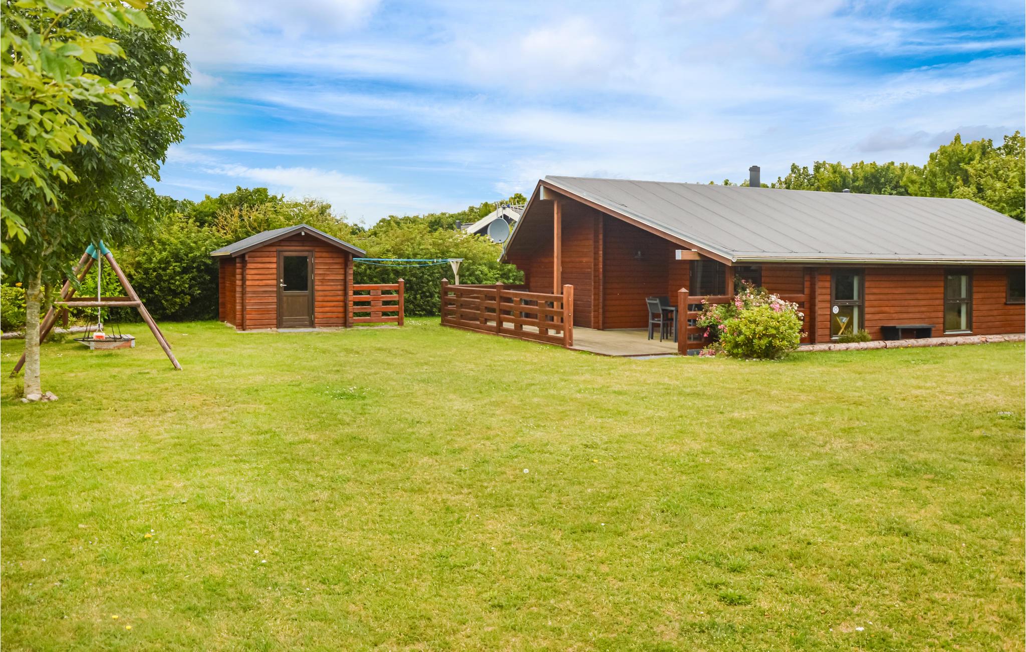 Charmerende bjælkehytte nær Ringkøbing Fjord med sauna, terrasse og børnevenlig have.