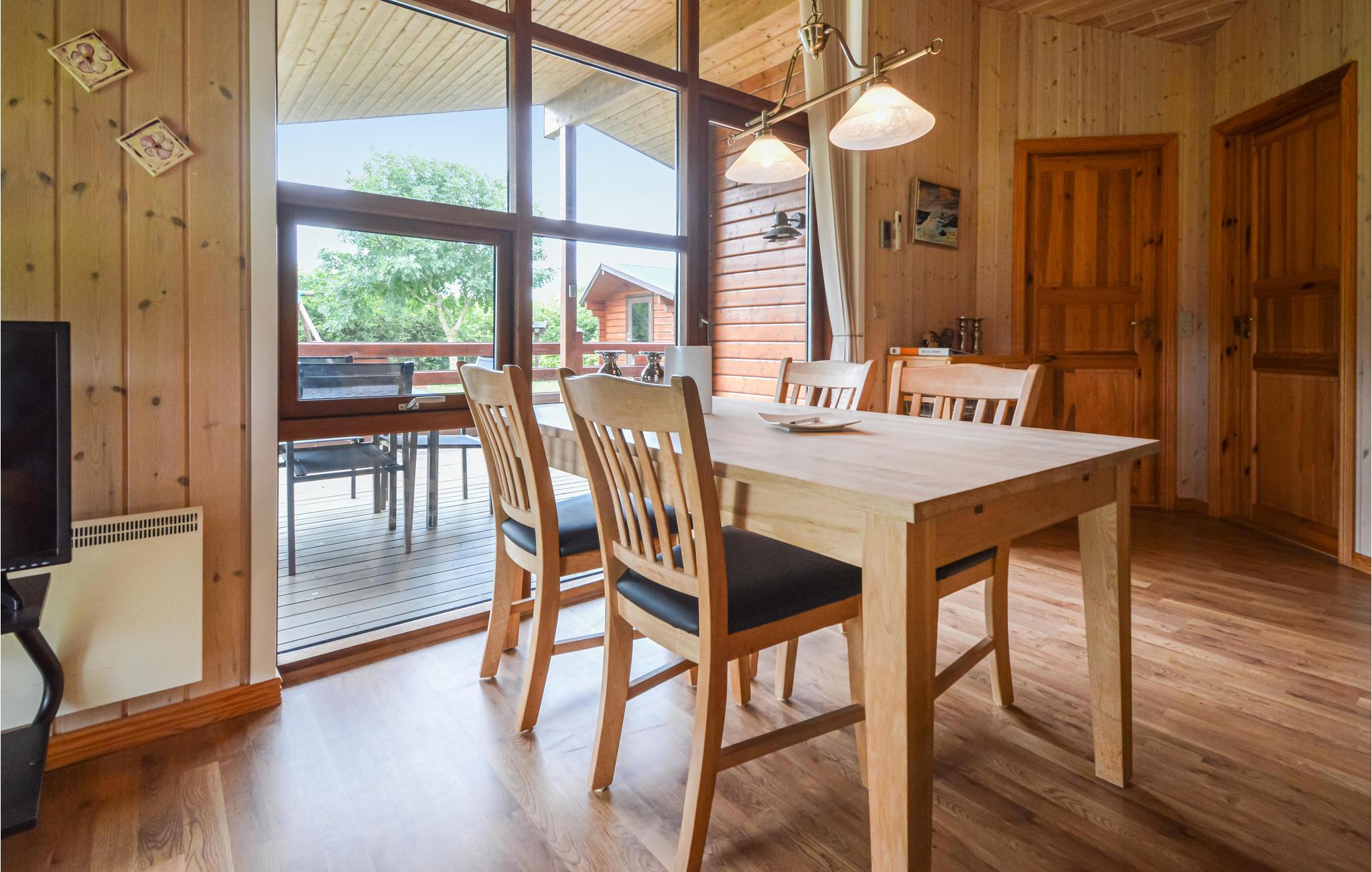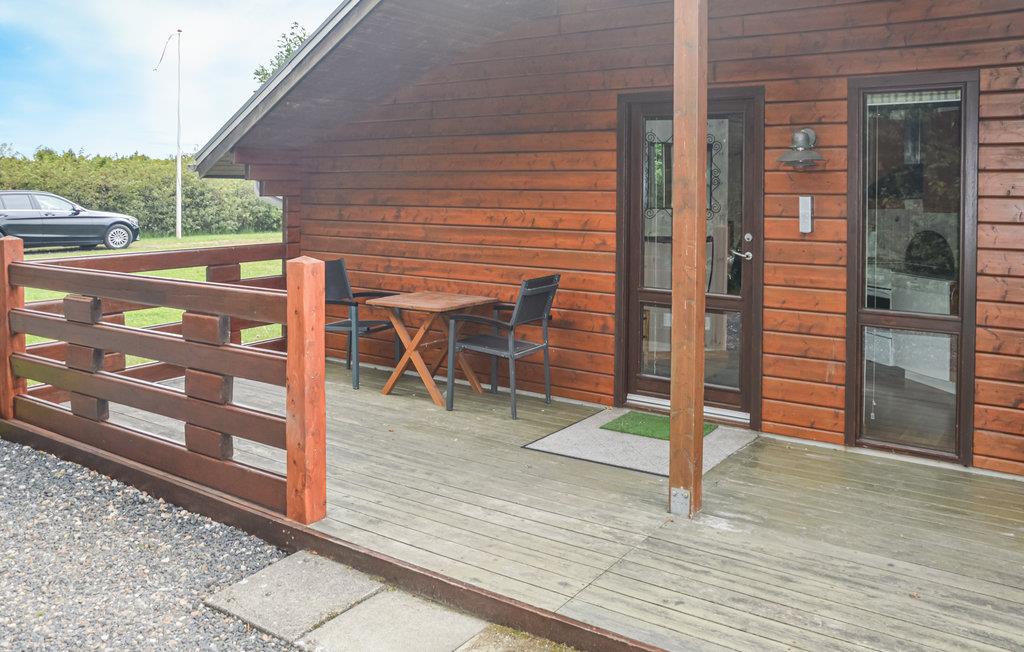 Glæd jer til en afslappende ferie i denne charmerende bjælkehytte tæt ved Ringkøbing Fjord.
